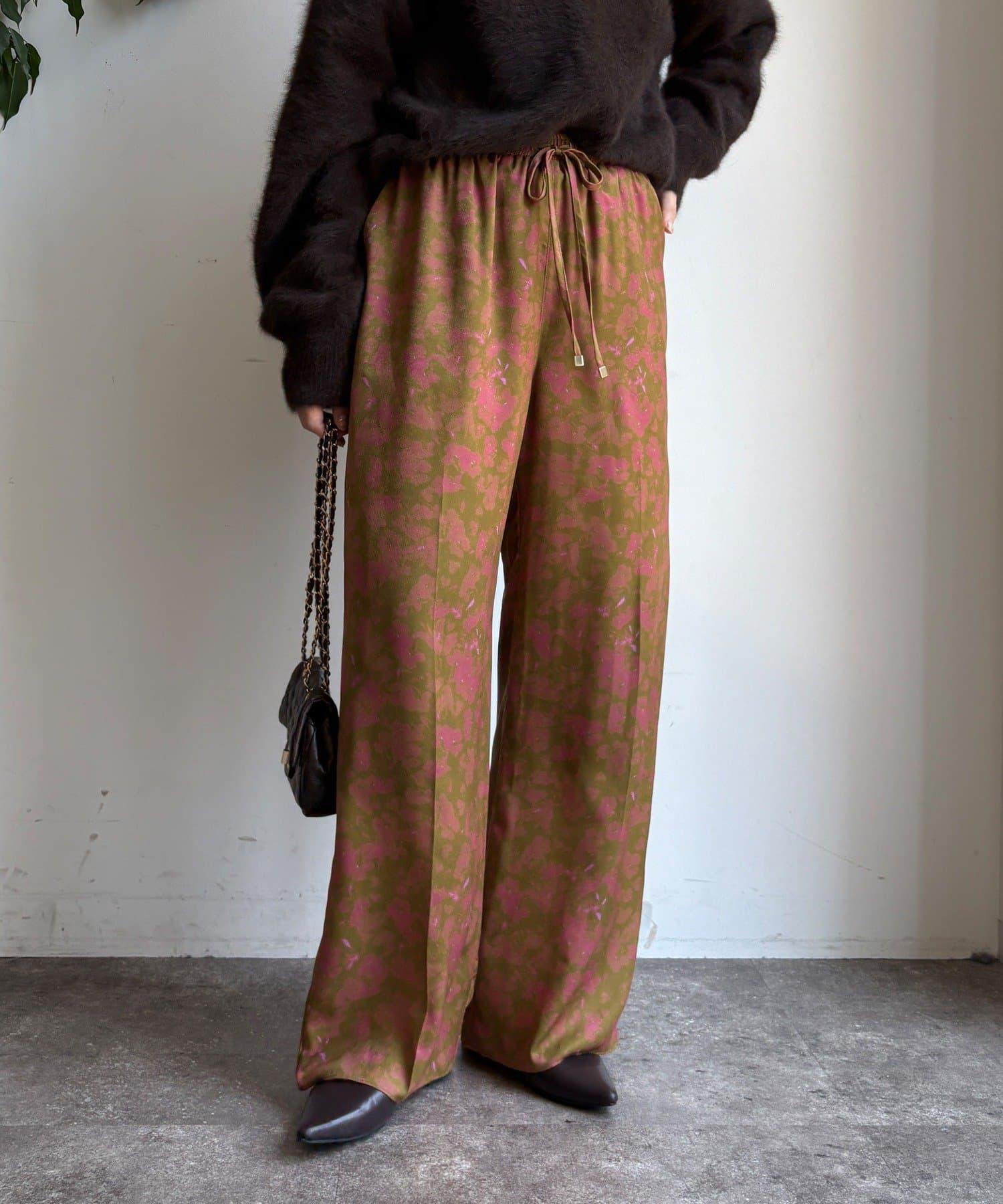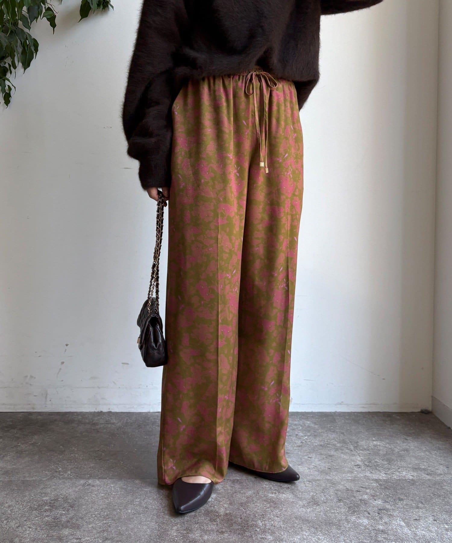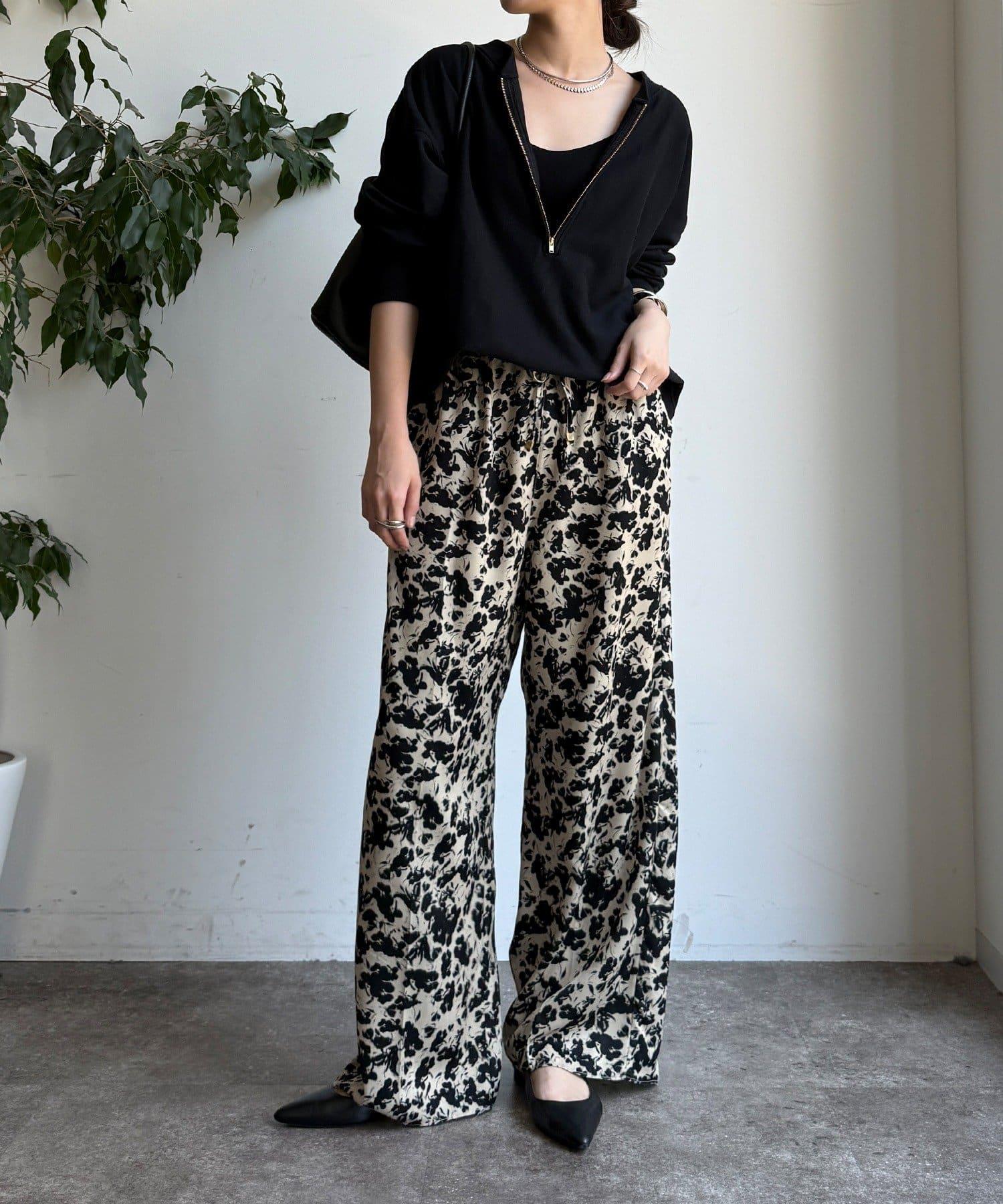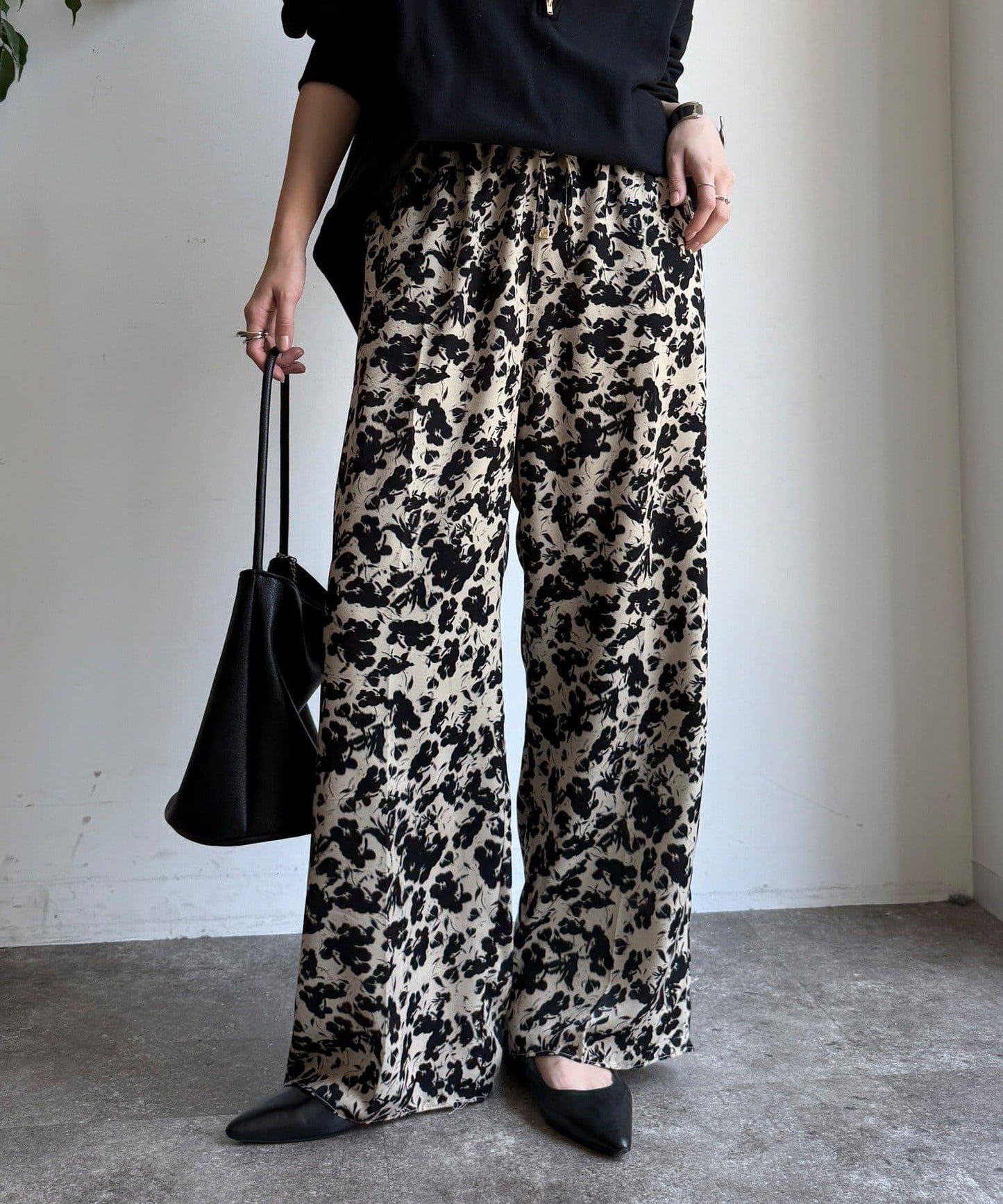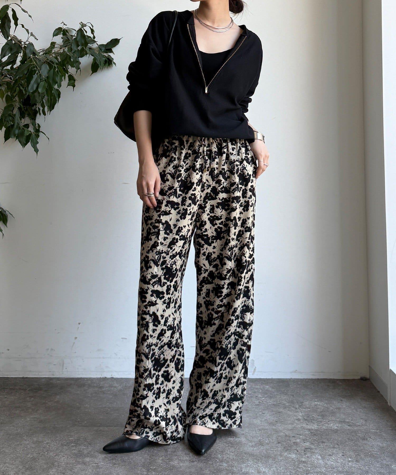 寬鬆的長褲,優雅的花卉印花引人注目。
