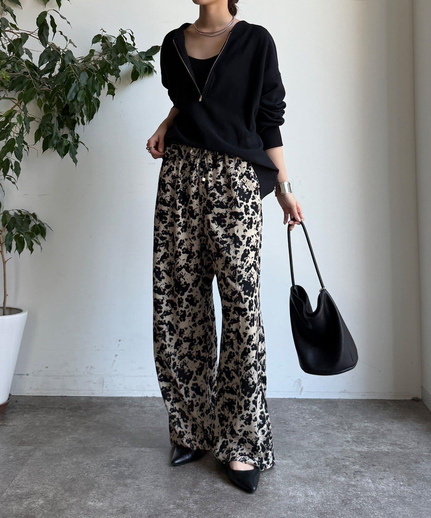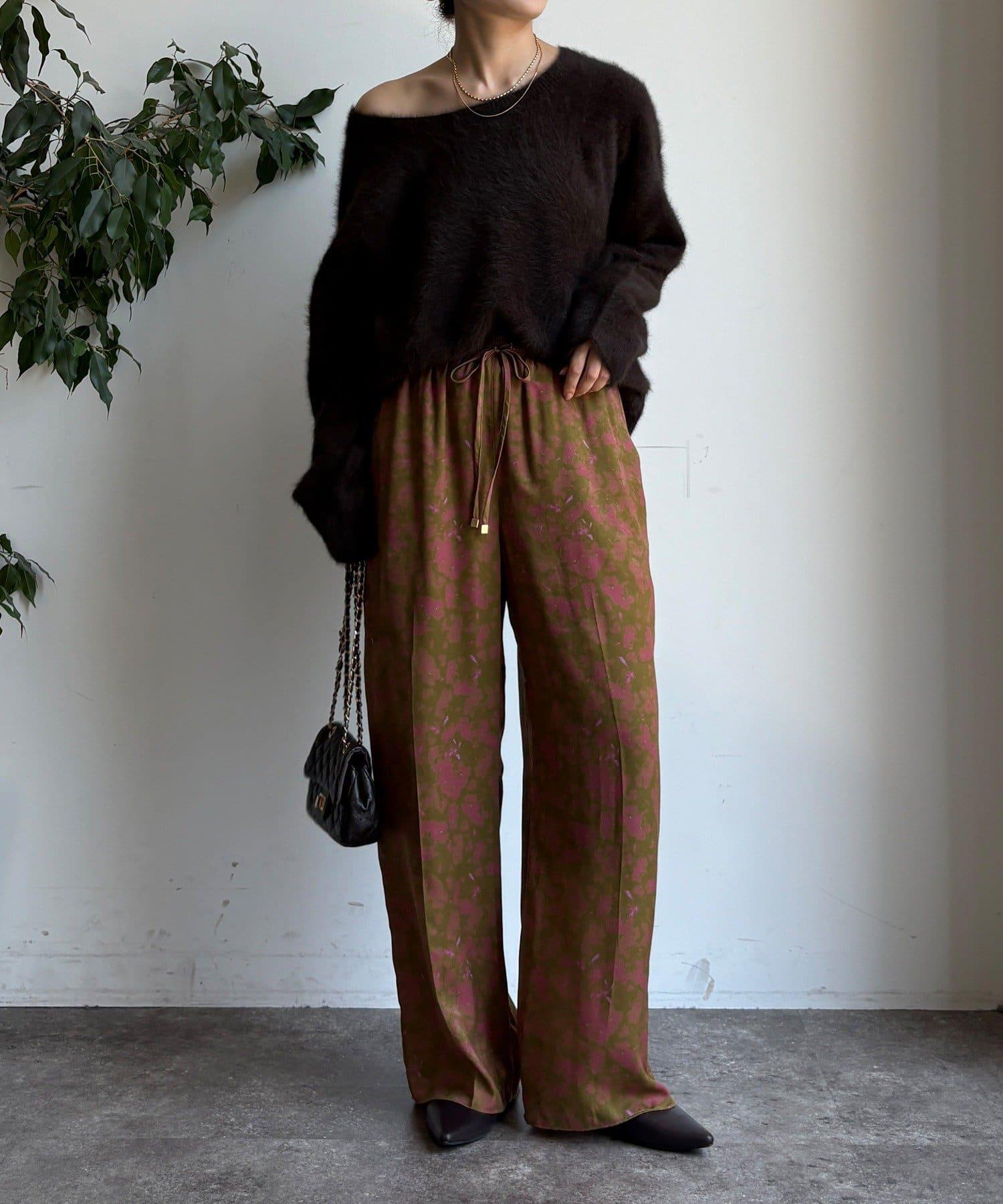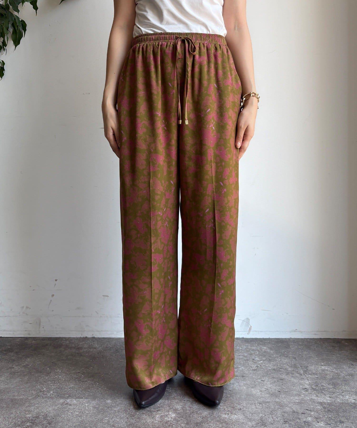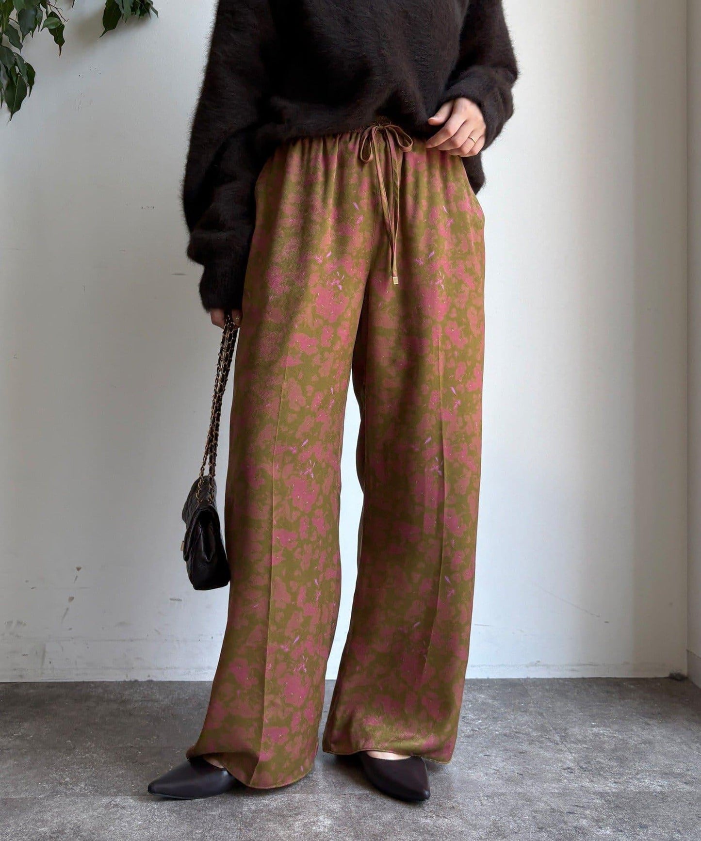 寬鬆的長褲,優雅的花卉印花引人注目。