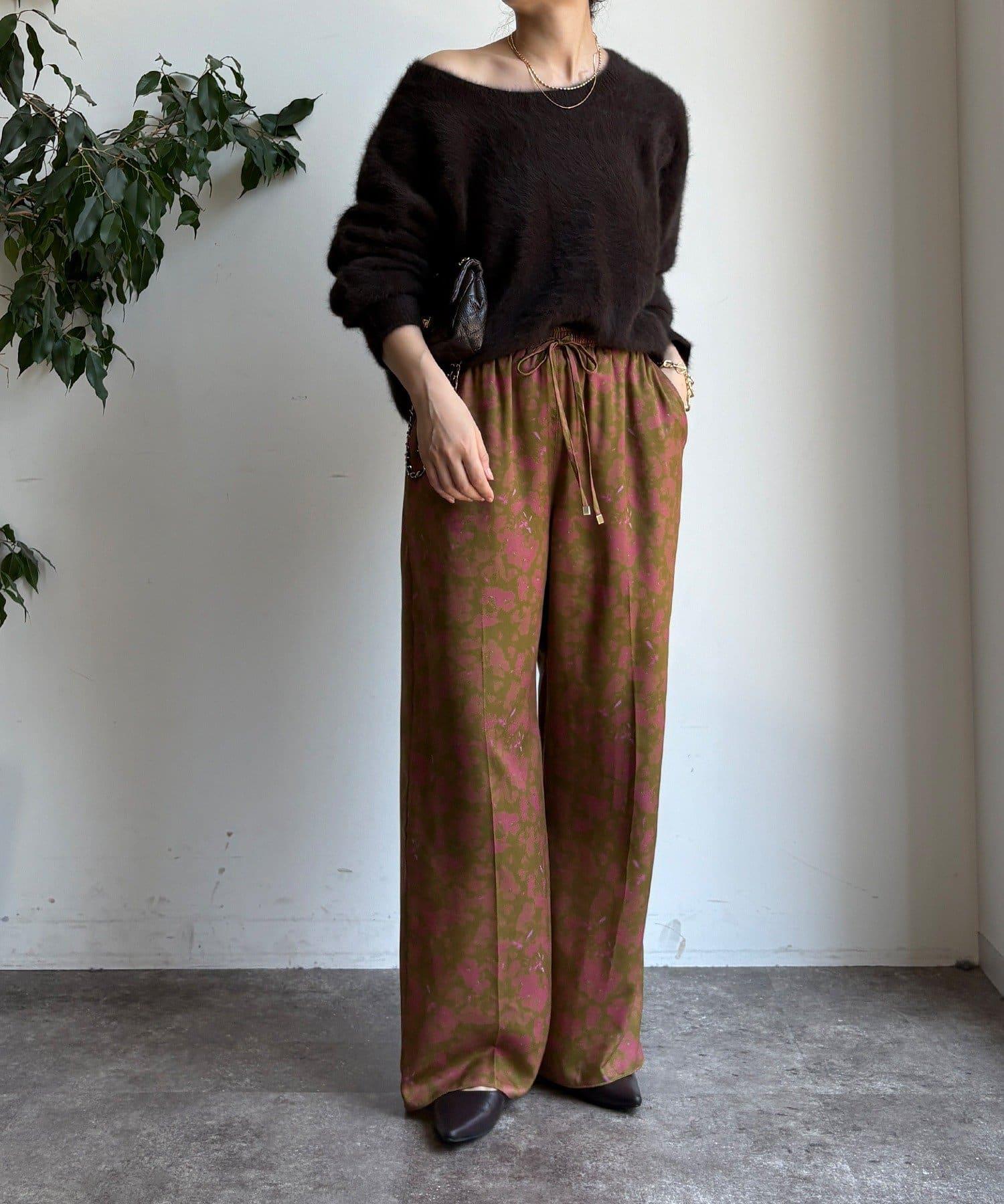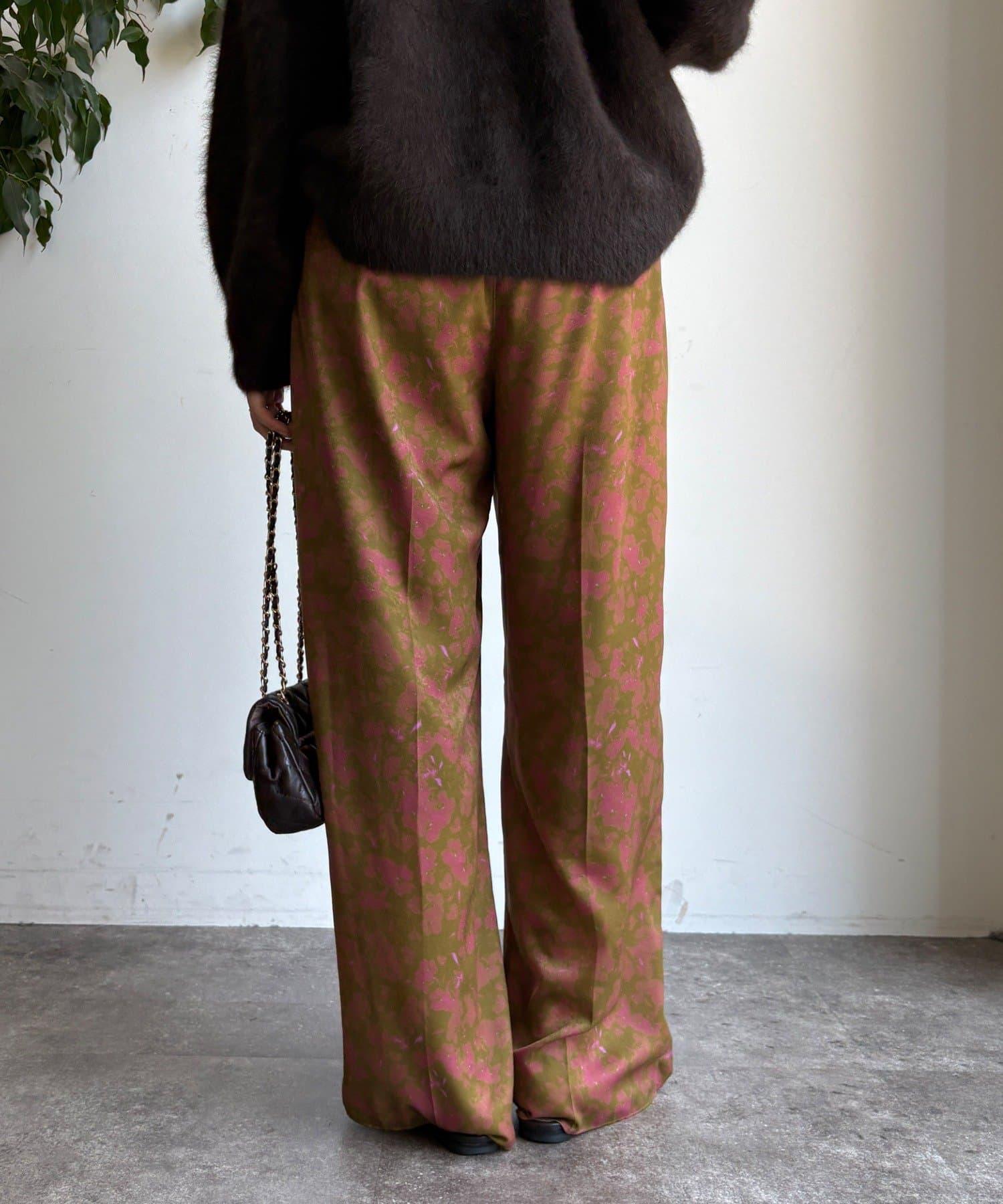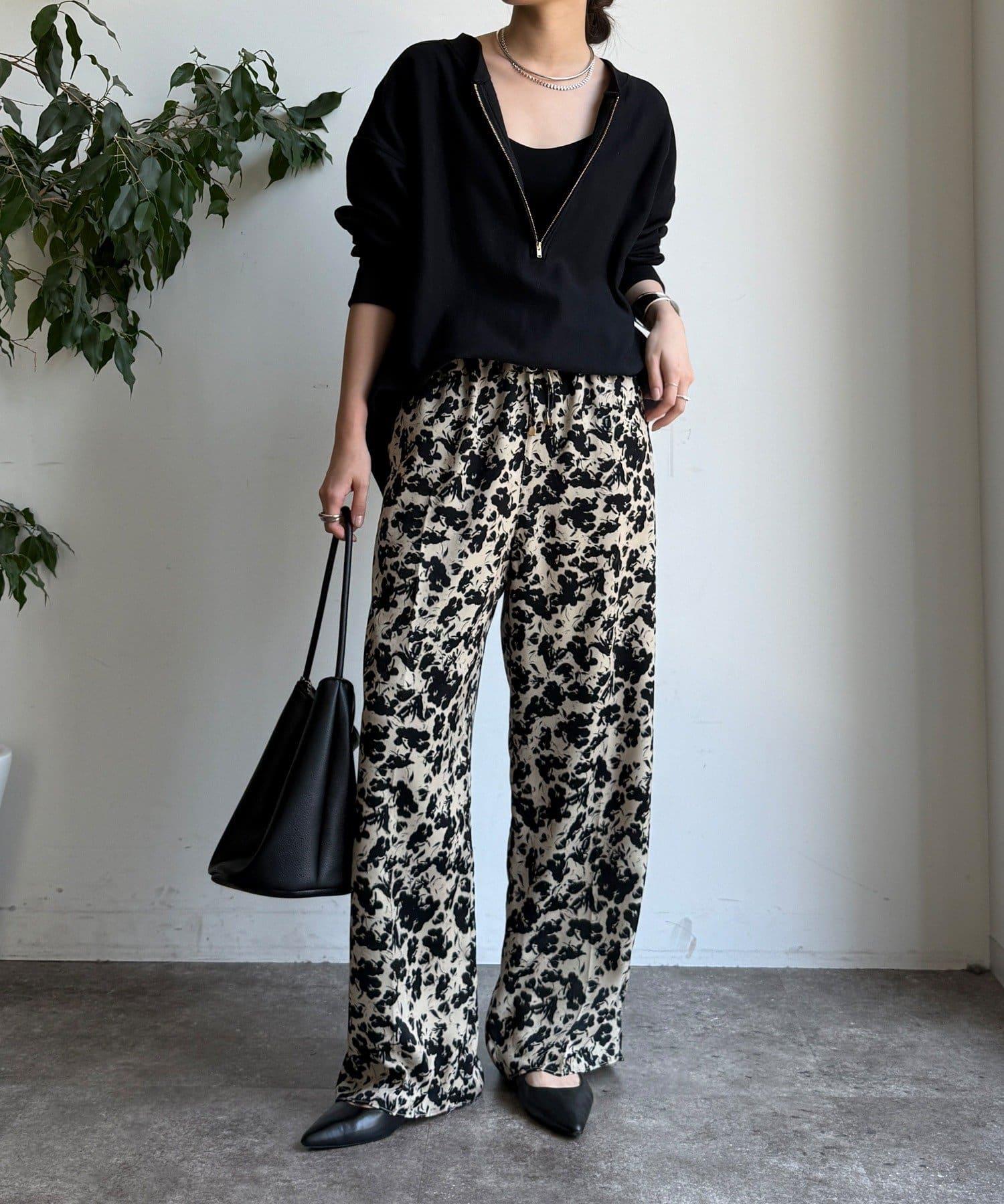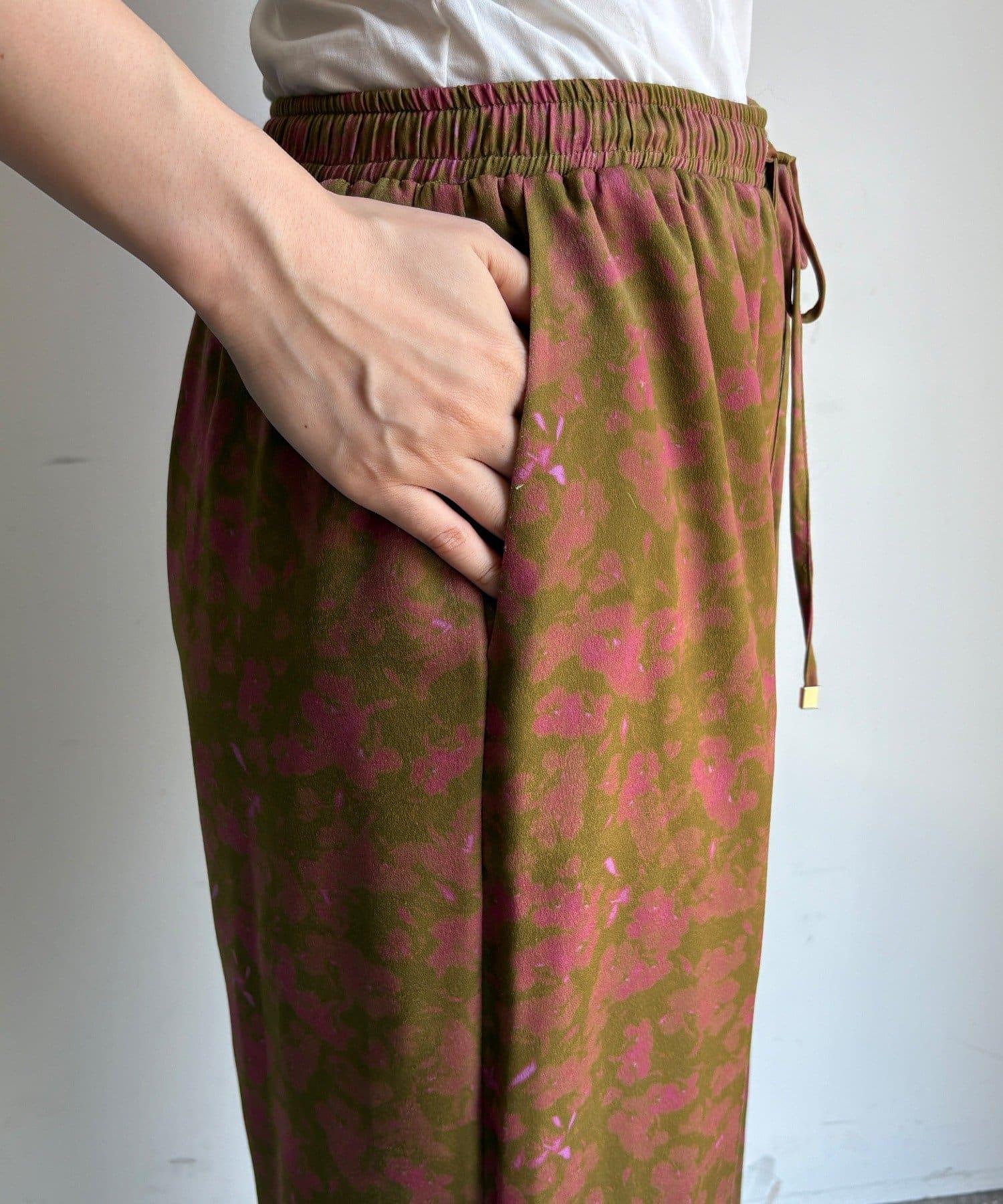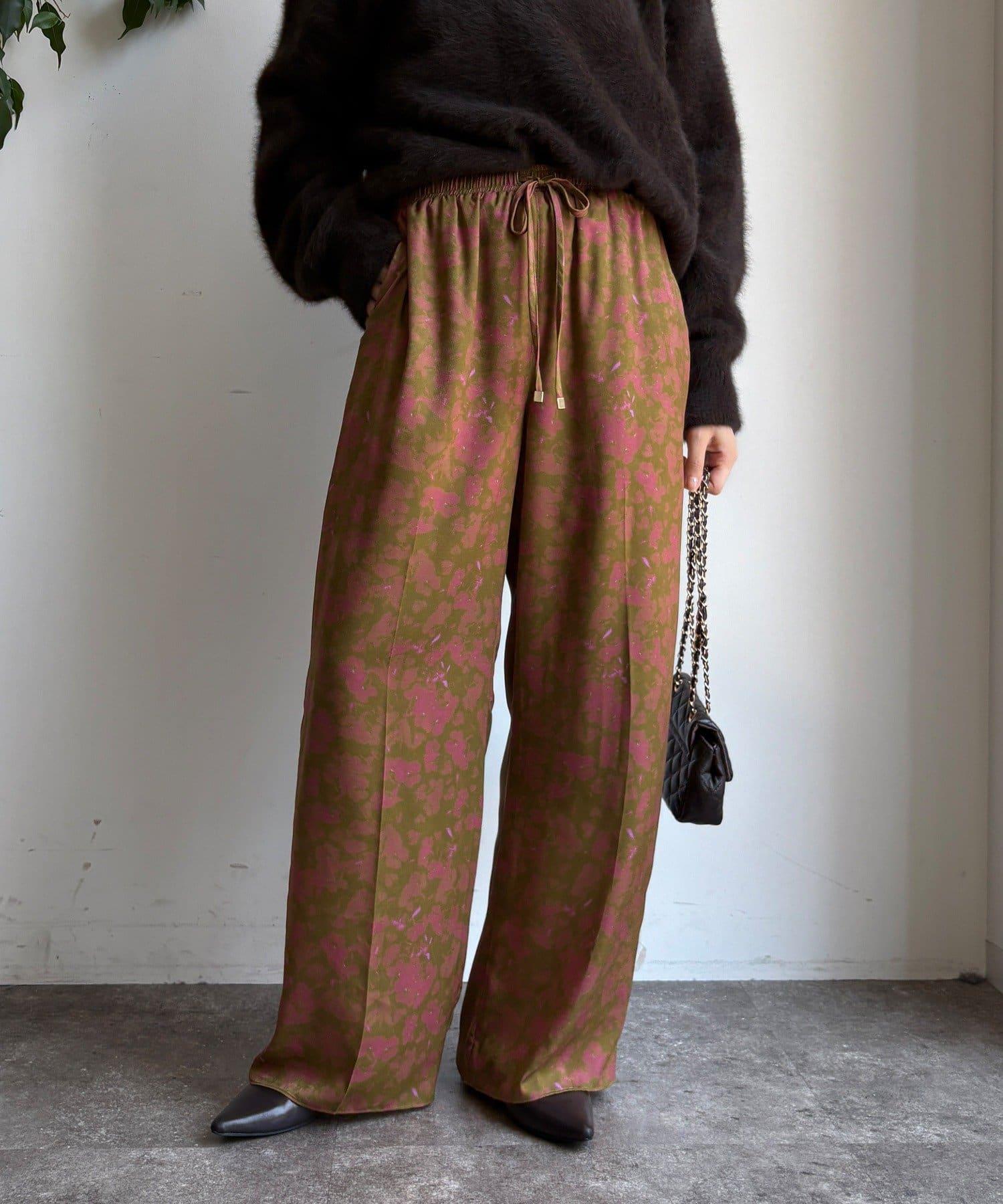 寬鬆的長褲,優雅的花卉印花引人注目。