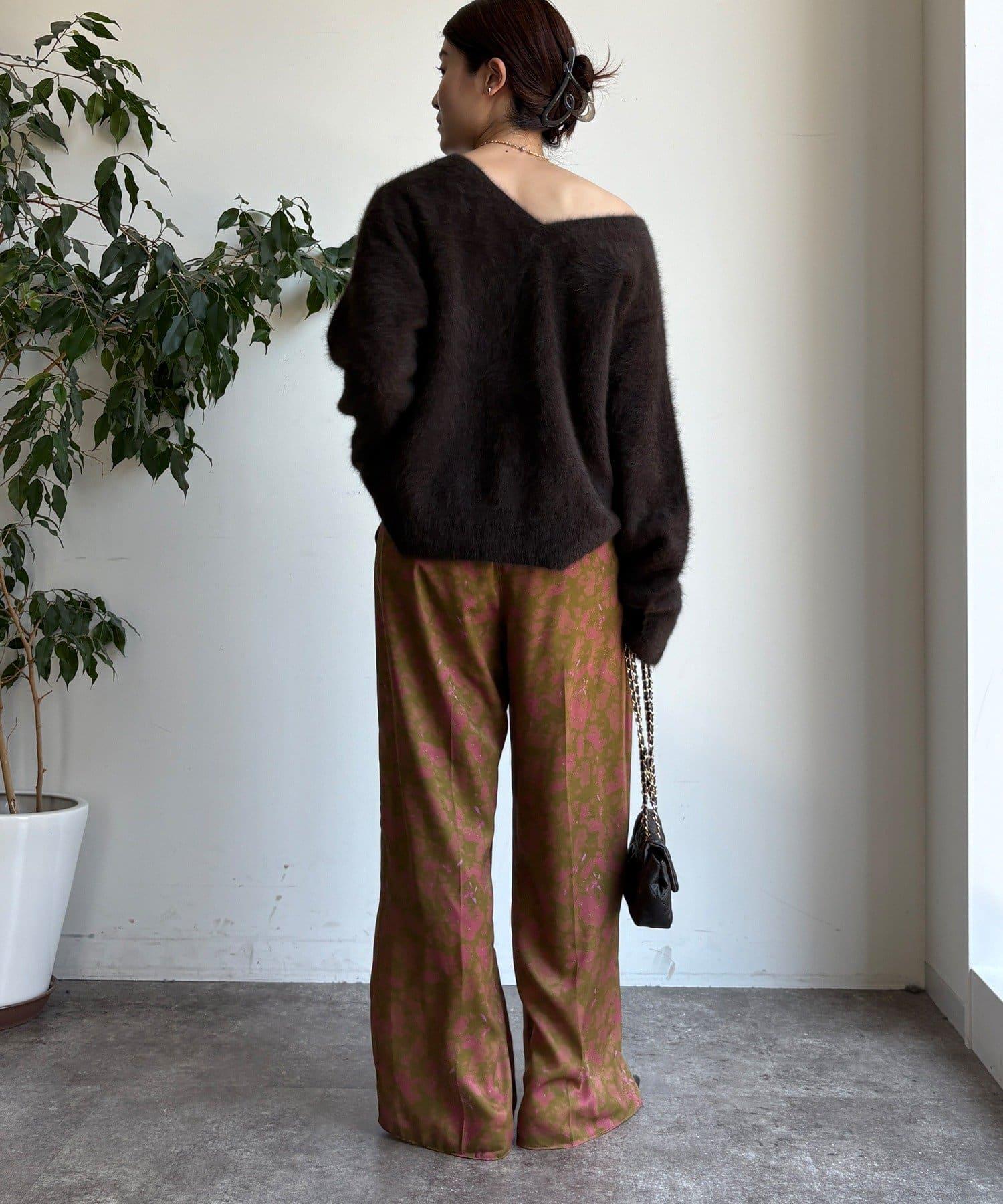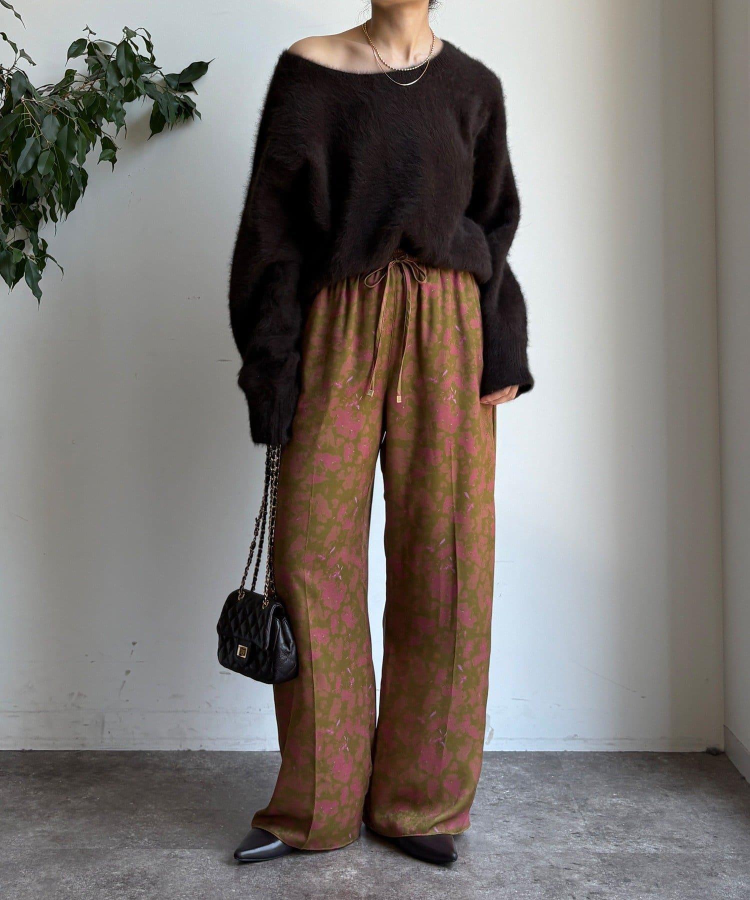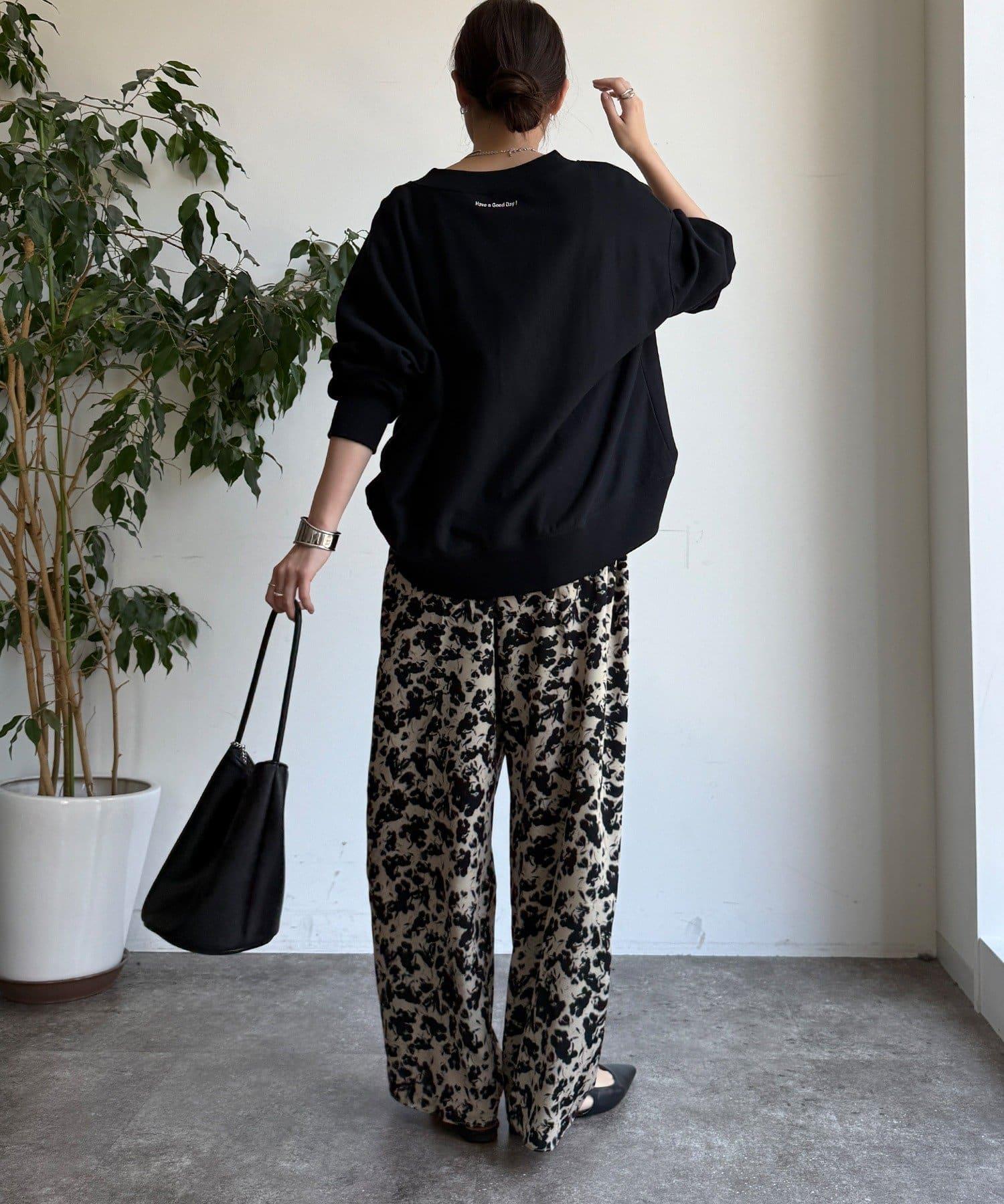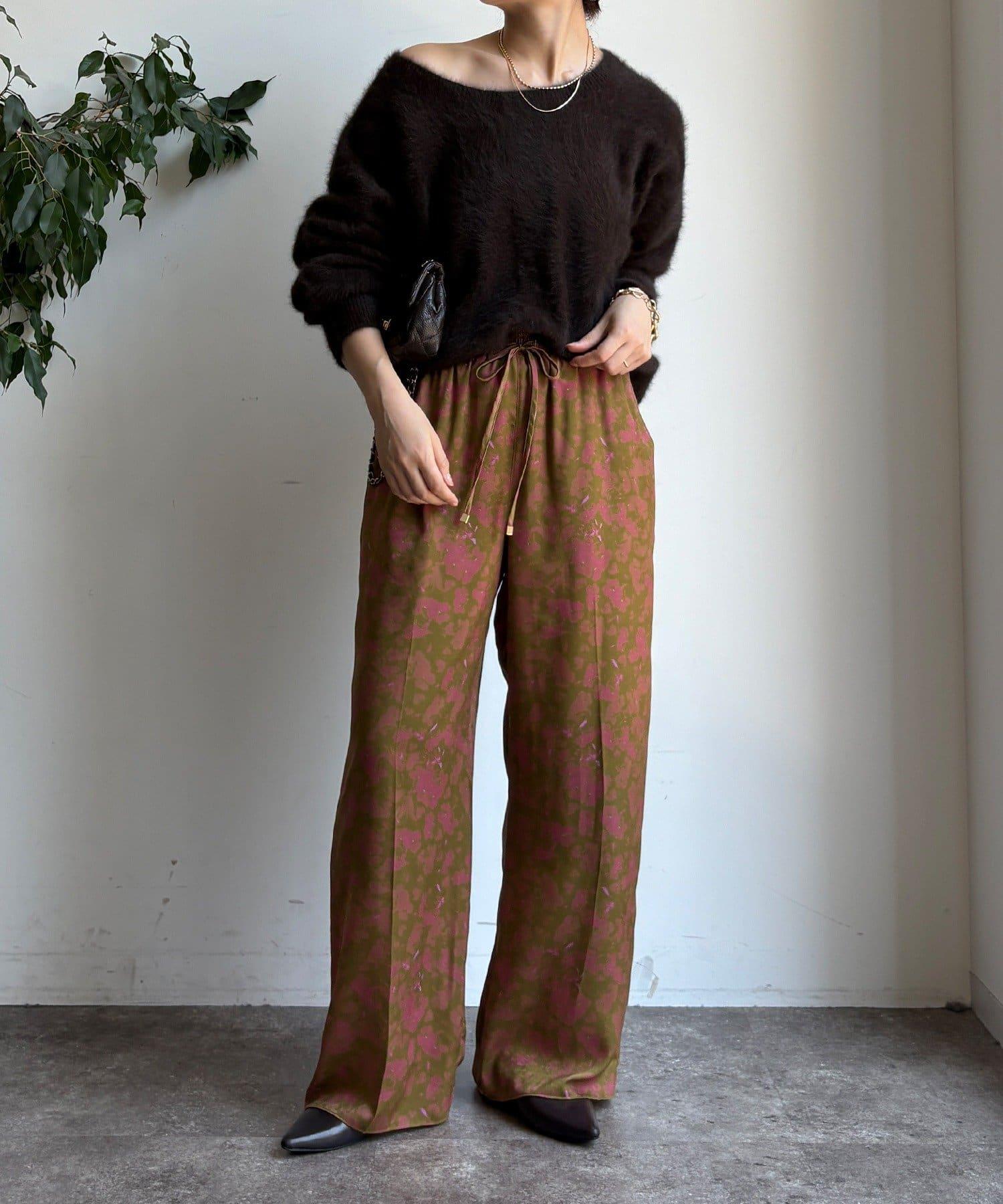 寬鬆的長褲,優雅的花卉印花引人注目。