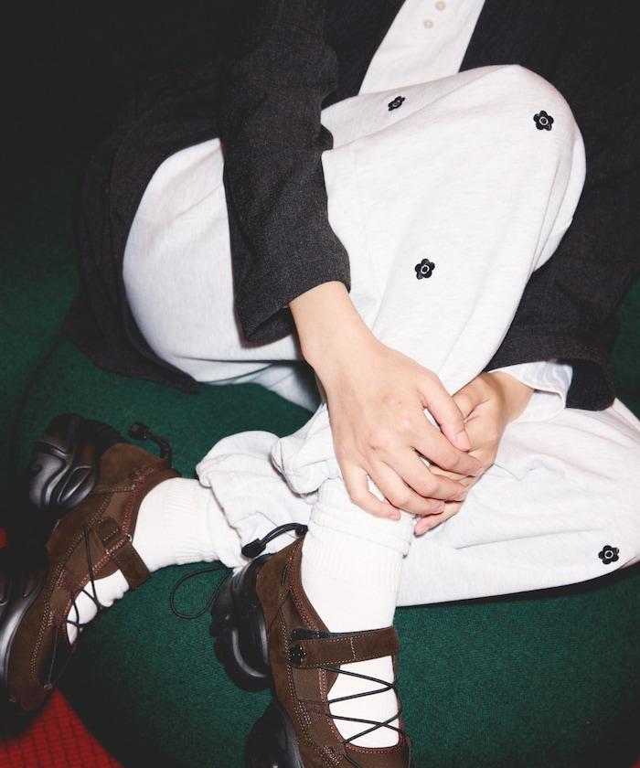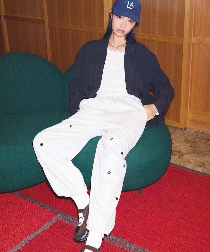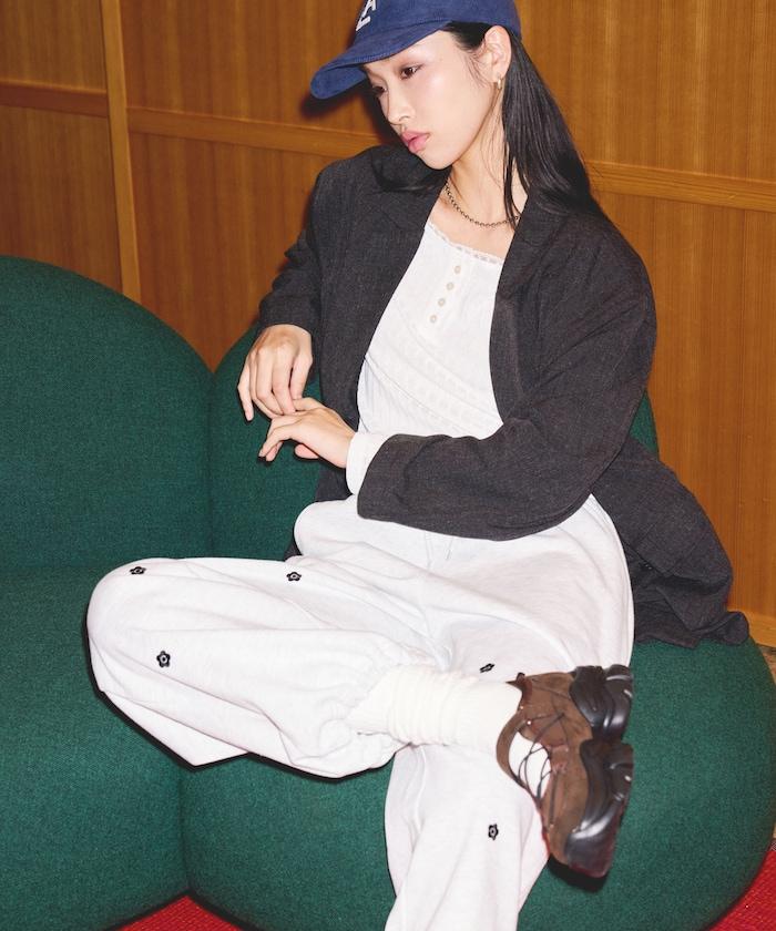 標誌性的雙向運動褲,帶有雛菊刺繡和靈活的輪廓。