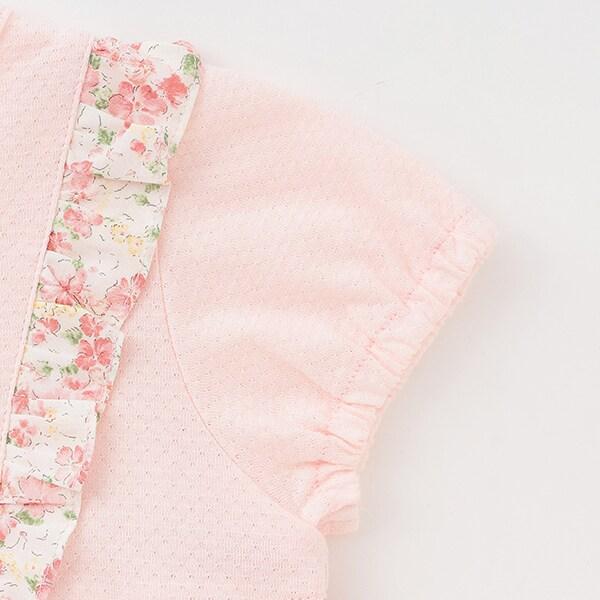 荷葉邊肩部和喇叭裙襬是其可愛之處。