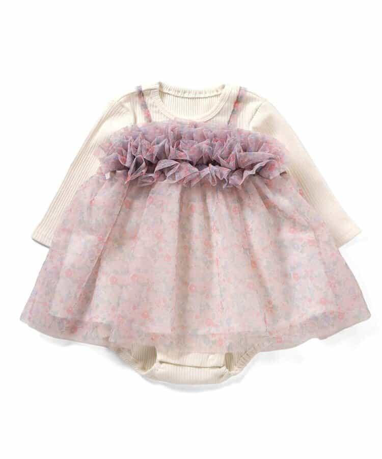 apres les cours coverall 連身裙 "Floral volume tulle coverall "設計溫婉、細緻、自然。嬰兒禮品和嬰兒禮物中的明星產品
