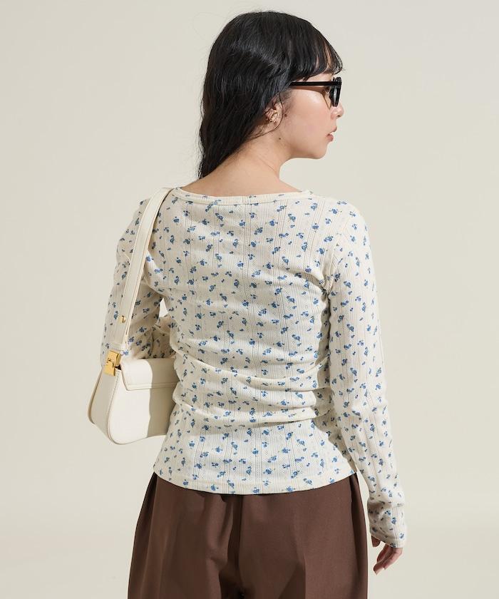 設計讓人聯想到復古保暖內衣,無針軋花面料上疊加了花卉圖案。