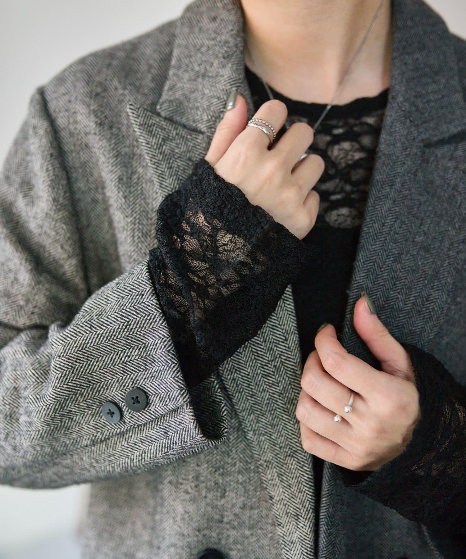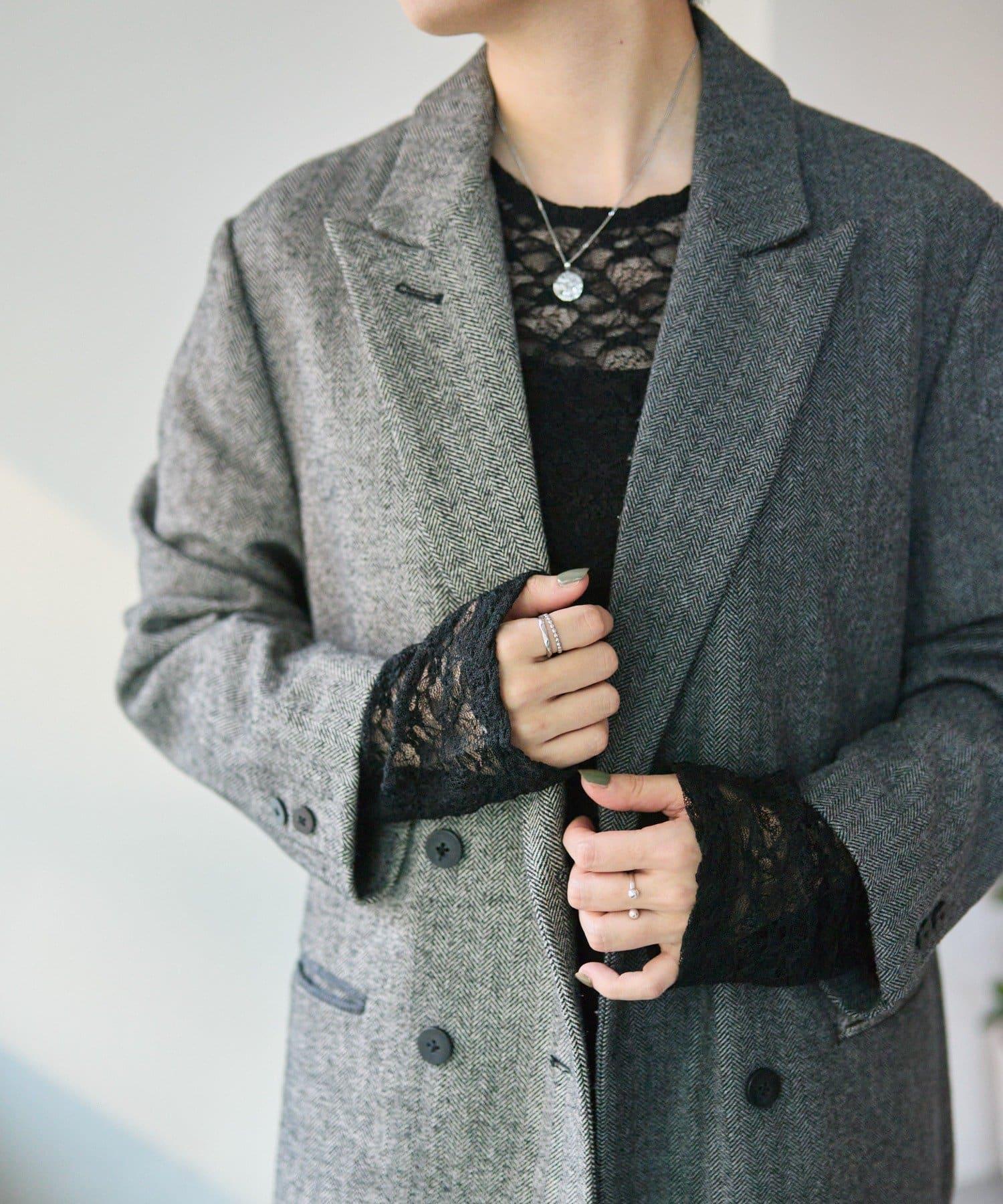 將它穿在外套或套頭衫裡,可以從袖口處看到蕾絲面料。