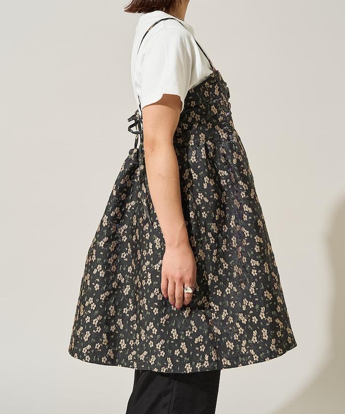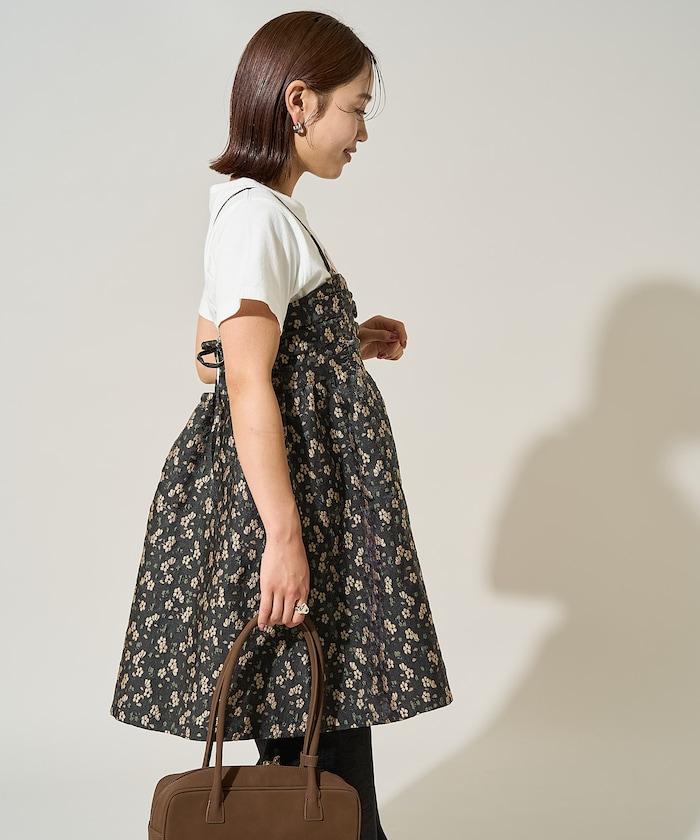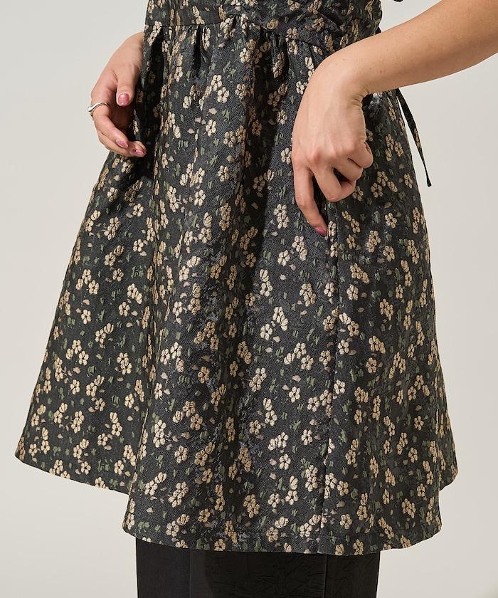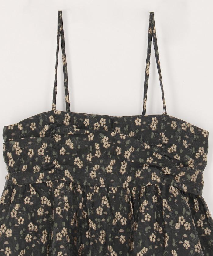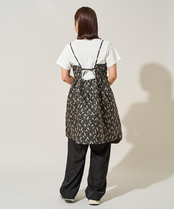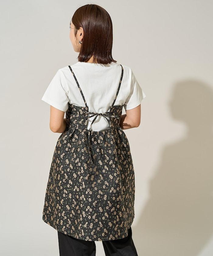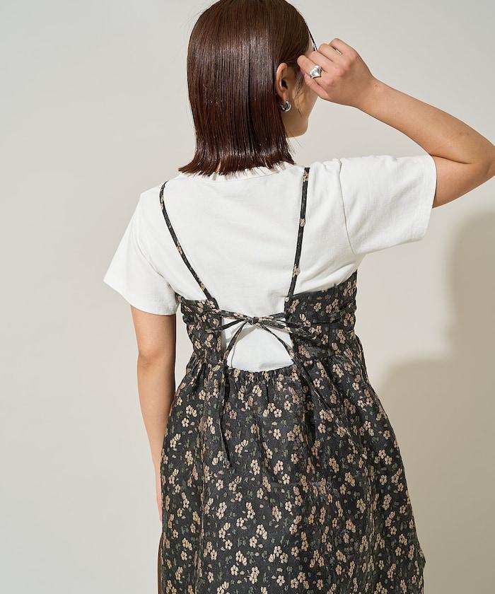 花卉提花後系蝴蝶結吊帶迷你連衣裙<可搭配套裝>