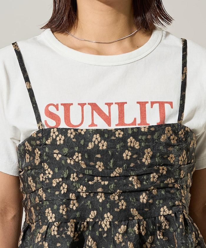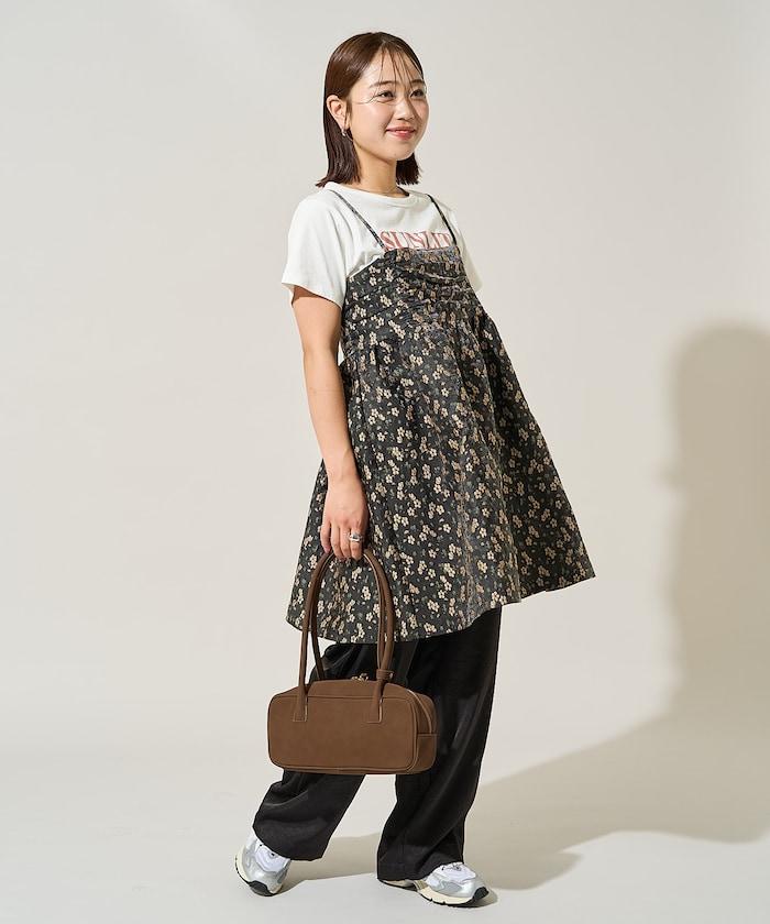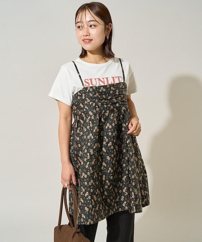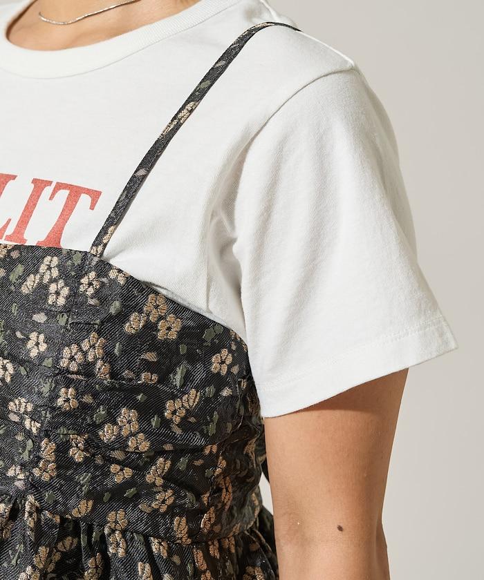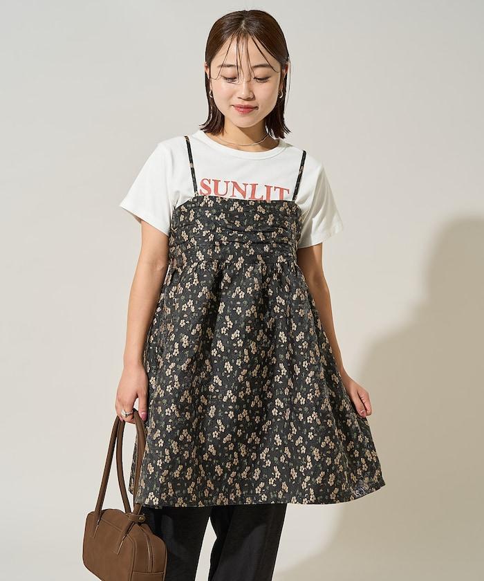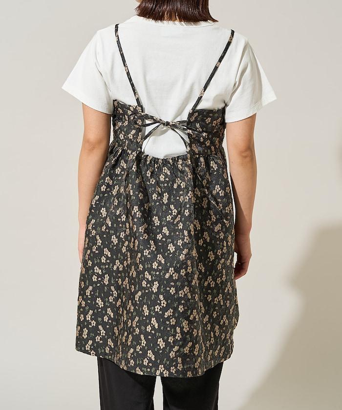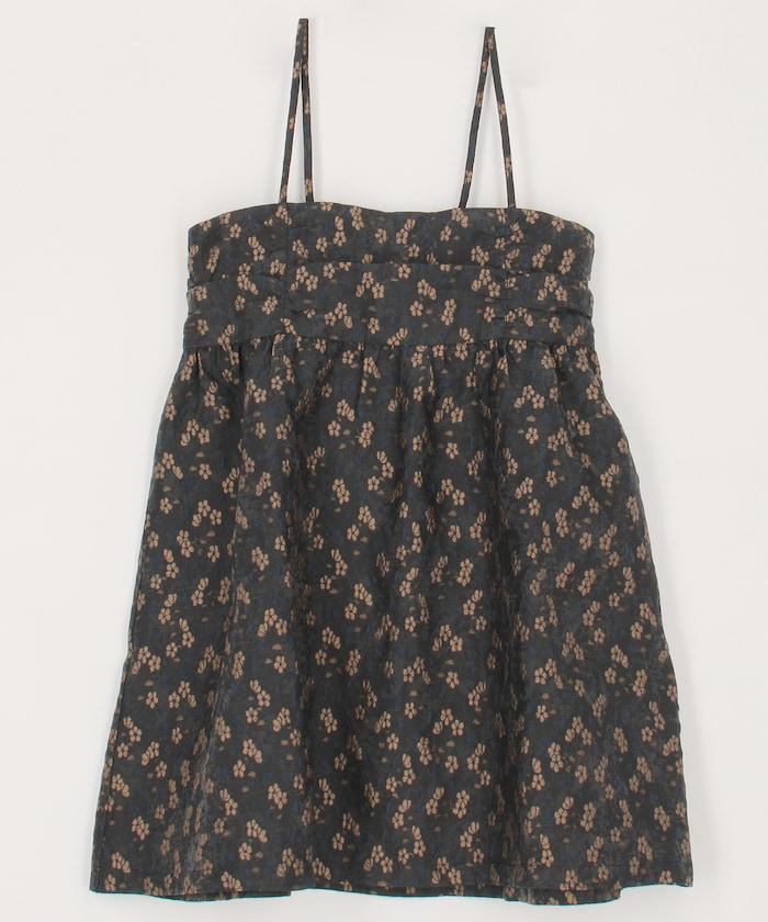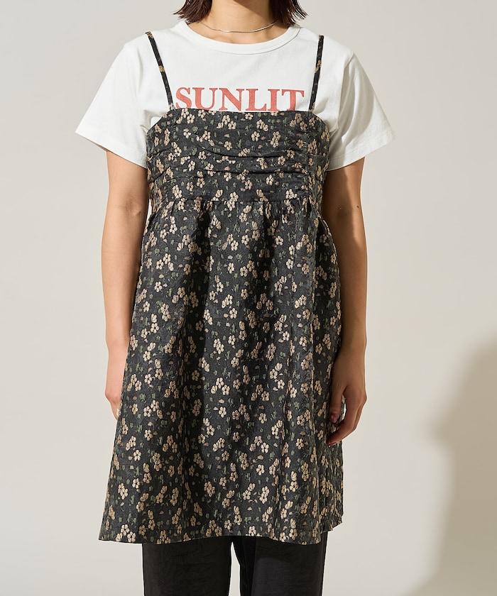 花卉提花後系蝴蝶結吊帶迷你連衣裙<可搭配套裝>