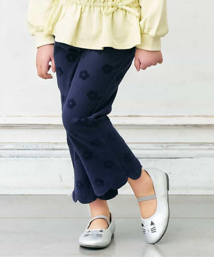 apres les cours 長褲 "Flower Jacquard Scallop Trousers "是一款時尚單品,在自然風格中加入了精巧的設計*。