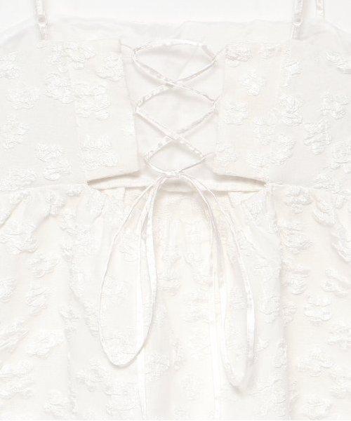 背部的繫帶設計可以調整裙身的寬度。閃亮精緻的絲帶為背部增添了時尚感。