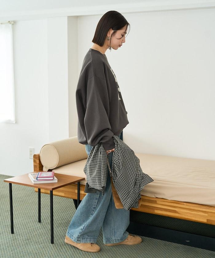 由於印花是整件衣服的亮點,因此下裝可以選擇寬牛仔褲或錐形褲,打造簡潔大方的休閒風格。