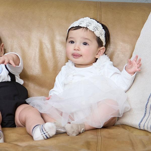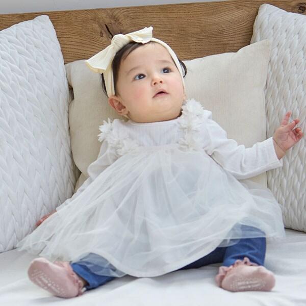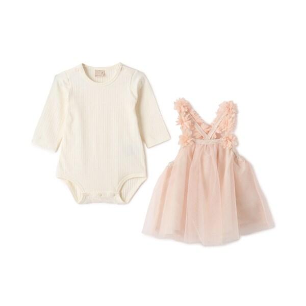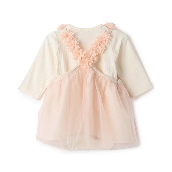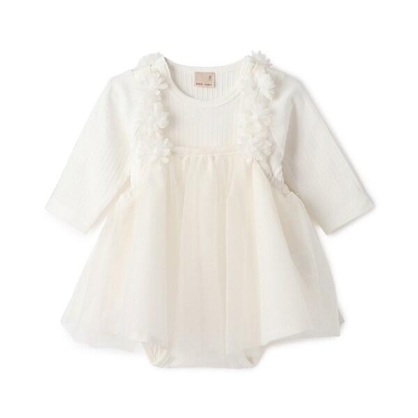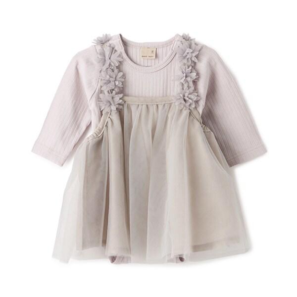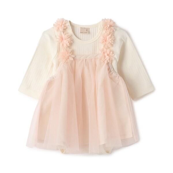 可愛的連衣裙和連體褲套裝,採用花朵薄紗。