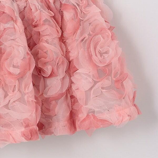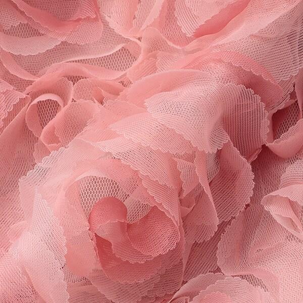 薄紗面料上有漂亮的紡織品,扇形帶打造成花朵形狀。