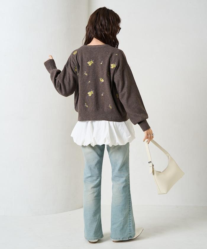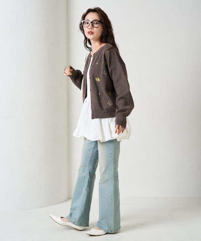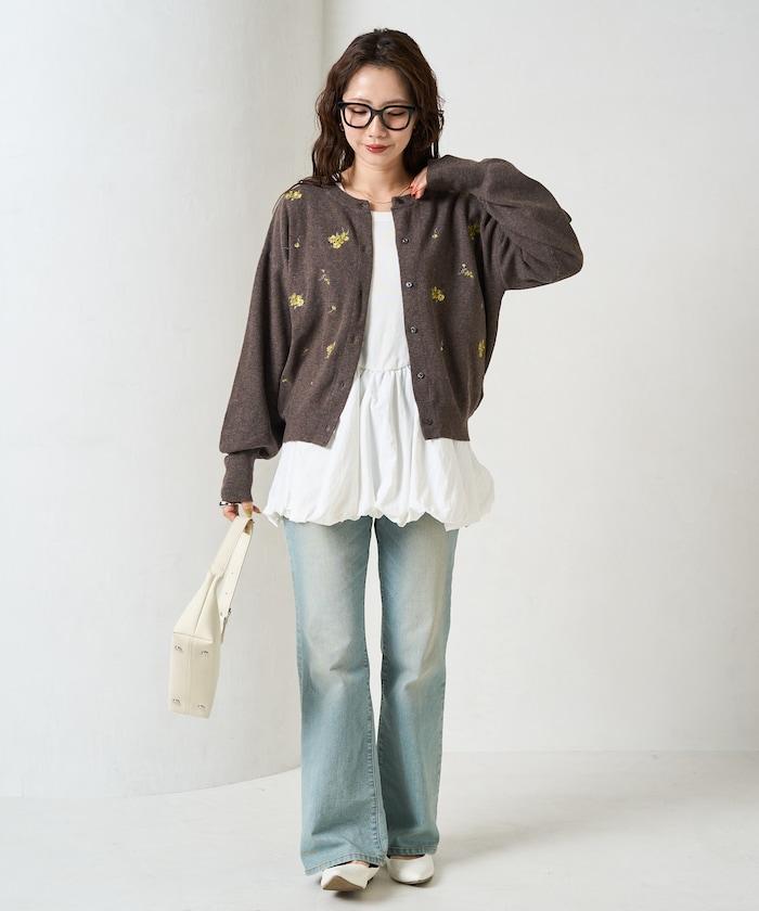 這款花朵圖案開衫給人的少女印象👍適合搭配長褲!