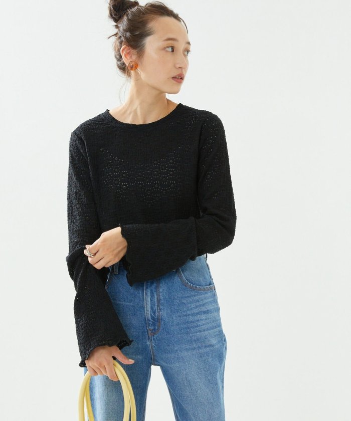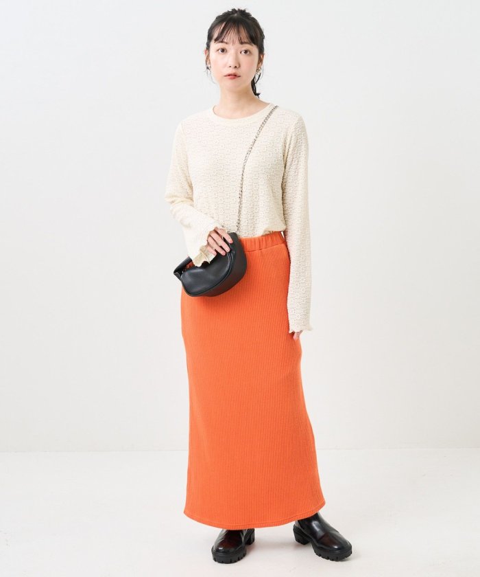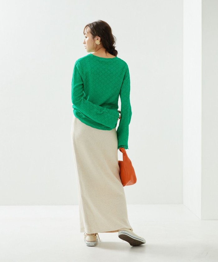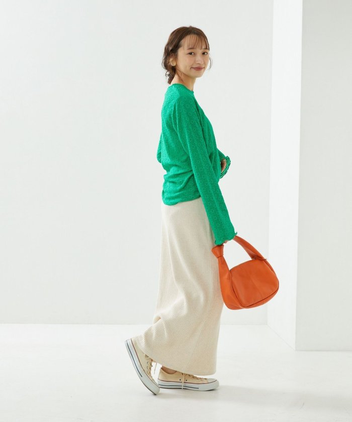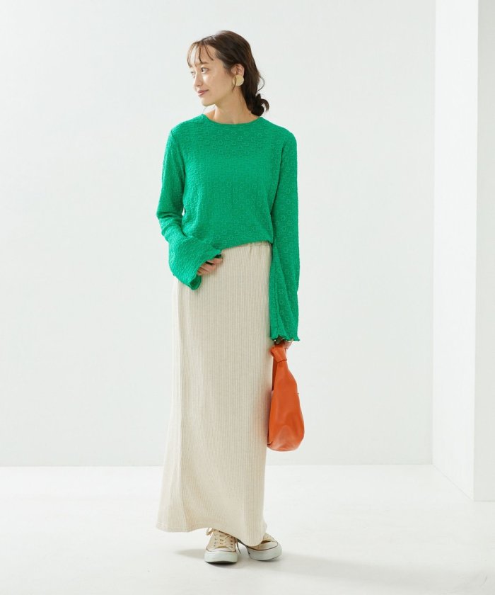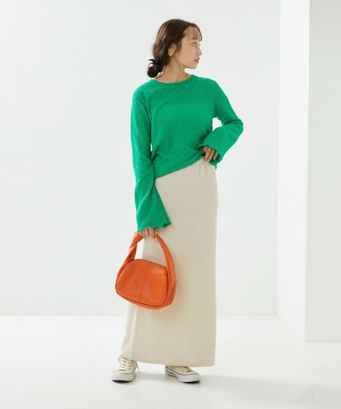 喇叭形的輪廓和圓潤的羅紋下襬給人一種潮流的印象!
