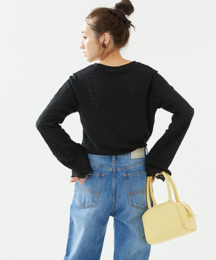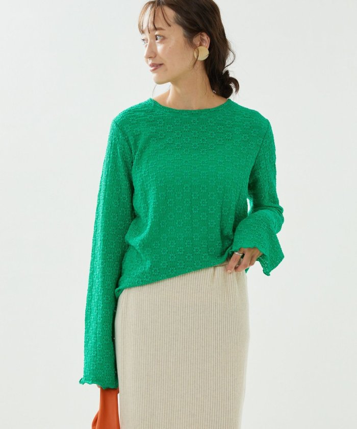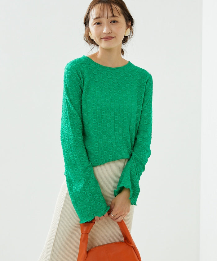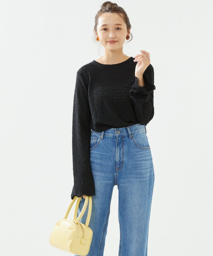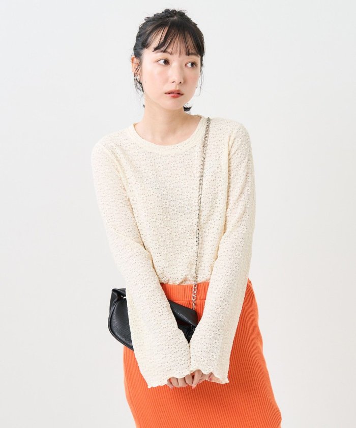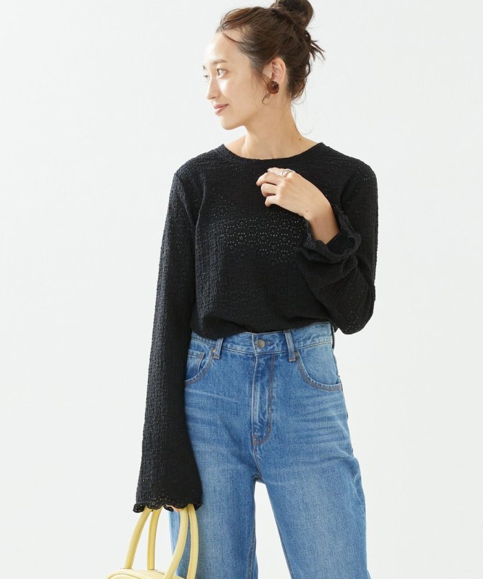 喇叭形的輪廓和圓潤的羅紋下襬給人一種潮流的印象!