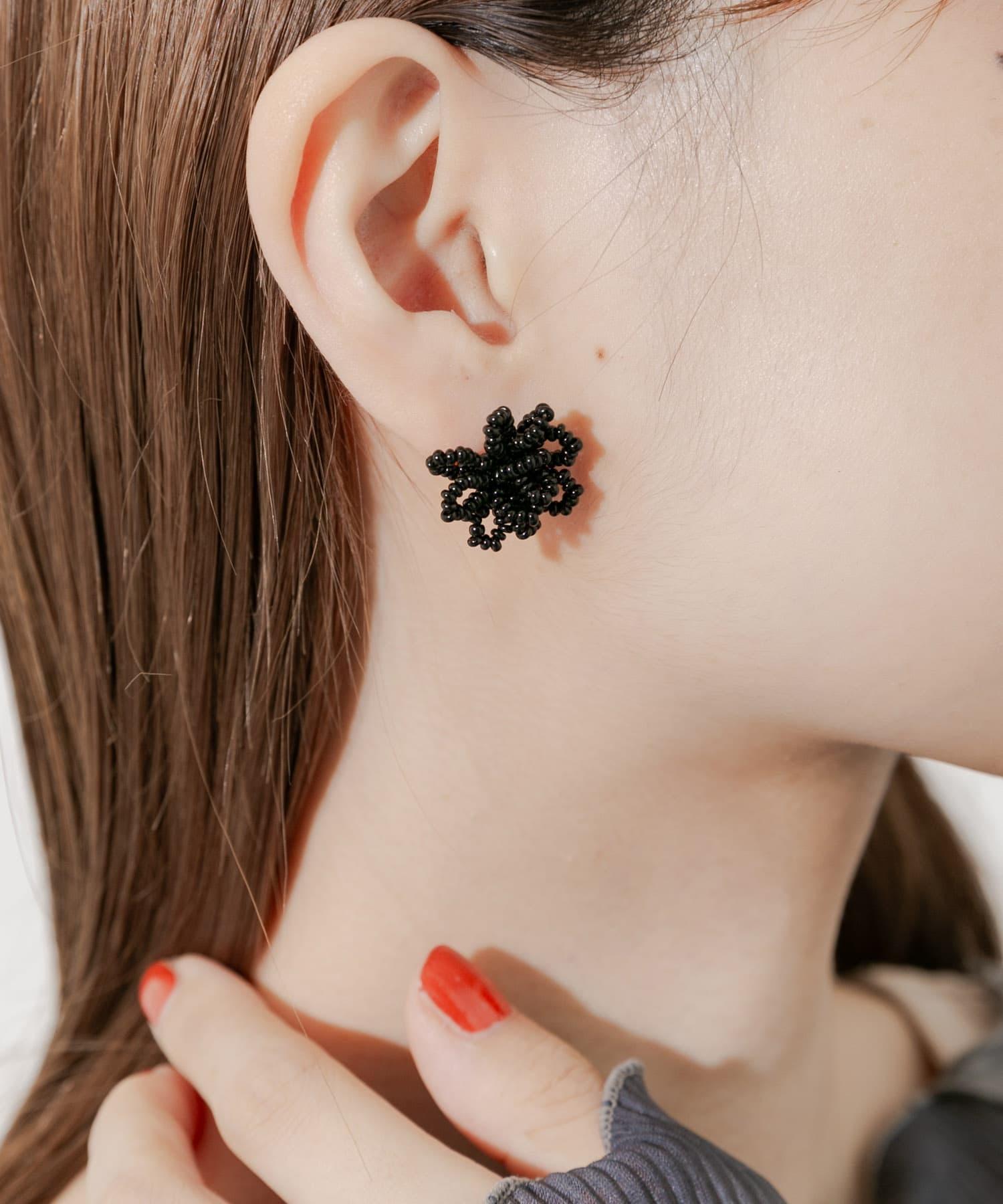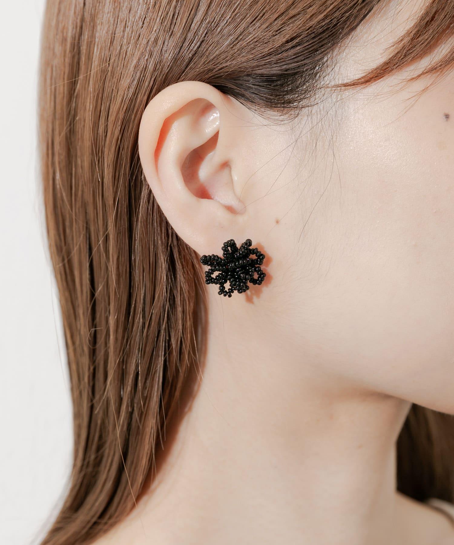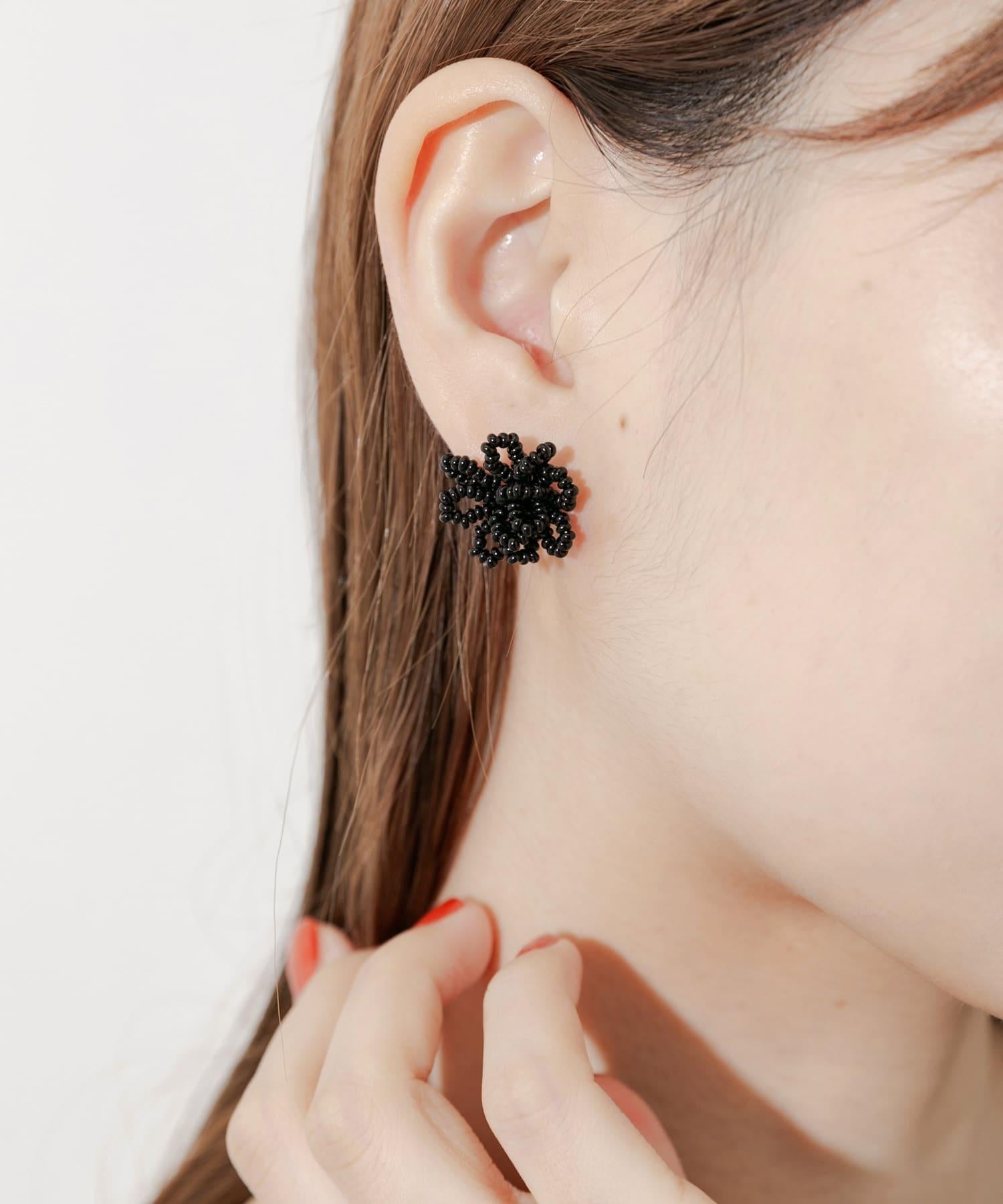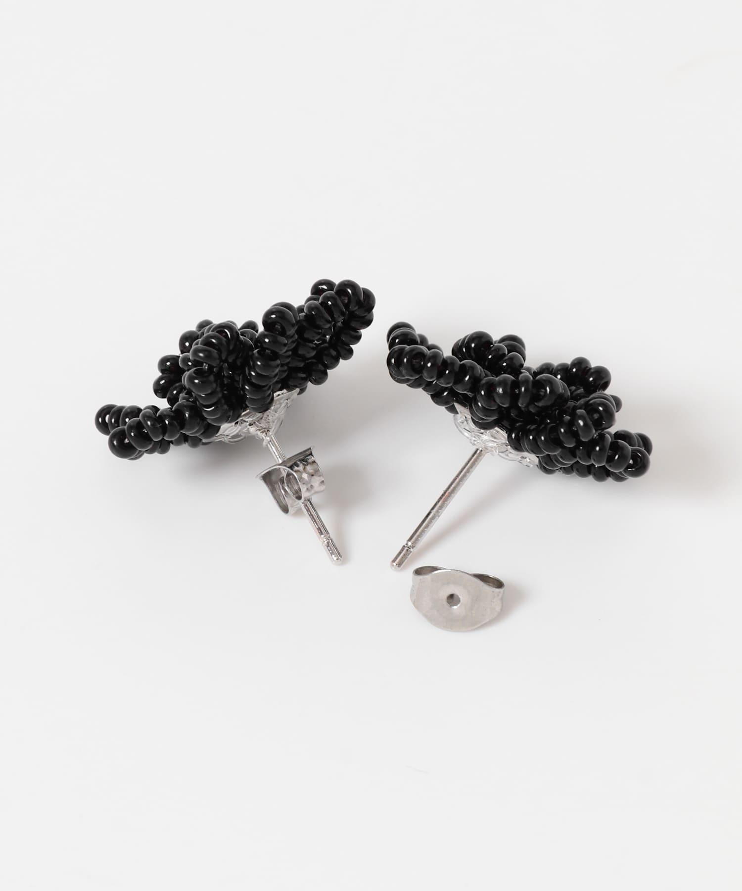 這款立體耳環以黑色迷你珠子構成花朵圖案。