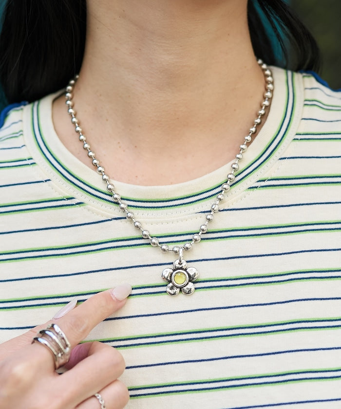 球形鏈條上的花朵圖案項鍊,氣場十足。