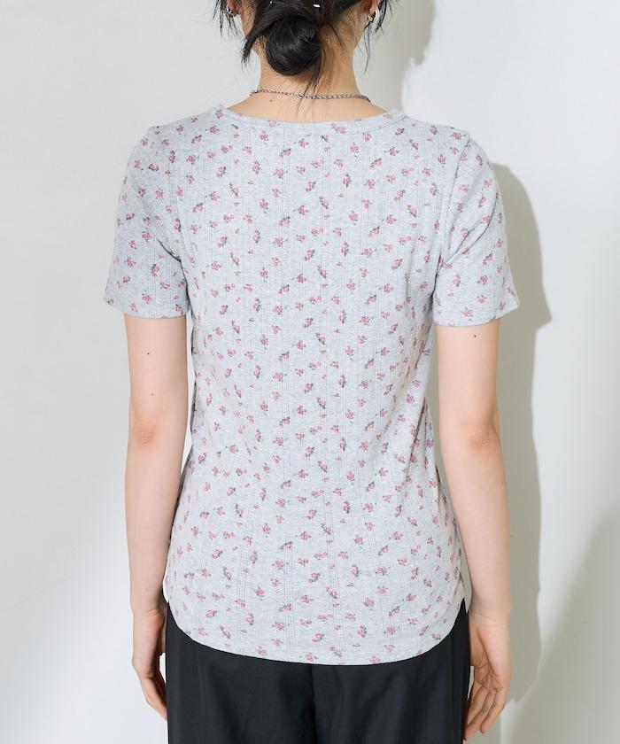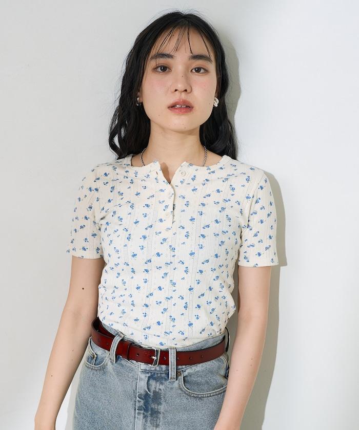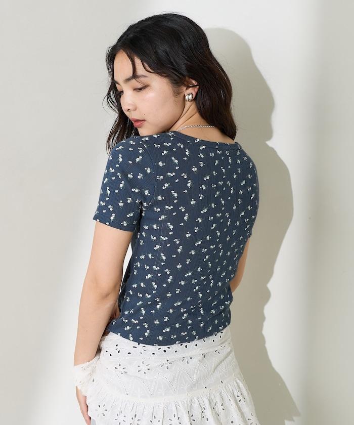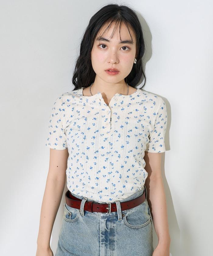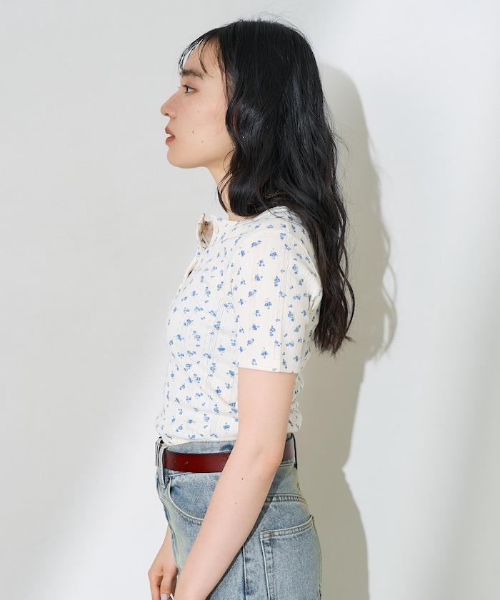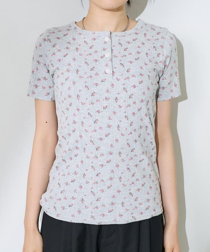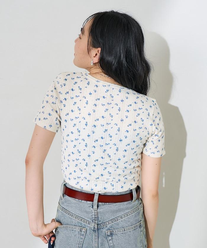 可愛的花朵雞心領 T 恤,充滿復古氣息。