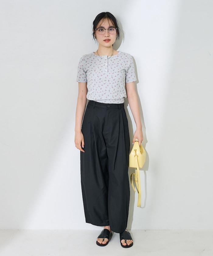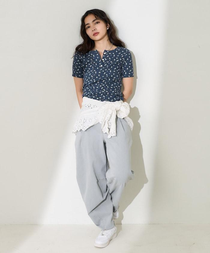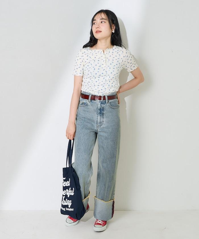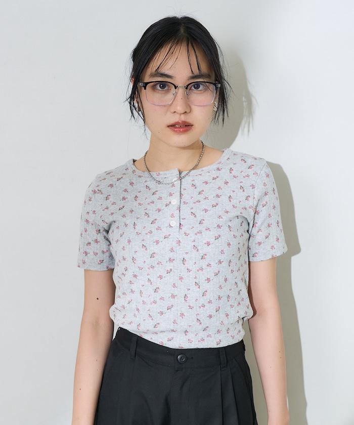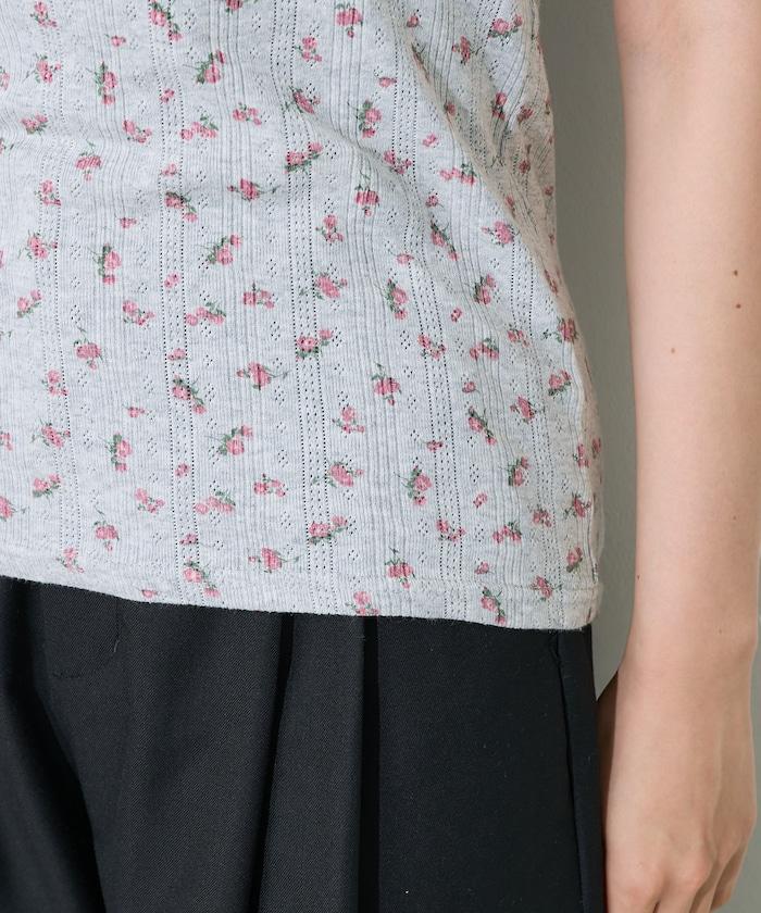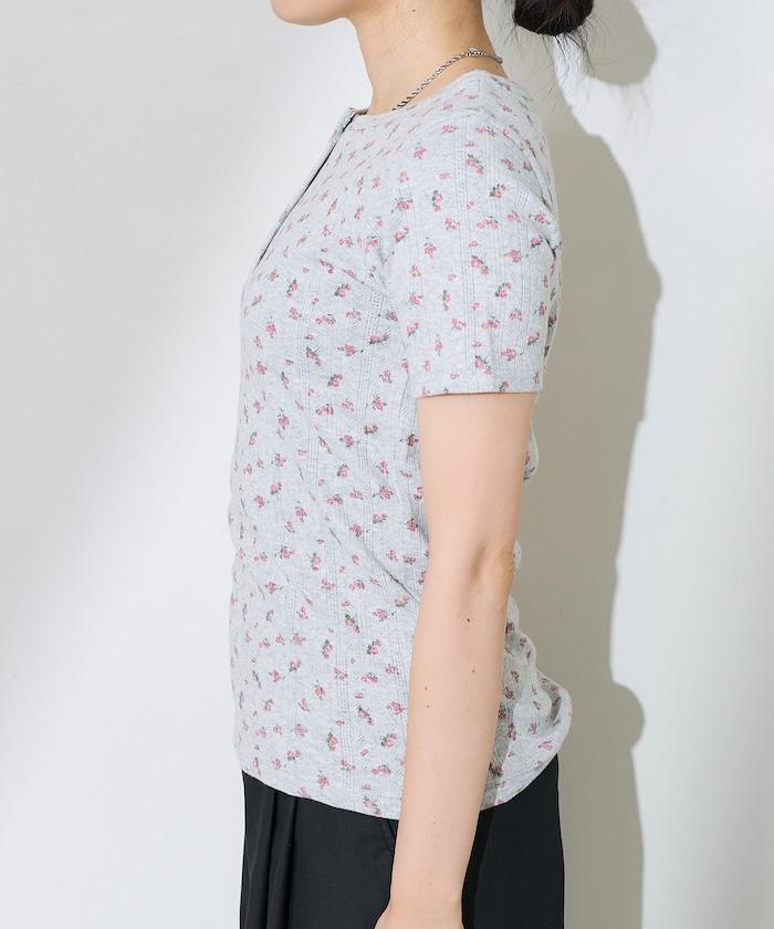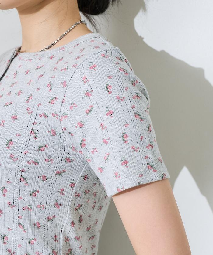 可愛的花朵雞心領 T 恤,充滿復古氣息。