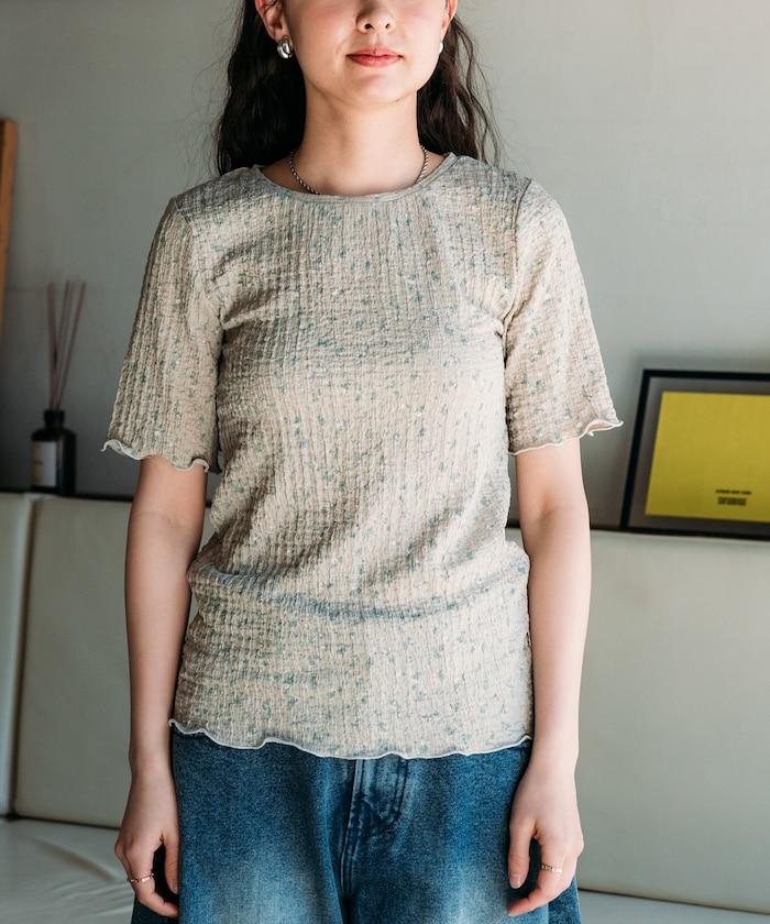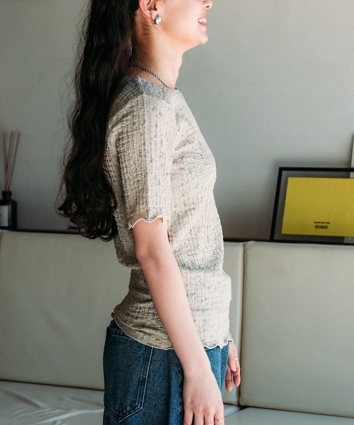 剪裁縫製的短袖上衣,印有原創花卉圖案。
