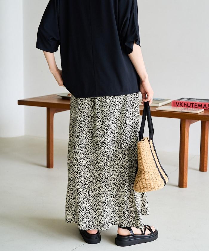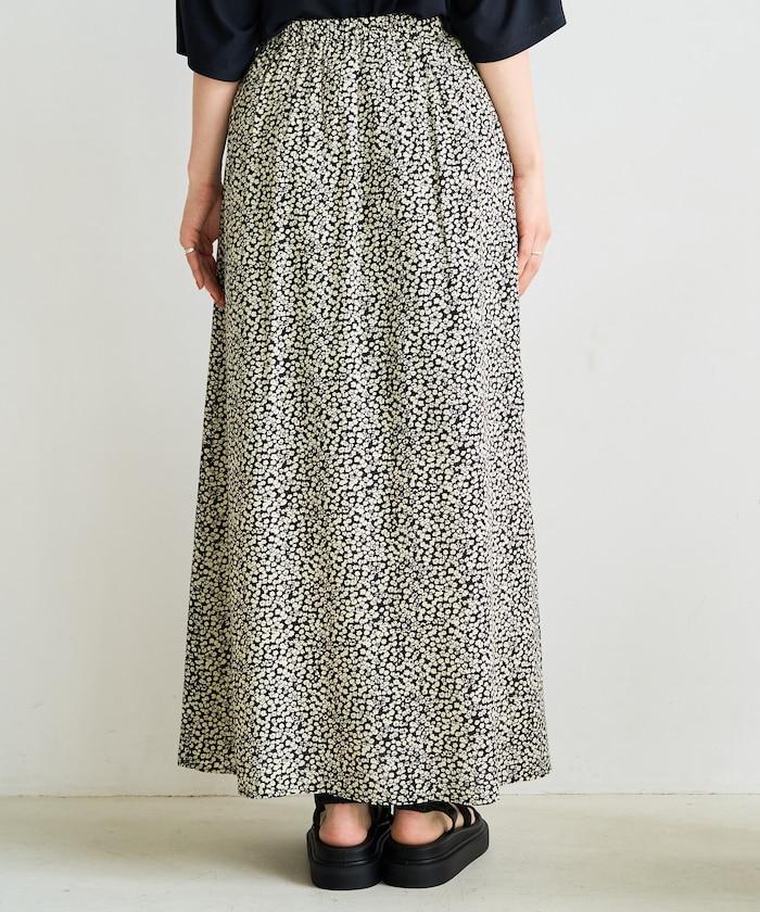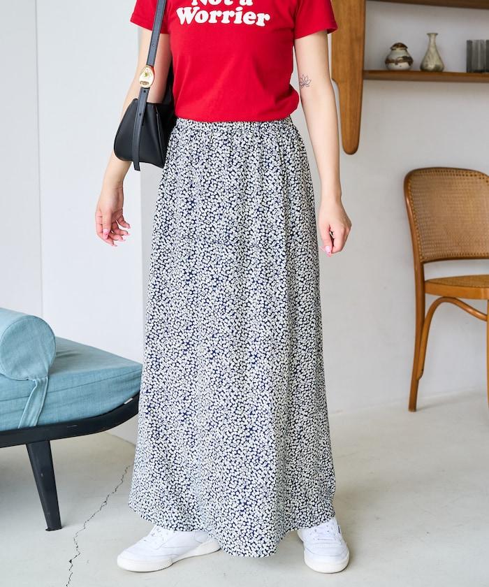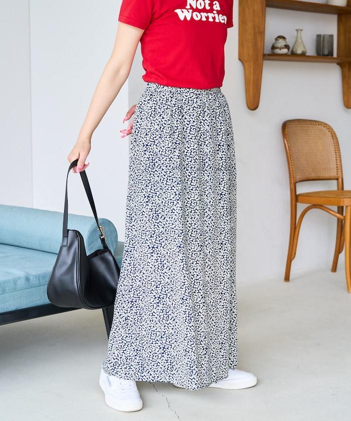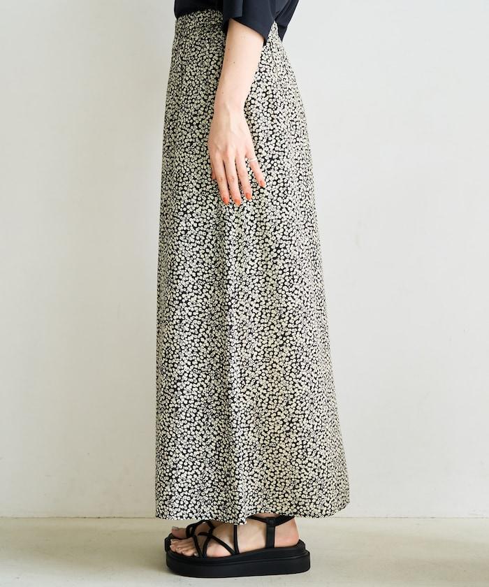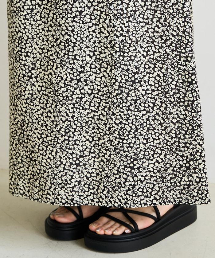 醒目的超長喇叭裙,帶有復古花朵圖案。