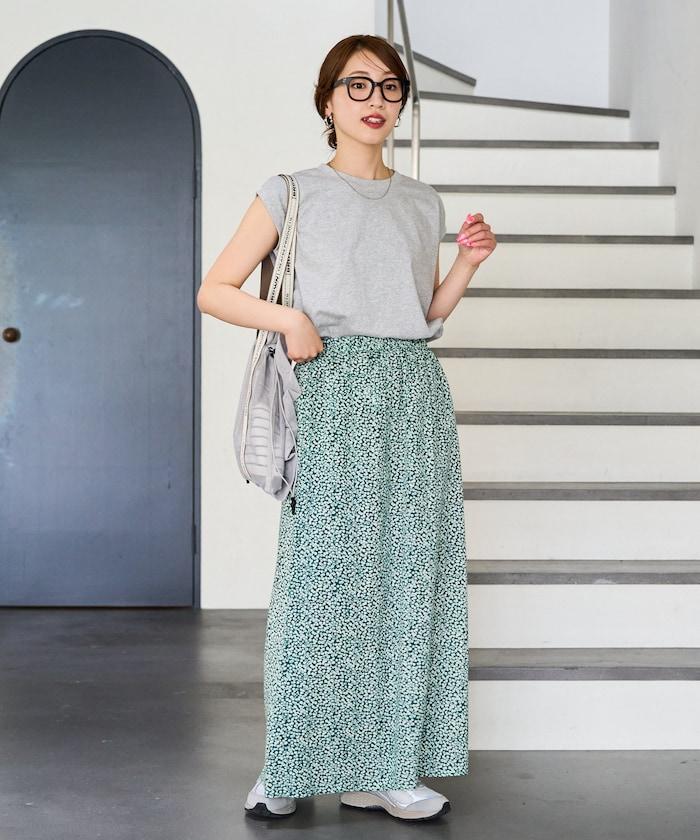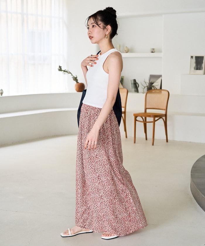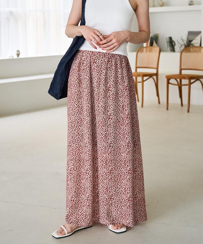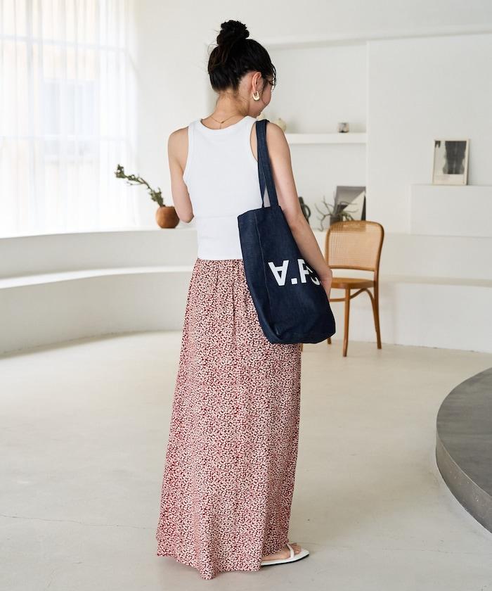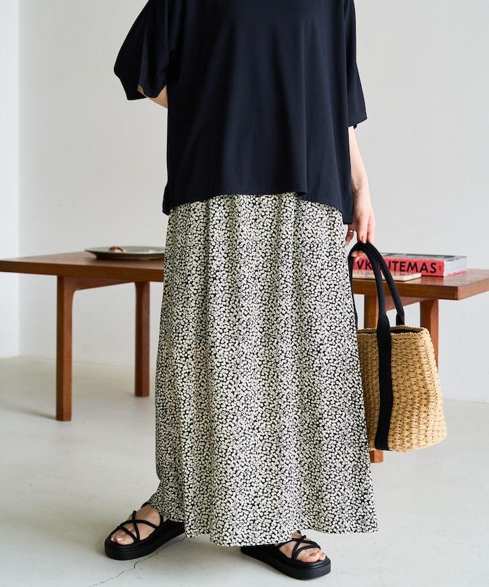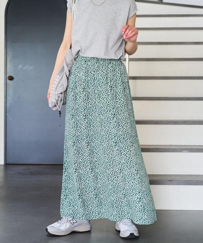 醒目的超長喇叭裙,帶有復古花朵圖案。