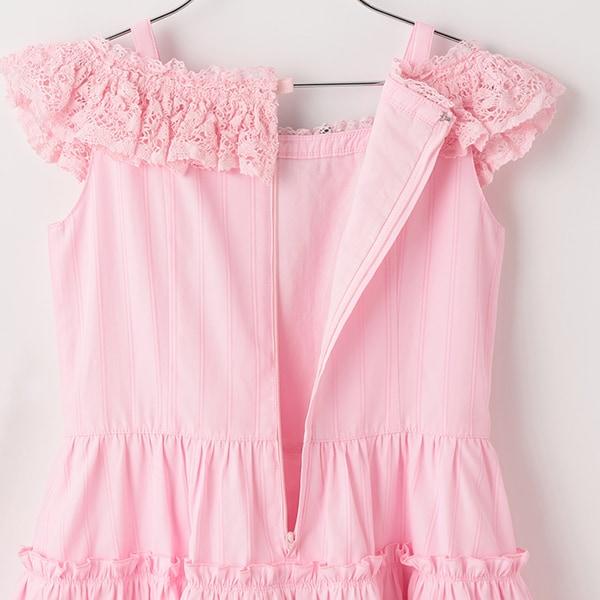 褶襉蕾絲領略露肩設計,增添了一絲精緻感。