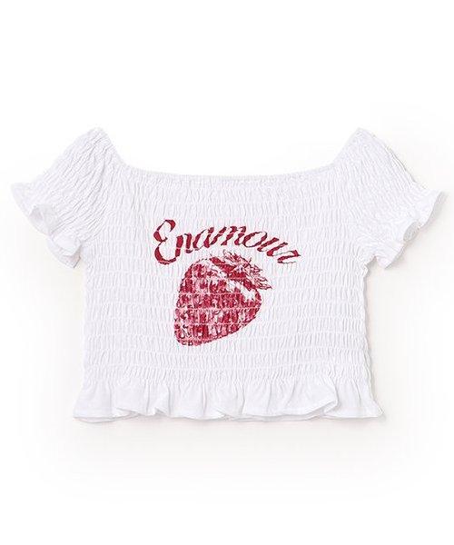 本季值得推薦的一款上衣,帶有少女般的草莓圖案,並飾有搖曳細節!