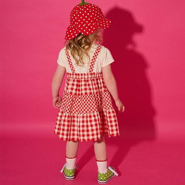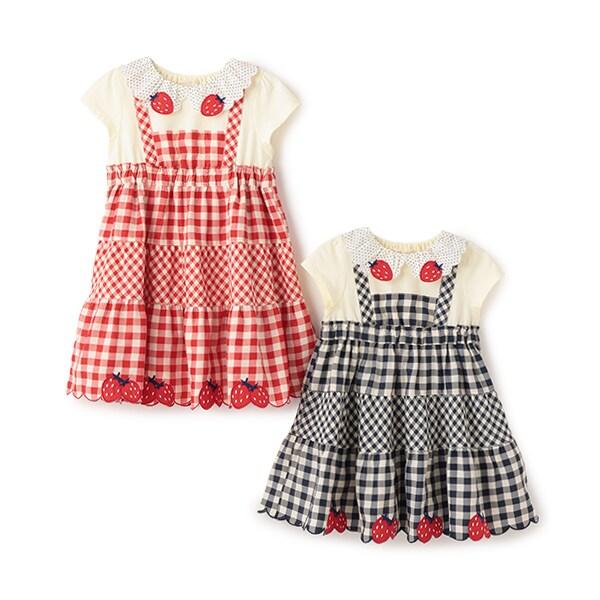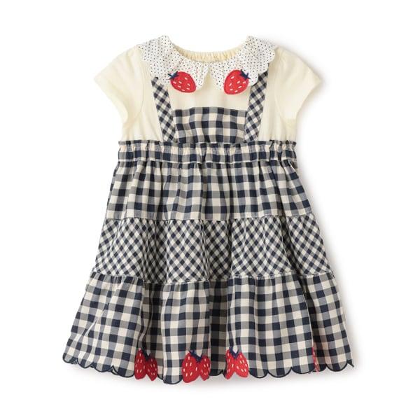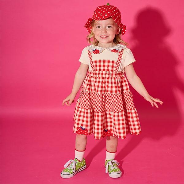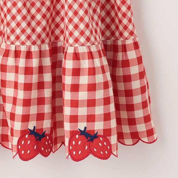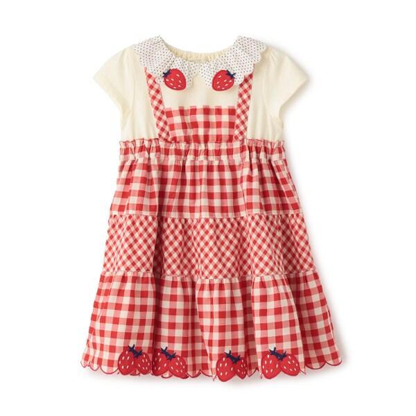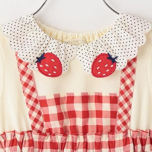 這款連衣裙是大小兩種格子與草莓的可愛組合。
