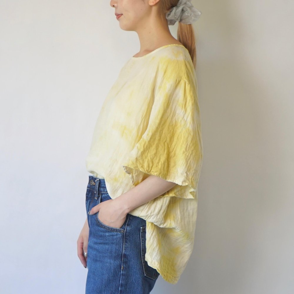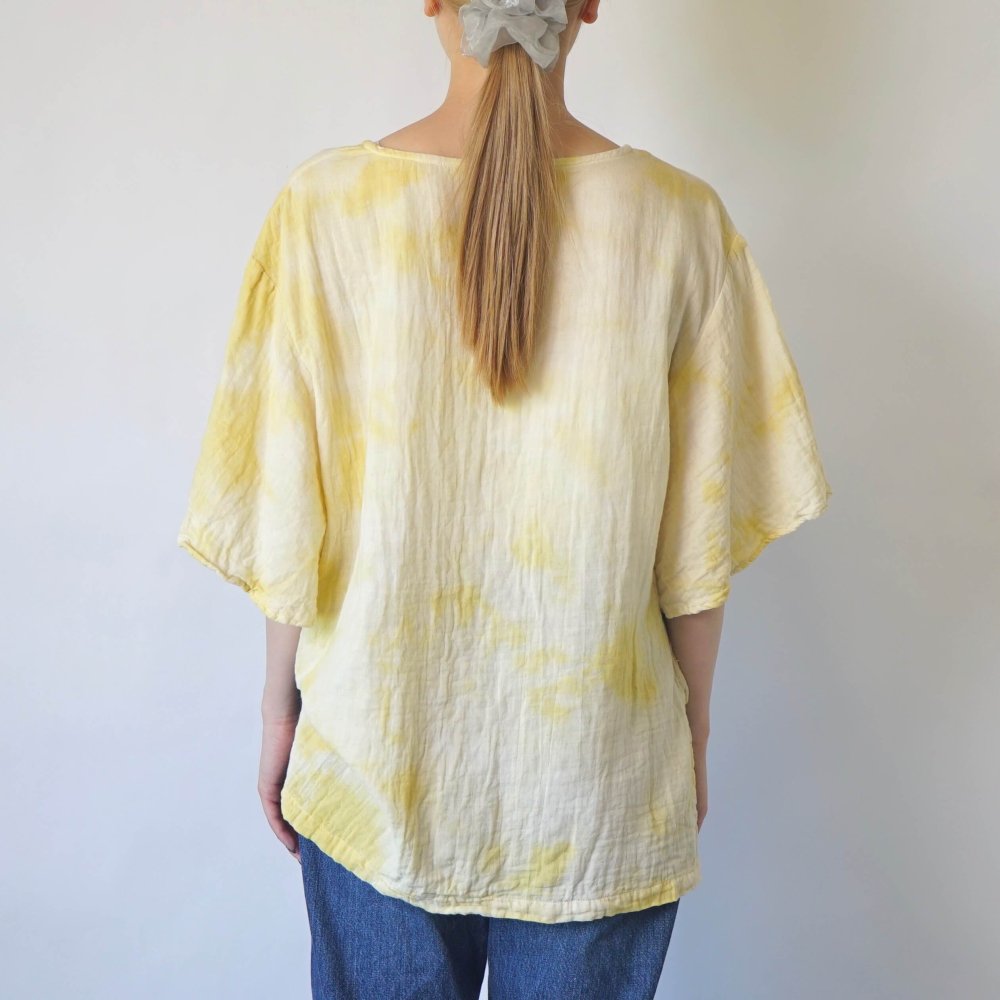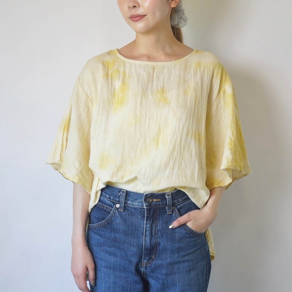 荷葉袖紗T恤/黃色斑點/三河織物雙層紗布