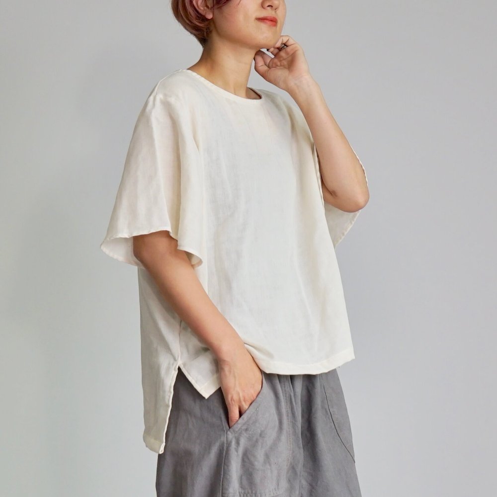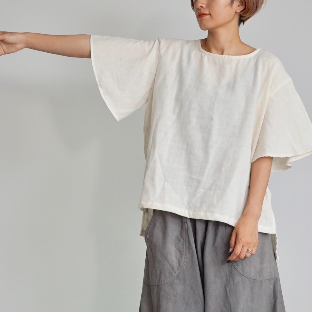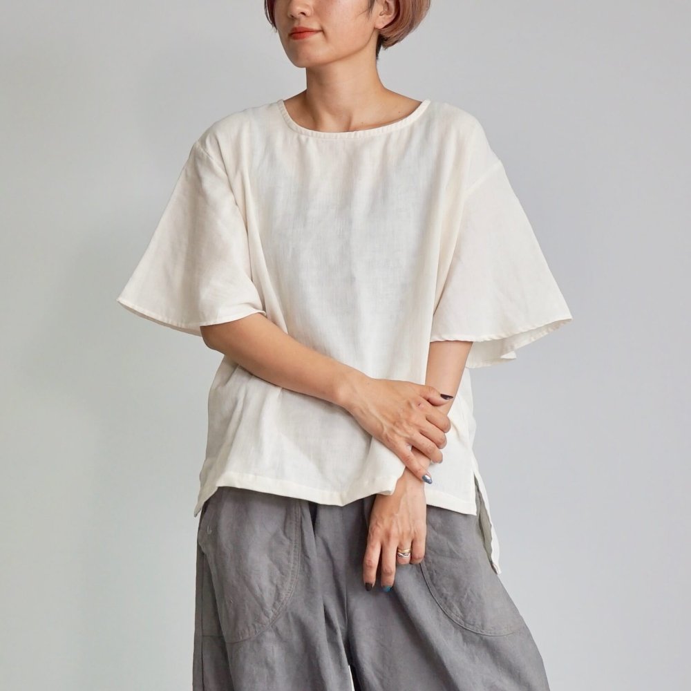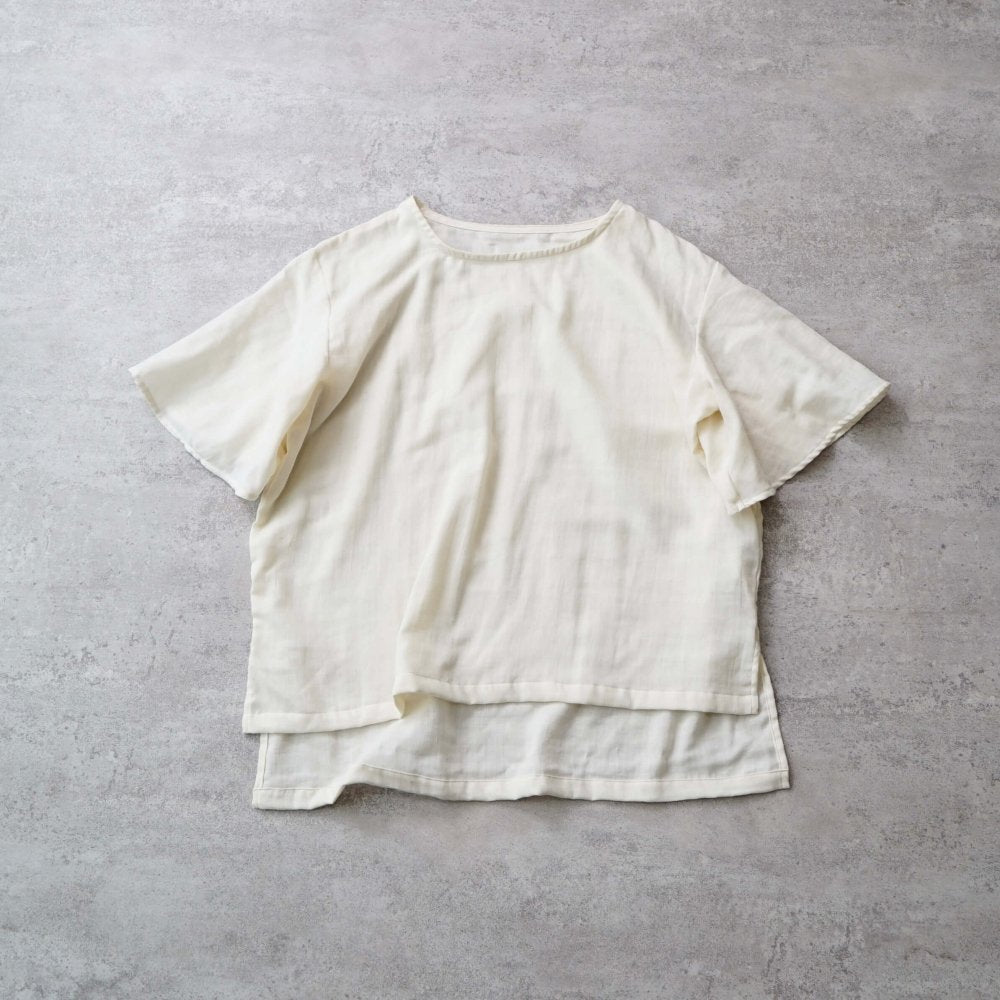 荷葉袖 紗T恤/米白色/三河織物雙層紗布