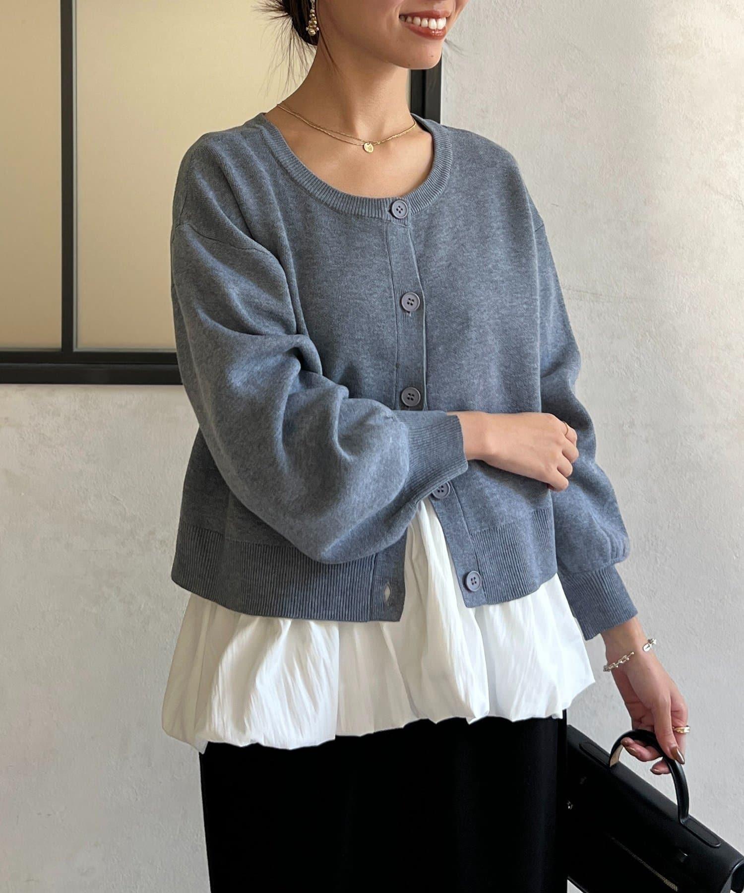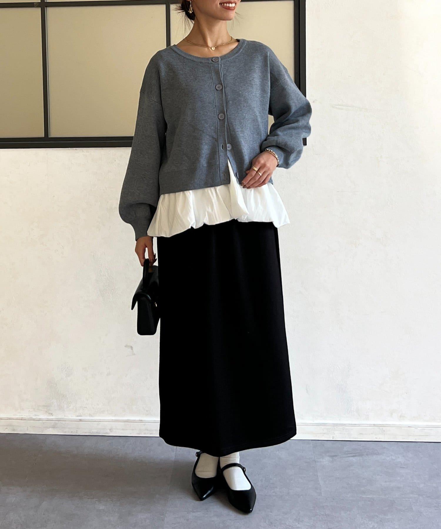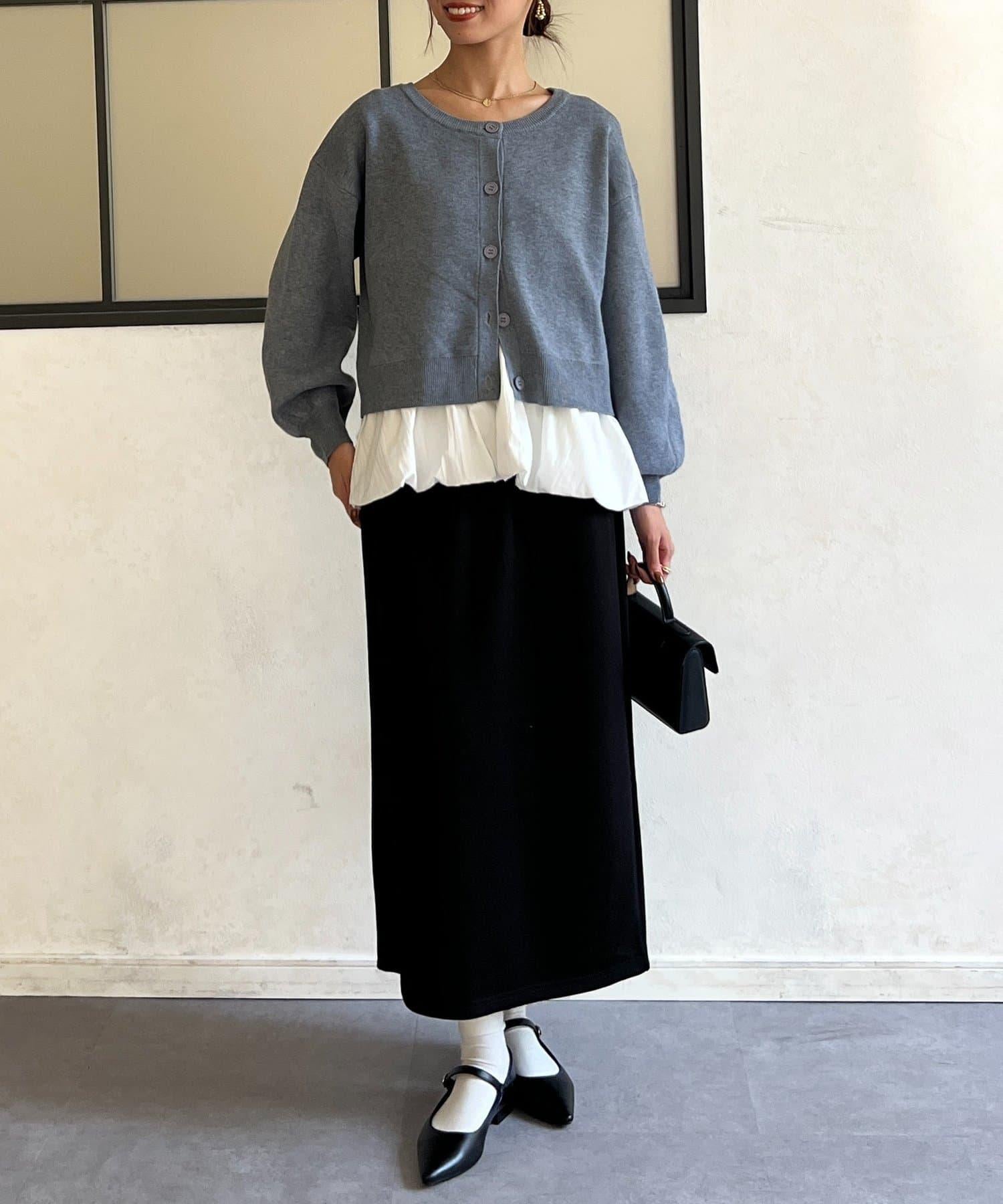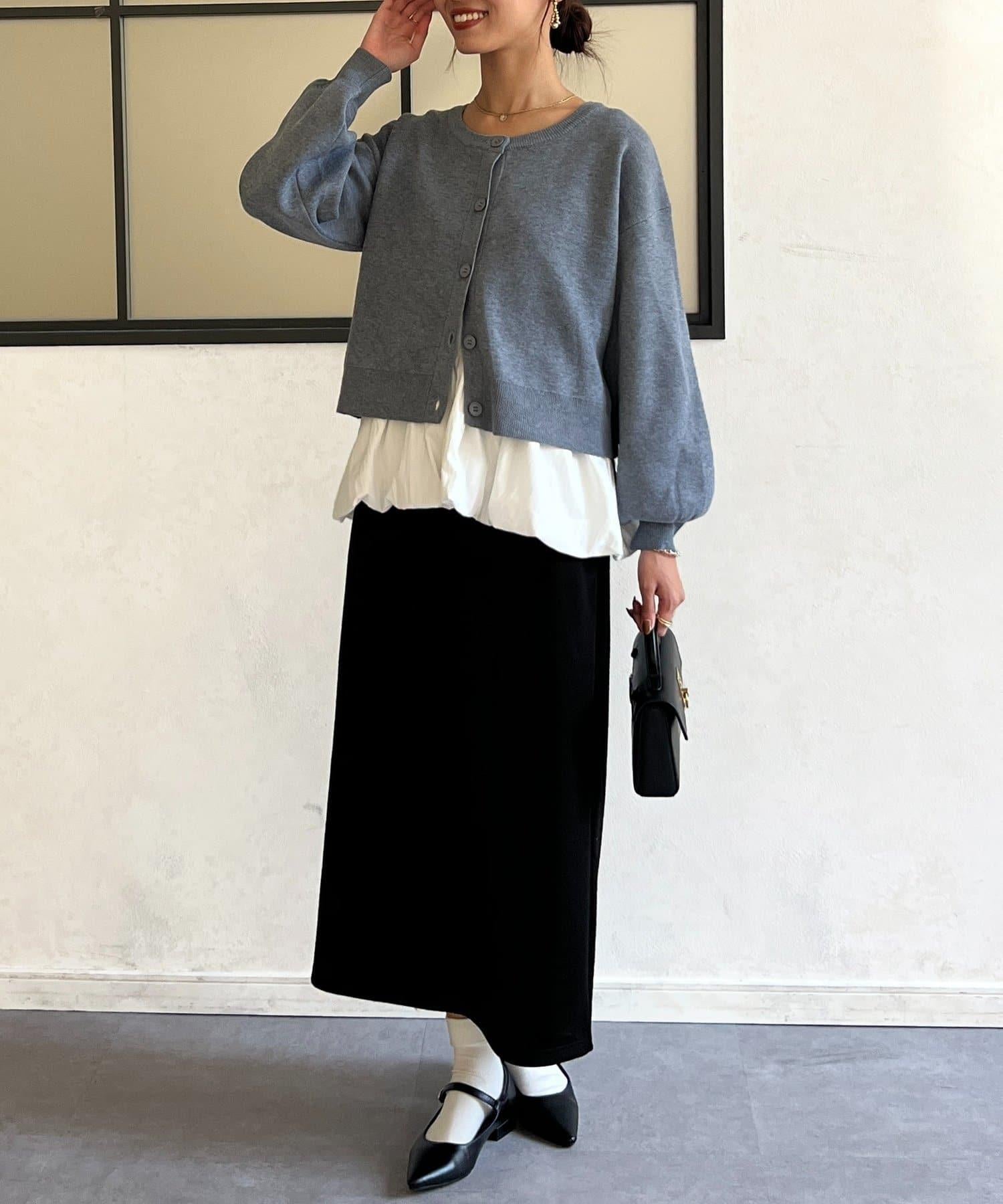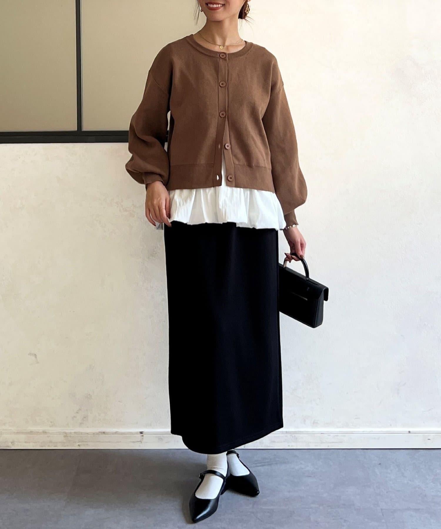 這套單品由具有強烈存在感的波點內搭和具有可愛成人風的簡約開衫組成。