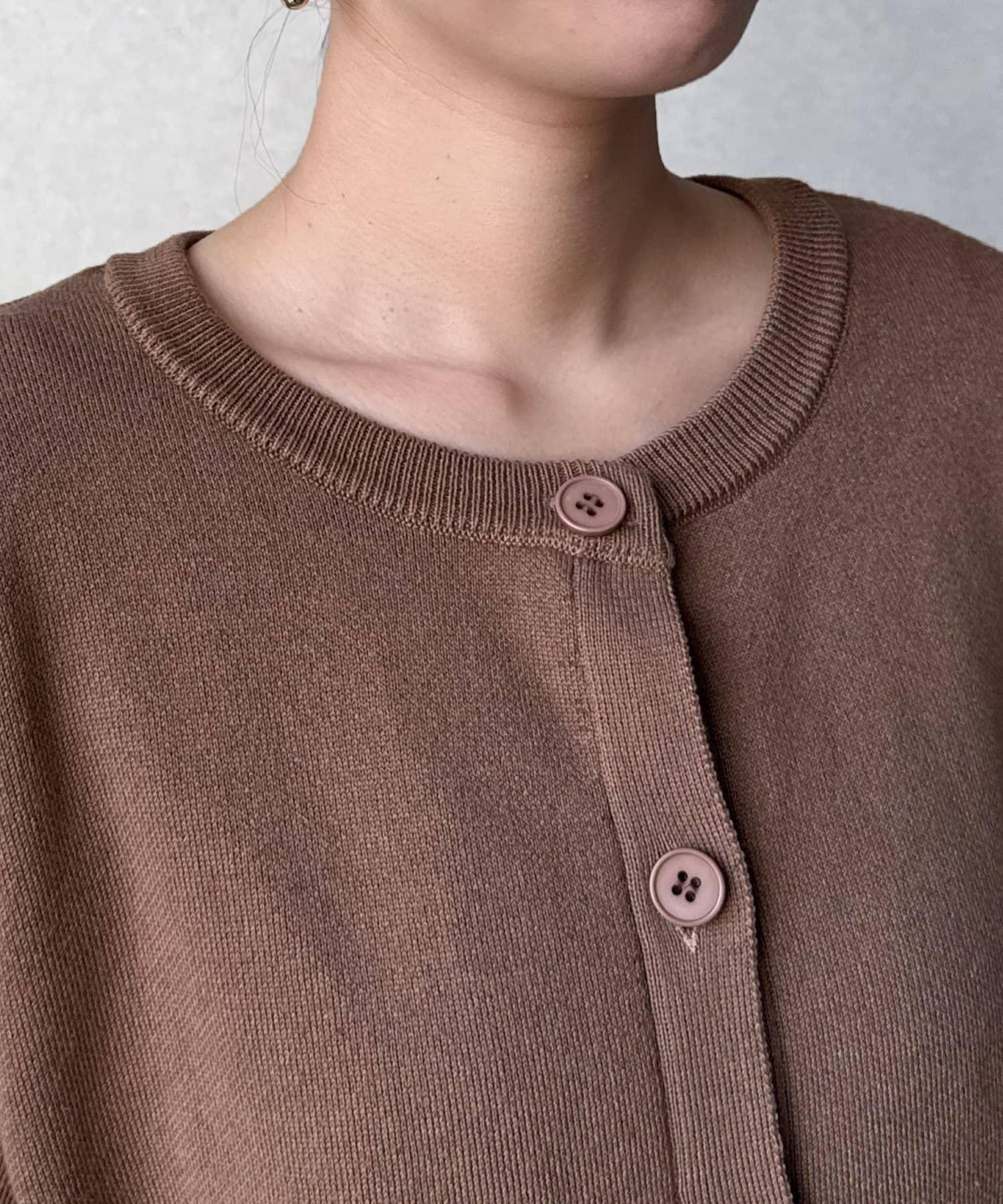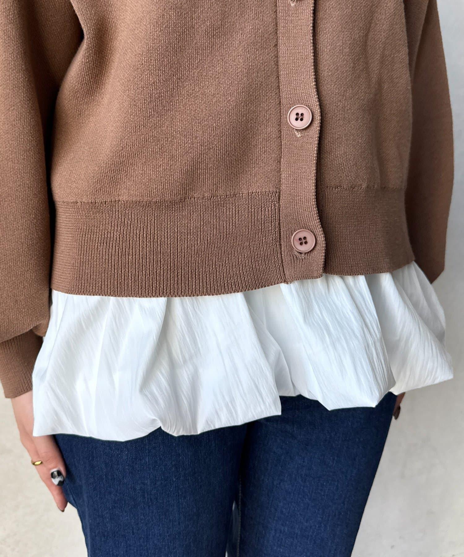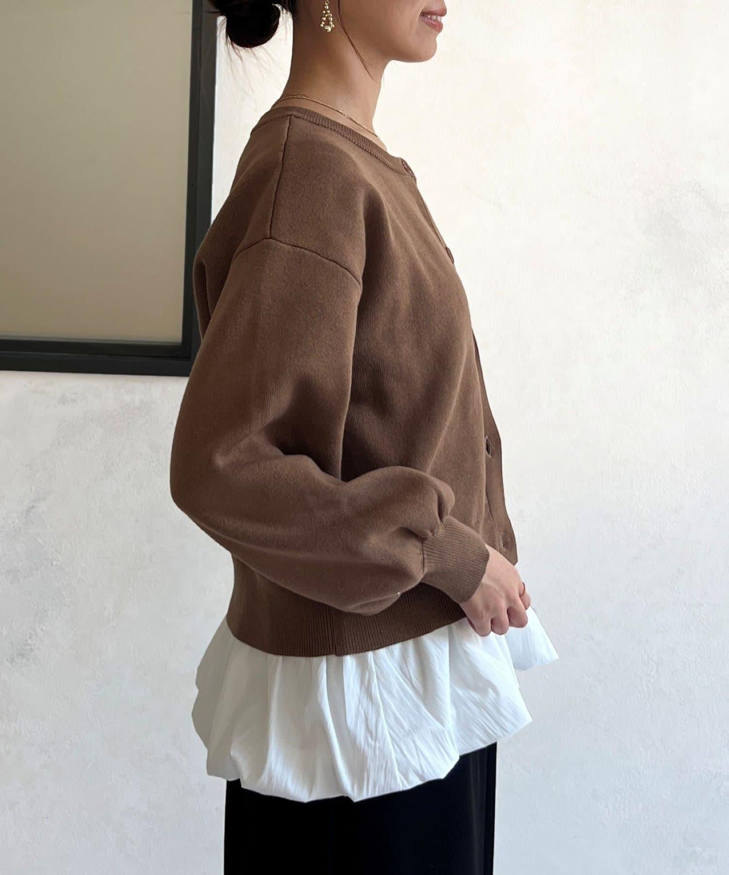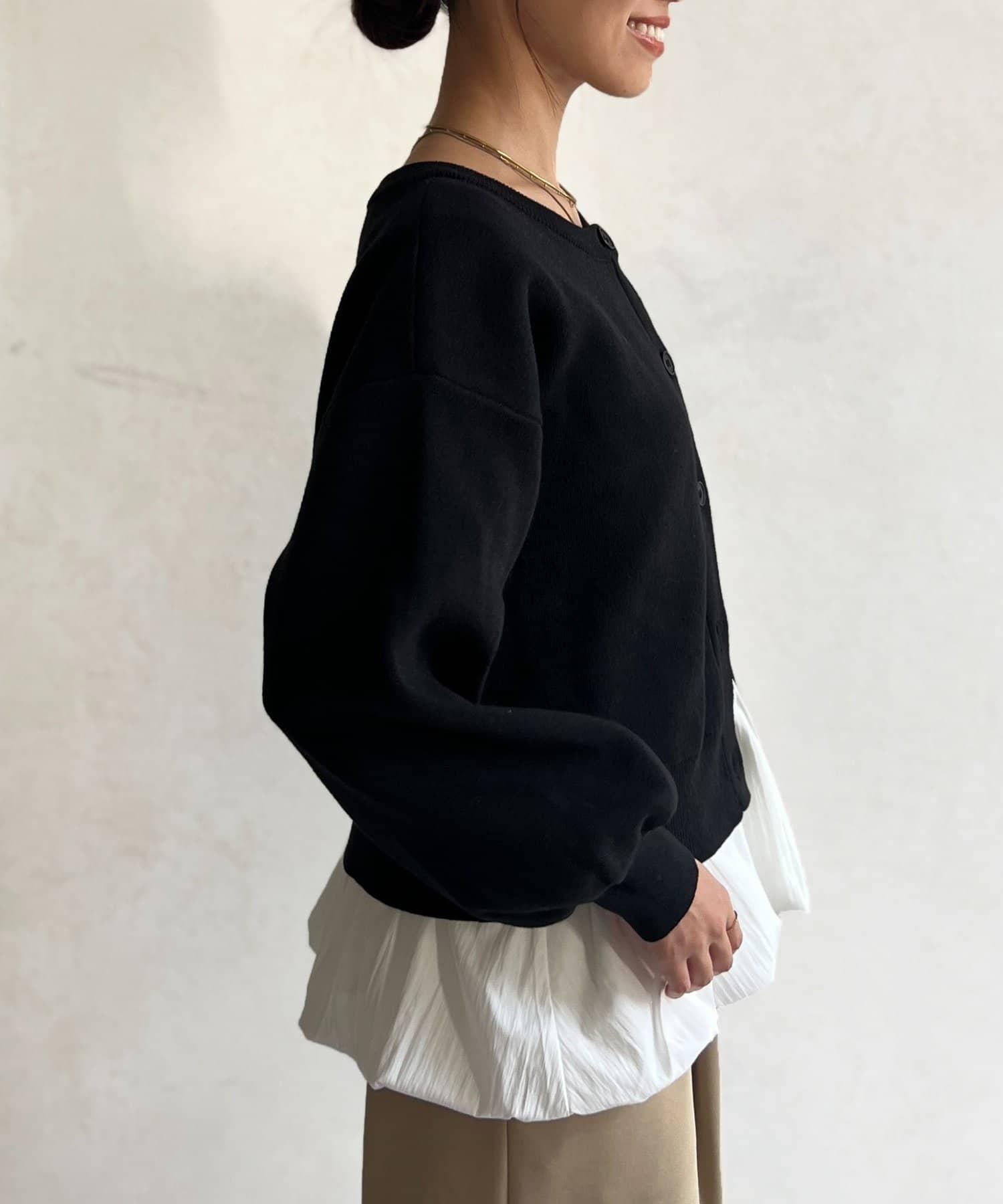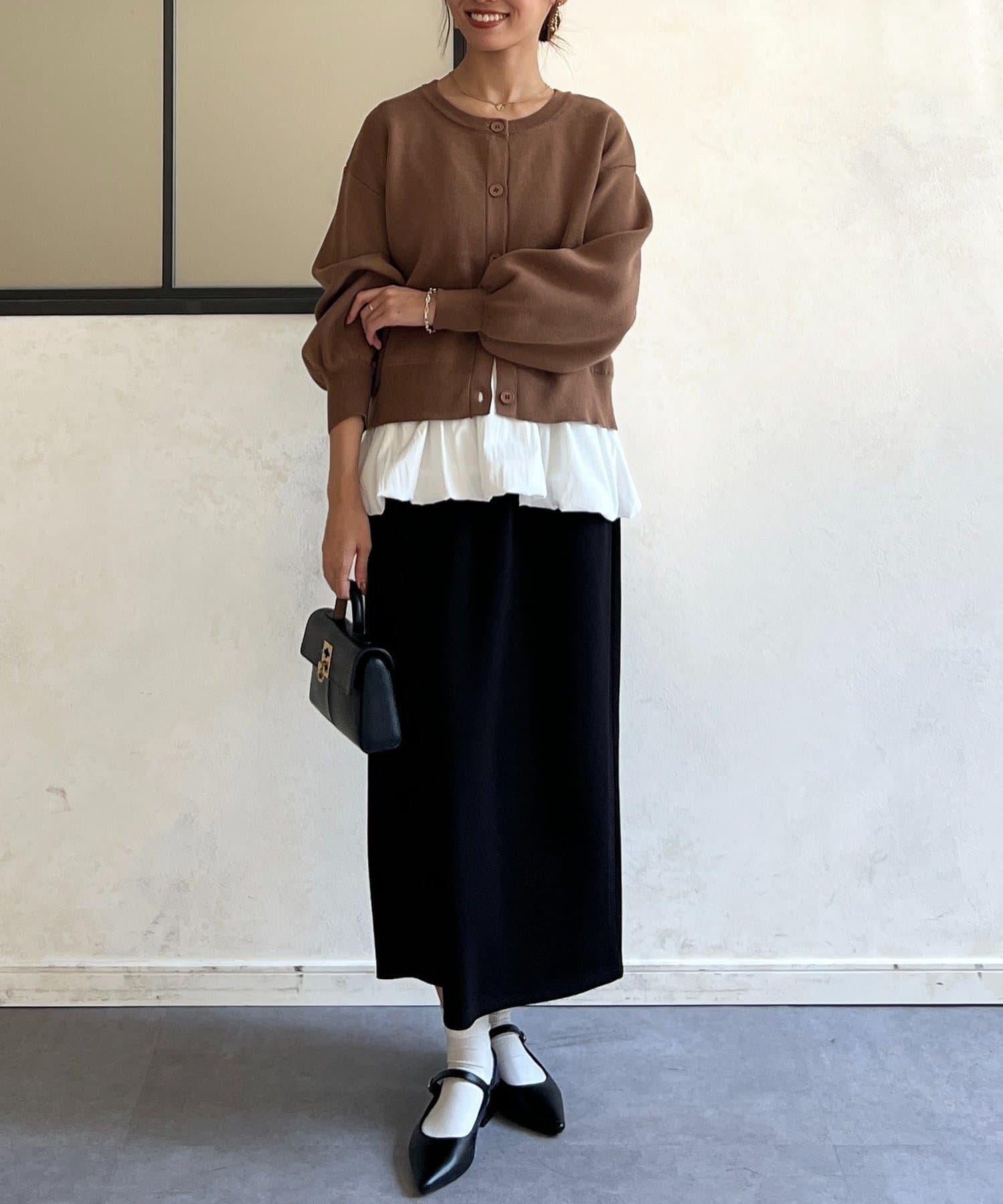 這套單品由具有強烈存在感的波點內搭和具有可愛成人風的簡約開衫組成。
