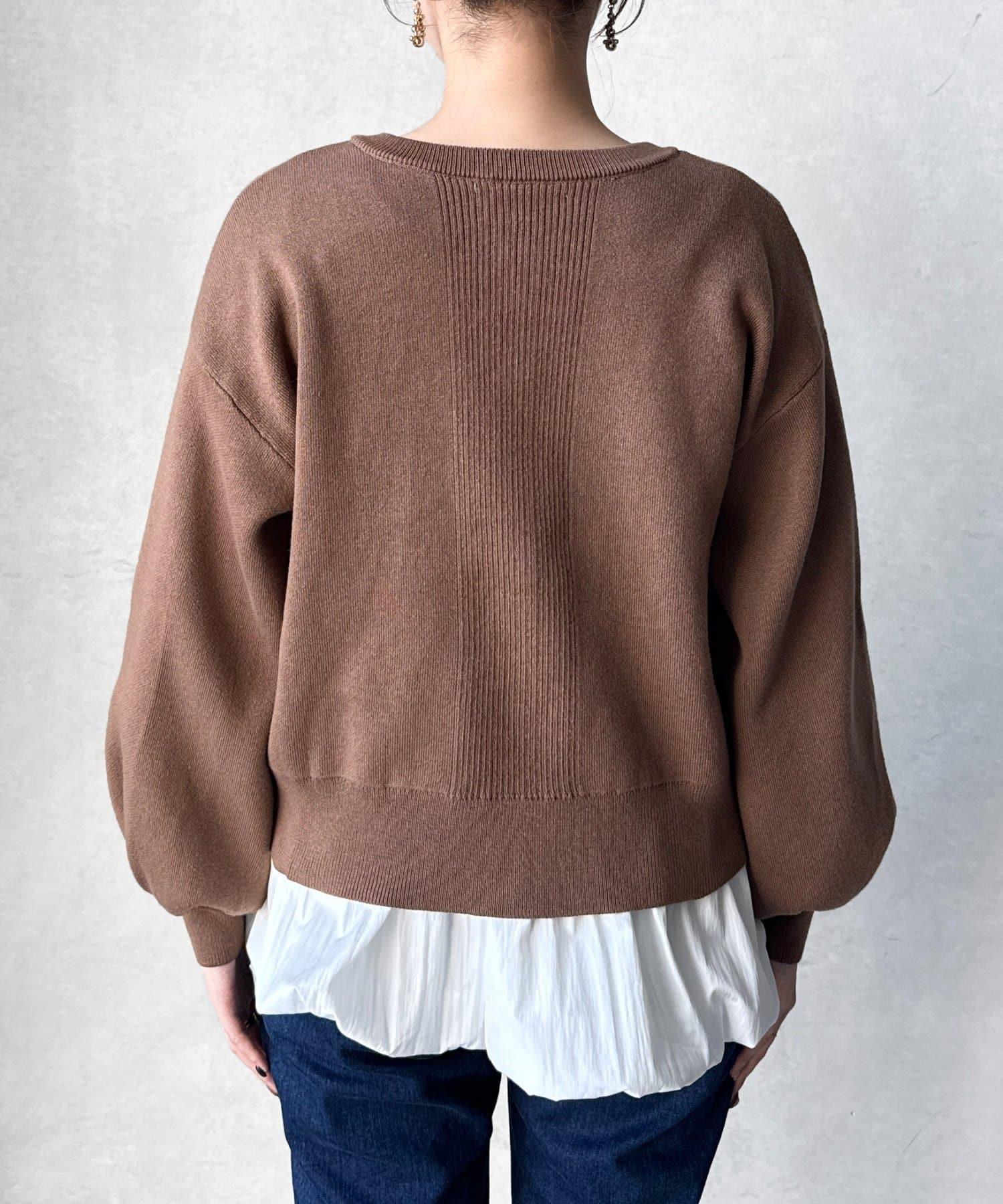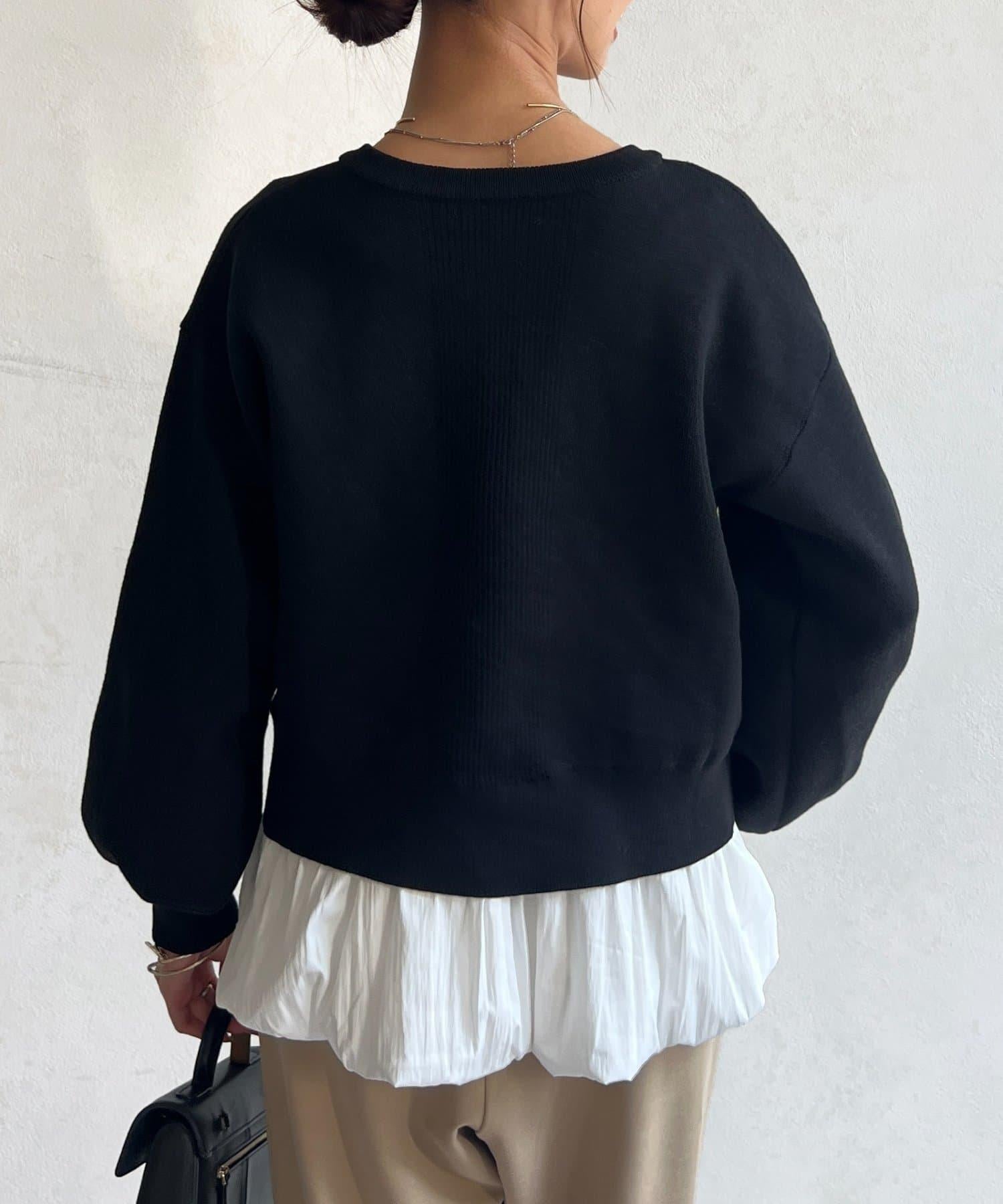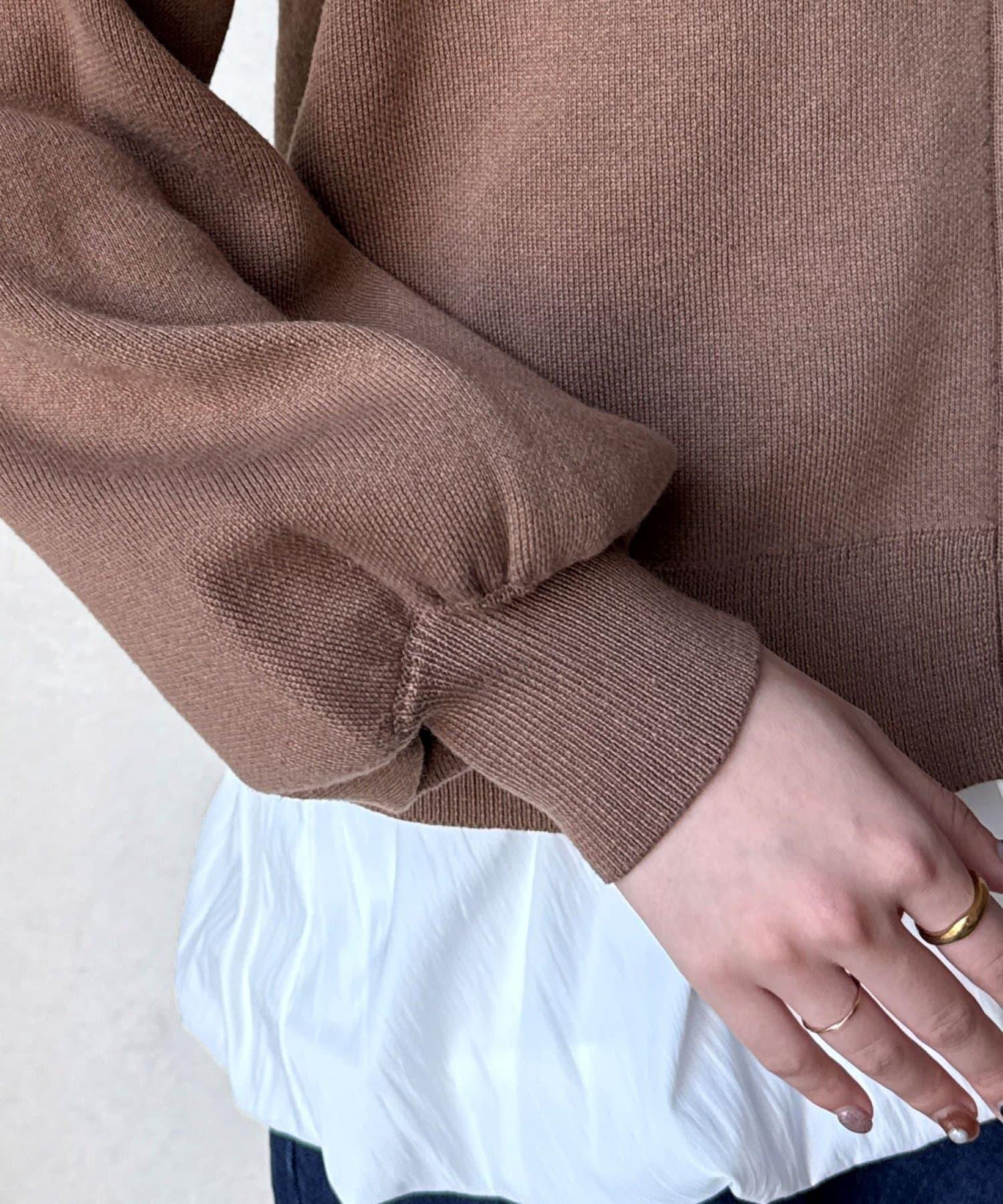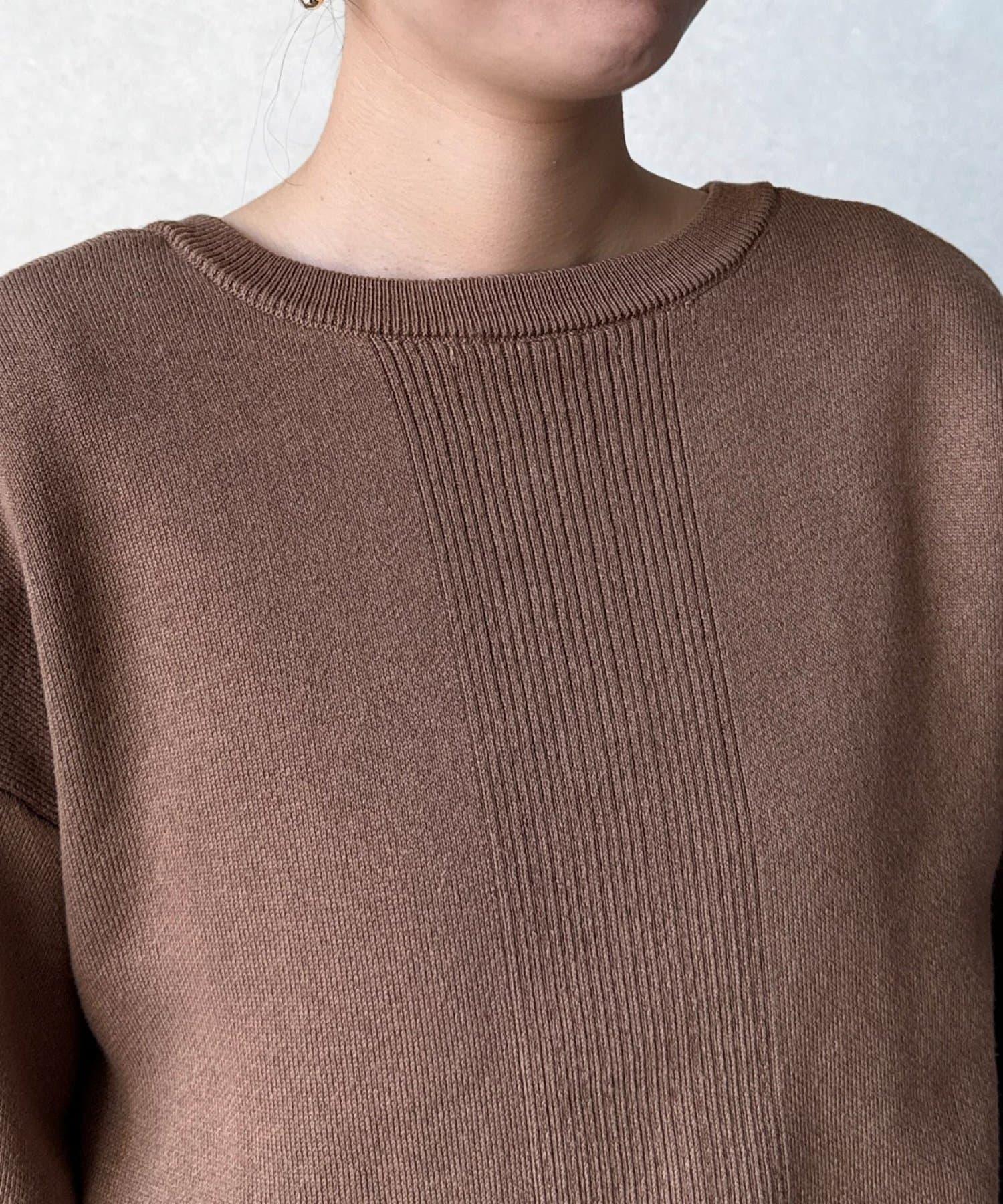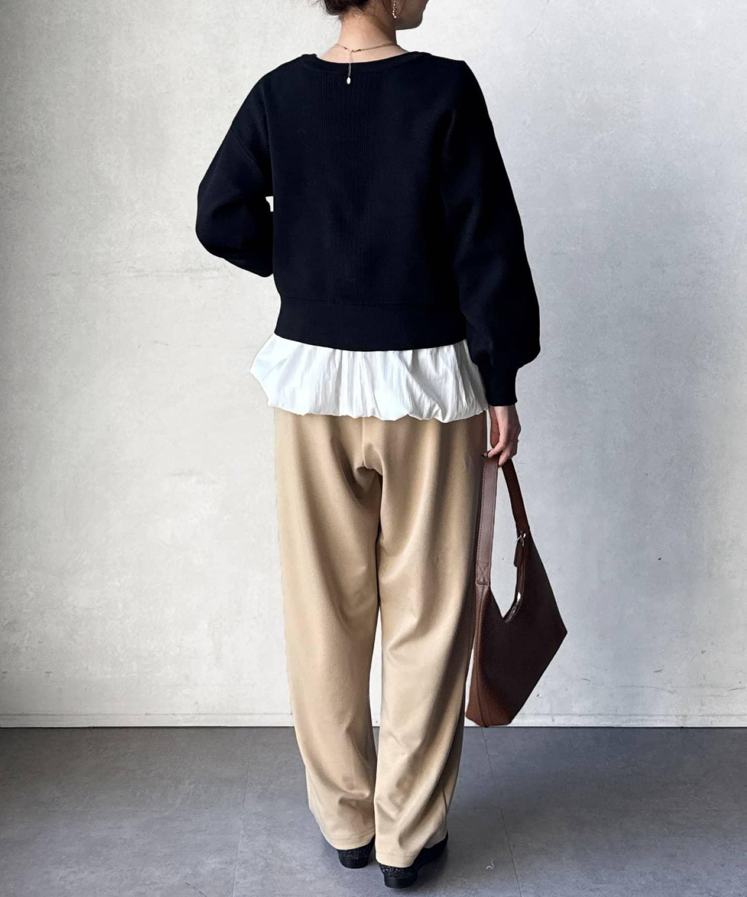 由於可前後雙向穿著,因此也可作為圓領針織衫穿著。