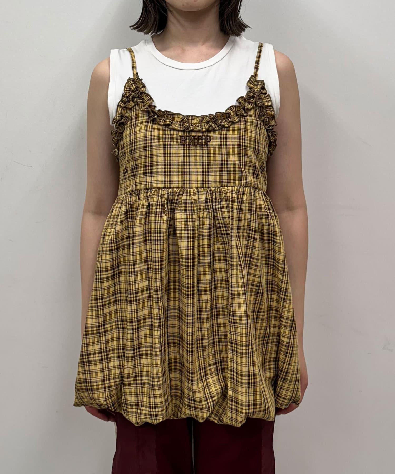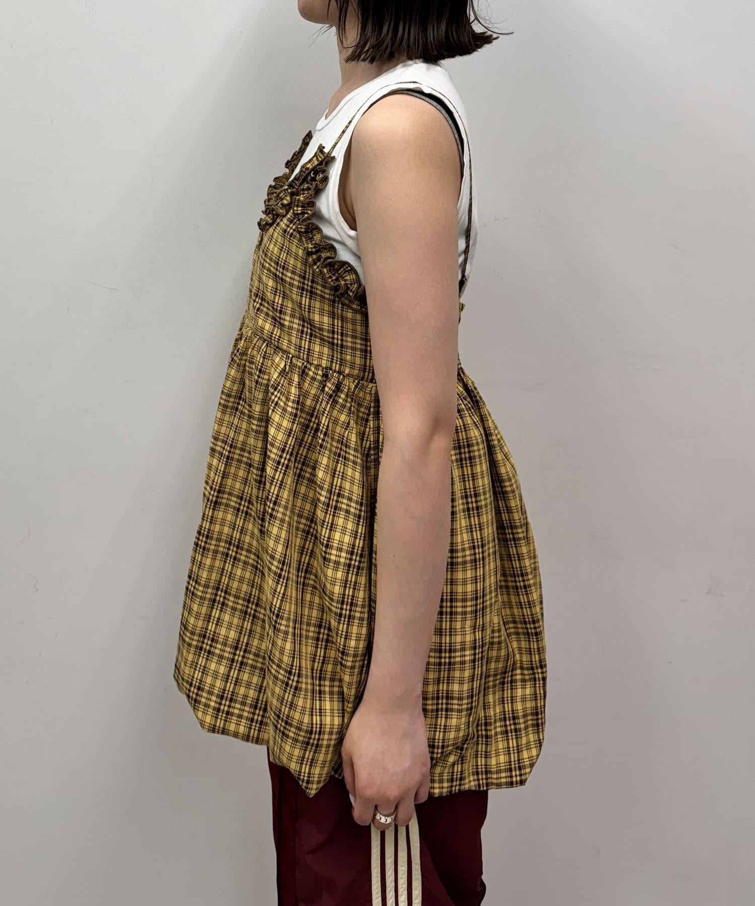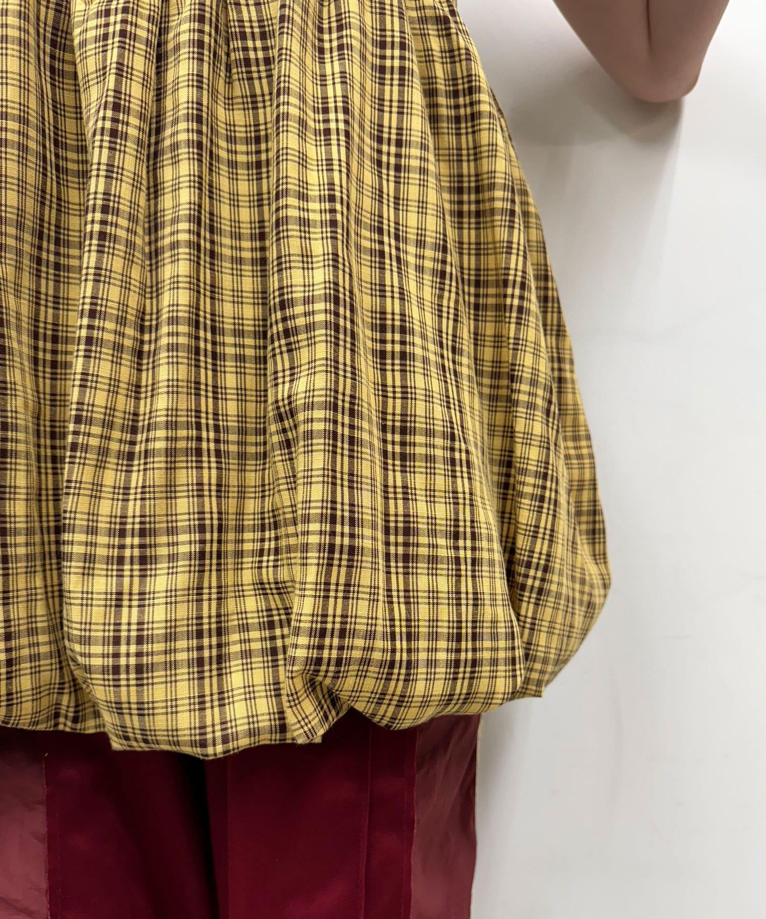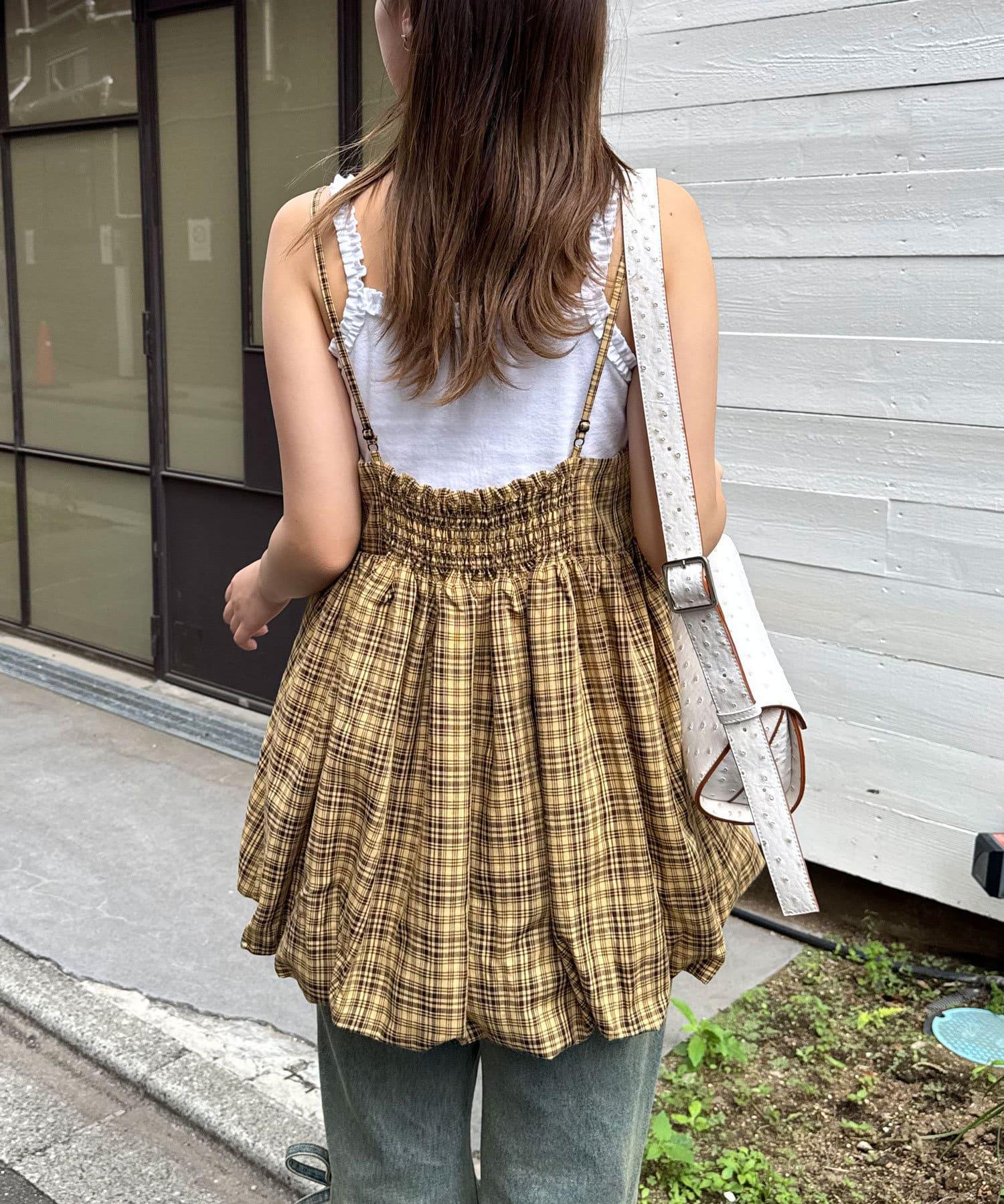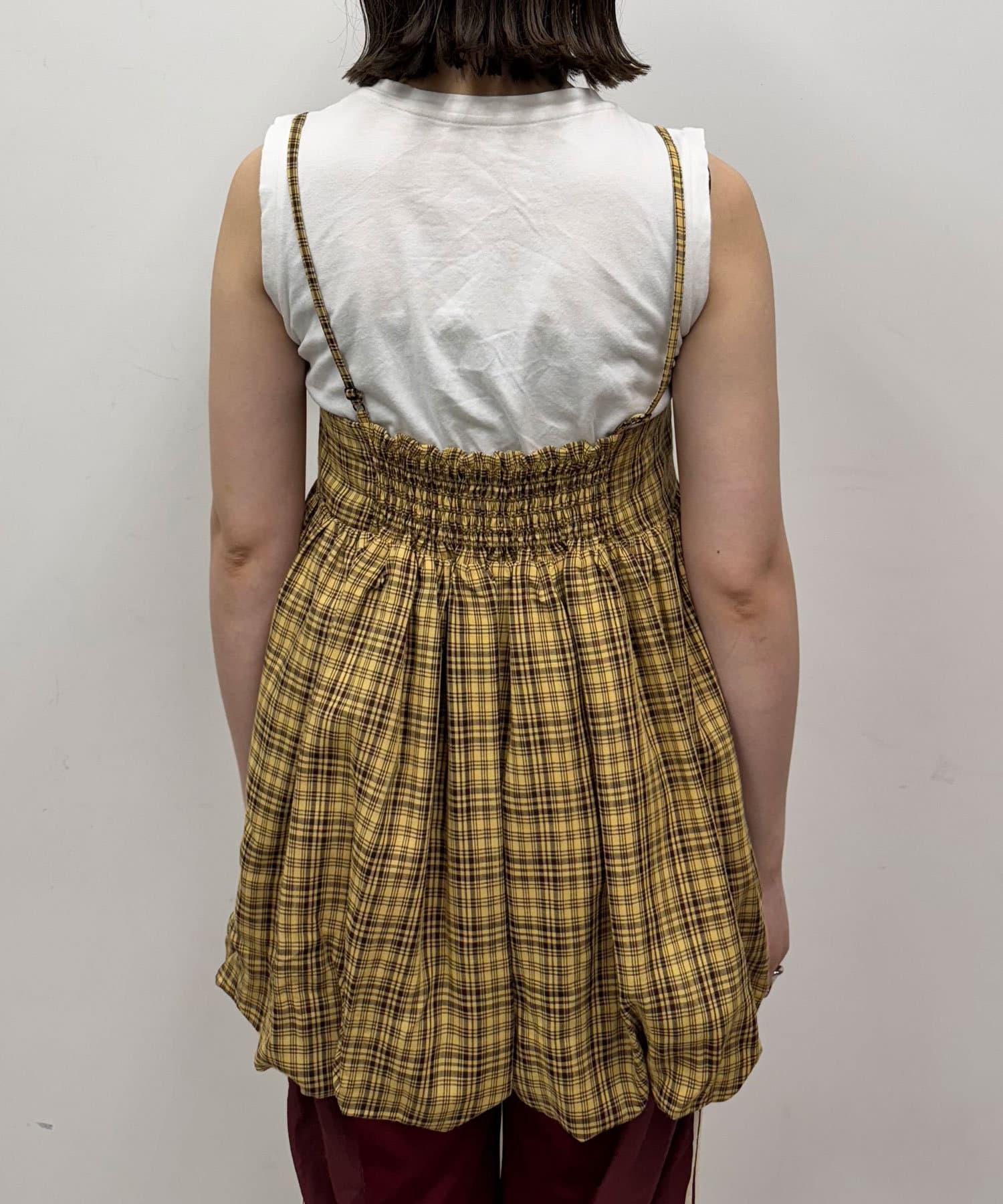 氣球吊帶半身裙,帶有可愛的復古流蘇格紋圖案。