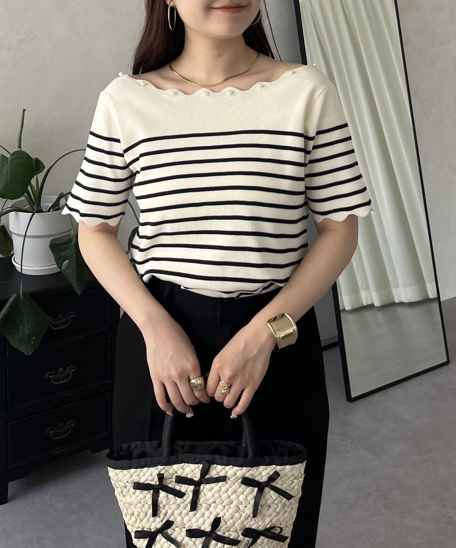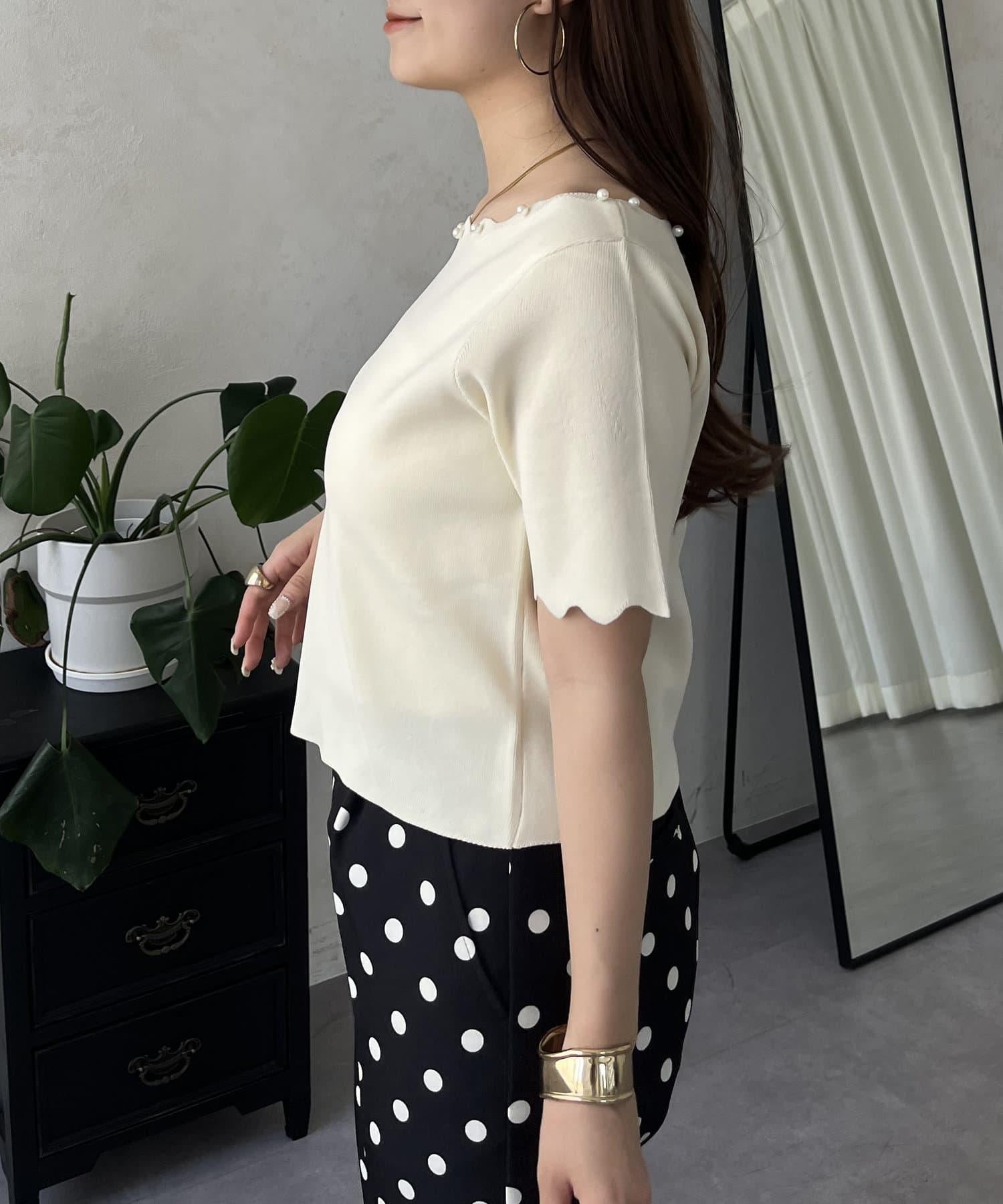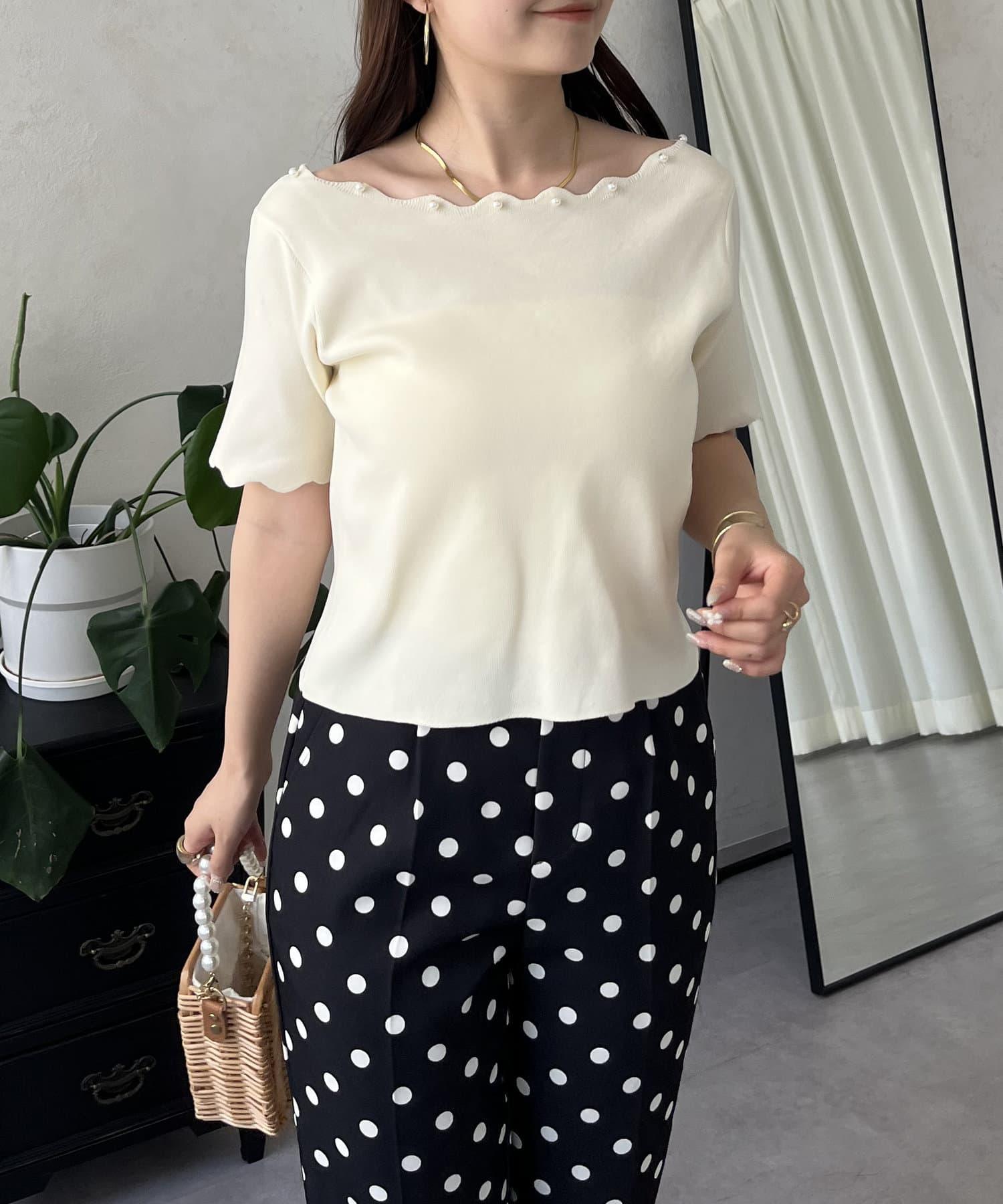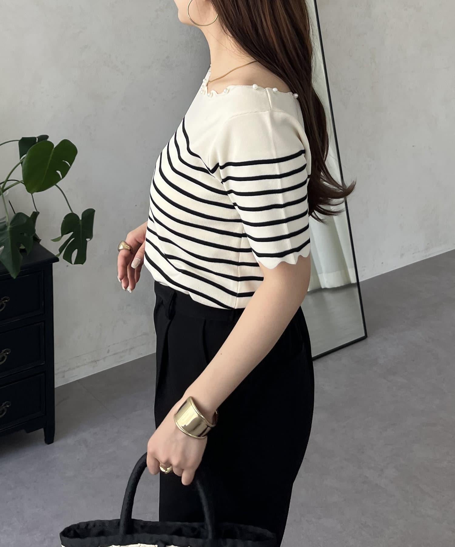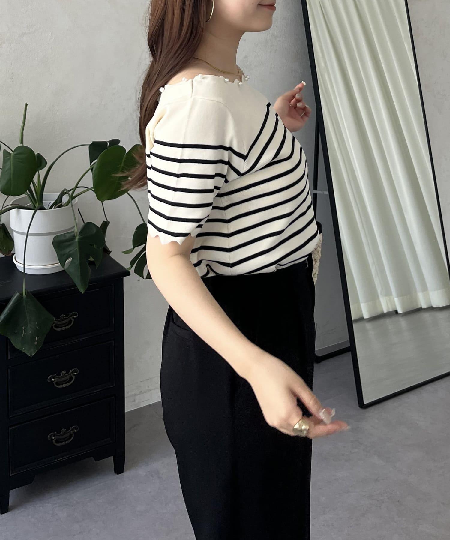 荷葉邊珍珠船領針織上衣