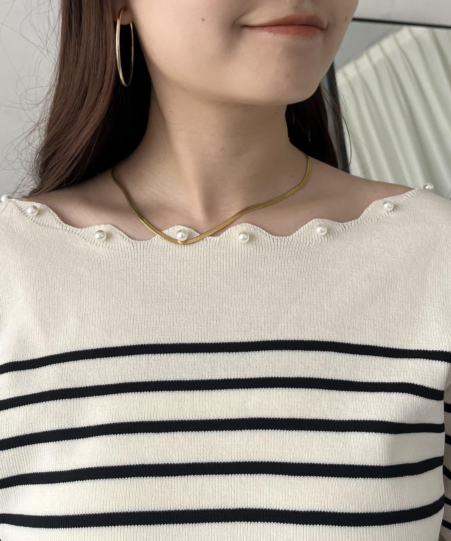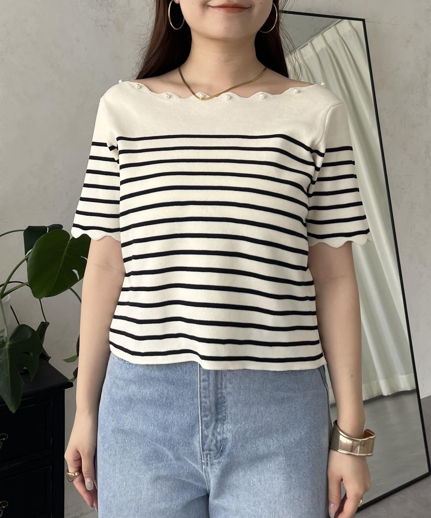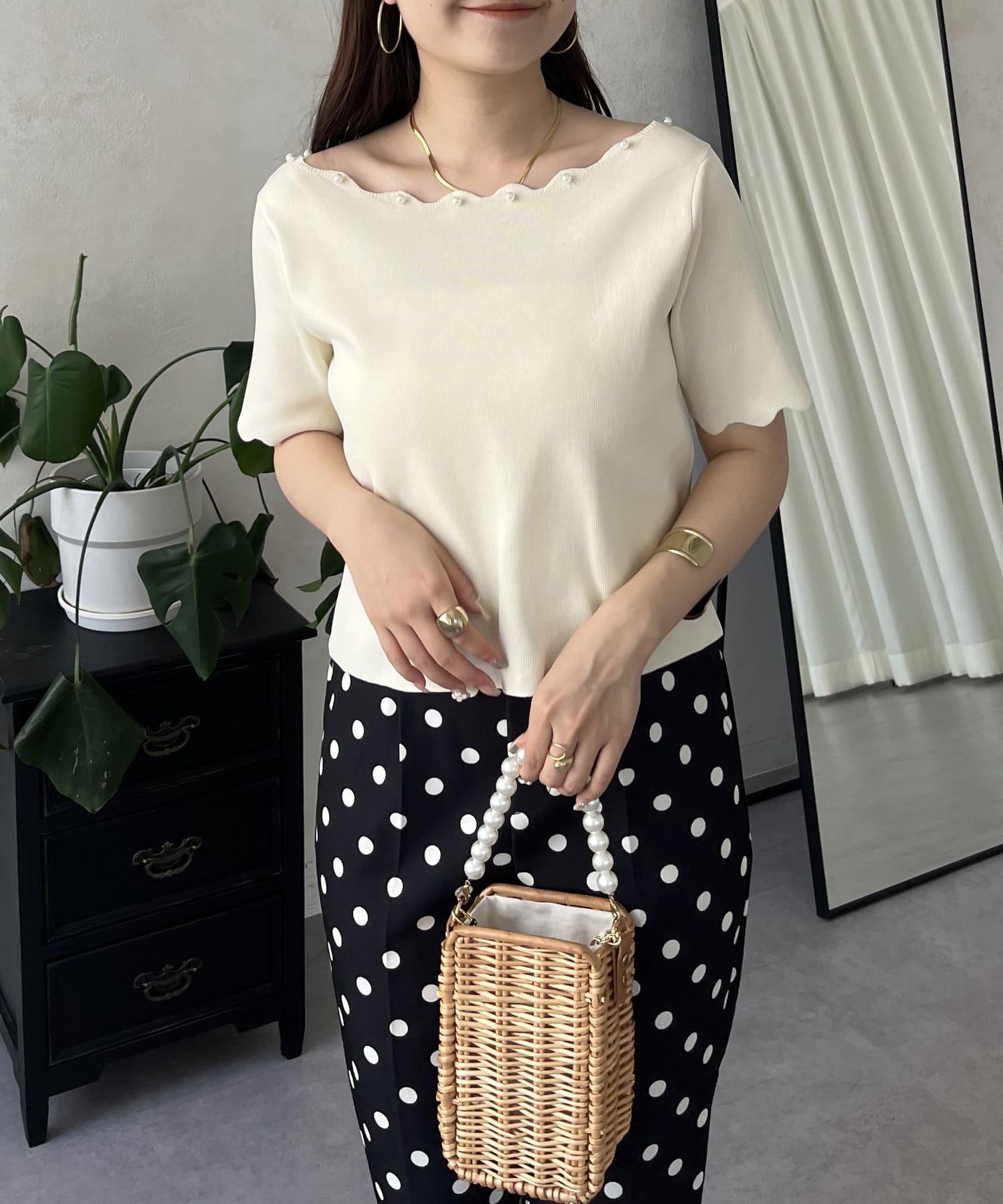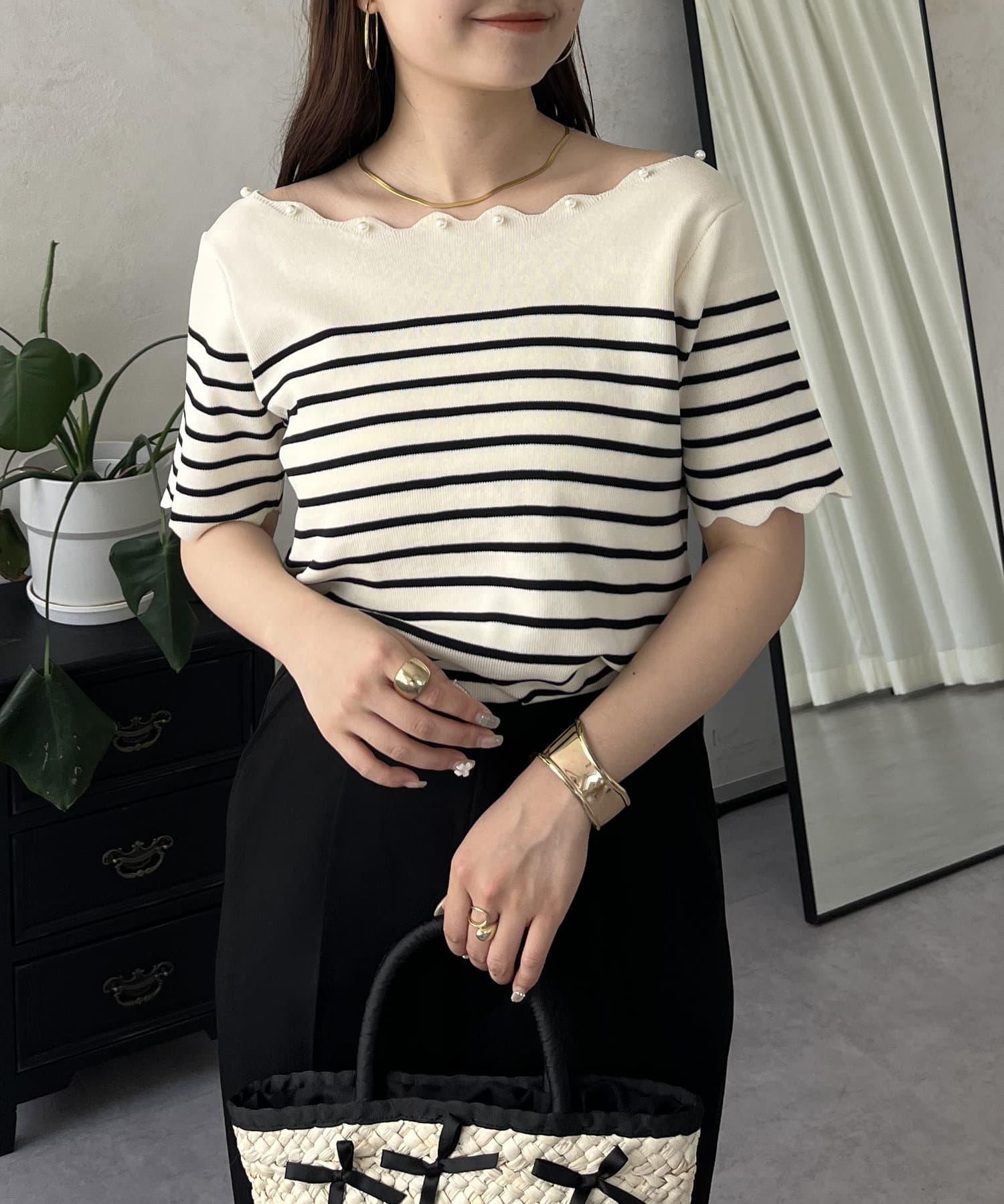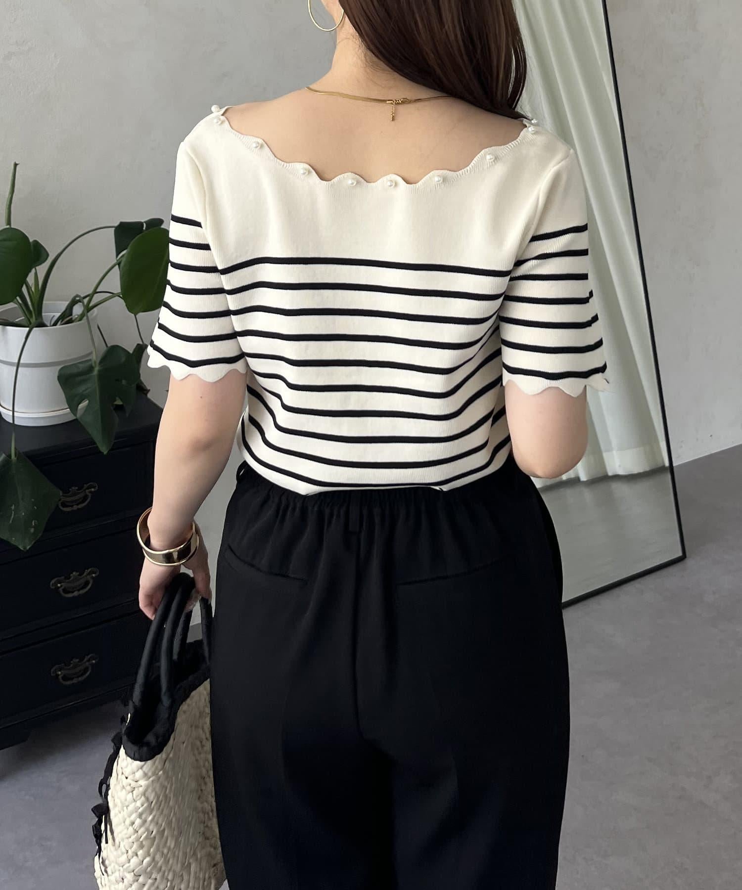 荷葉邊珍珠船領針織上衣