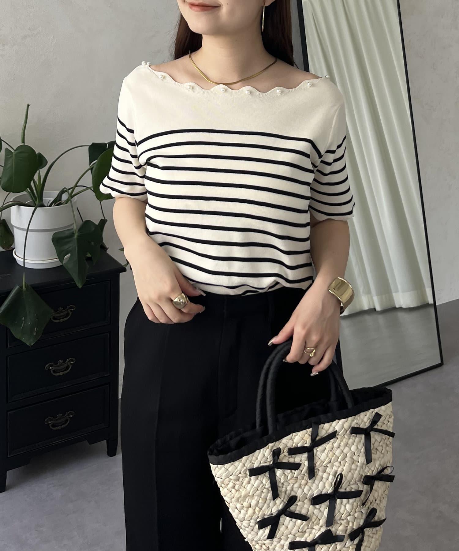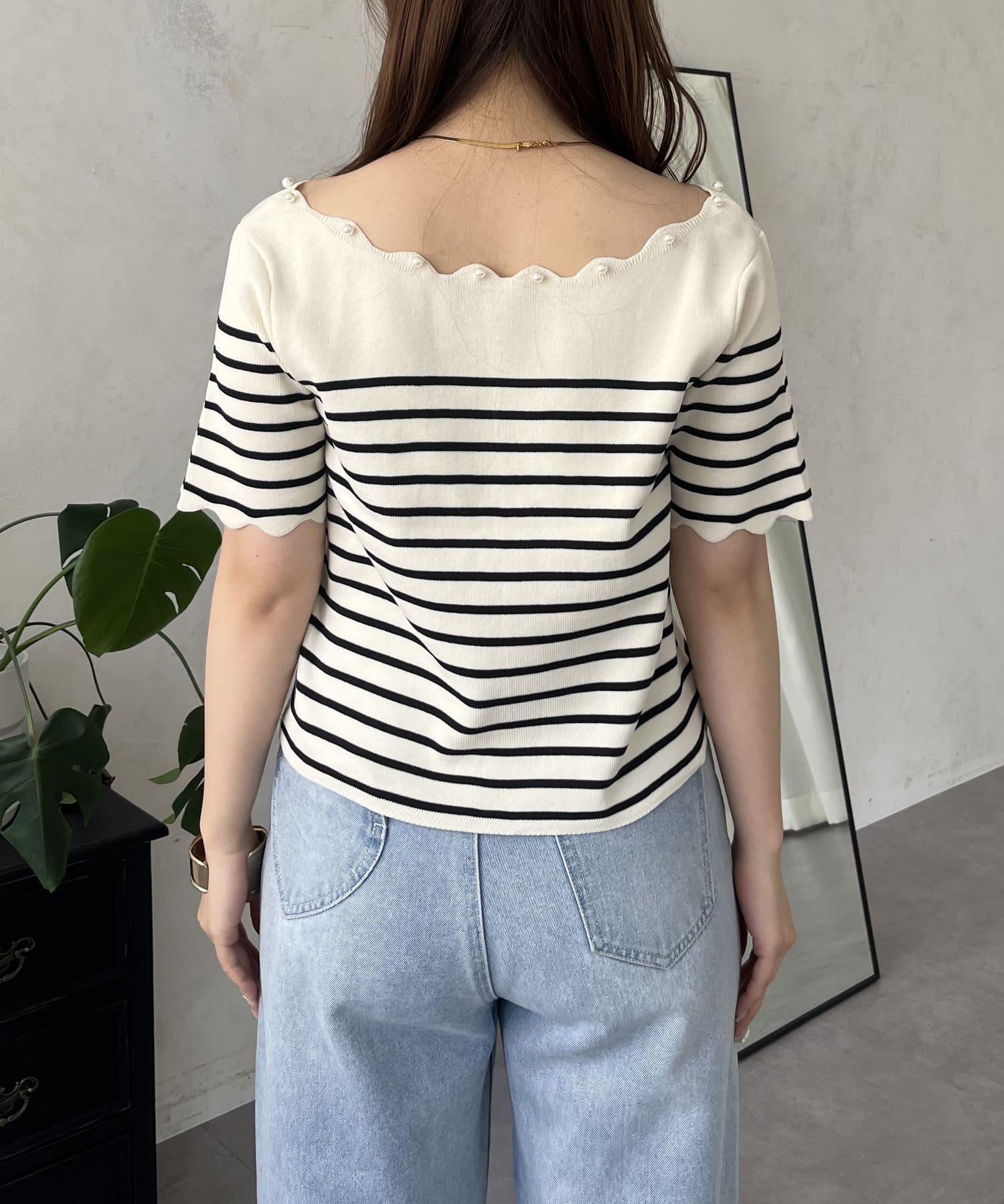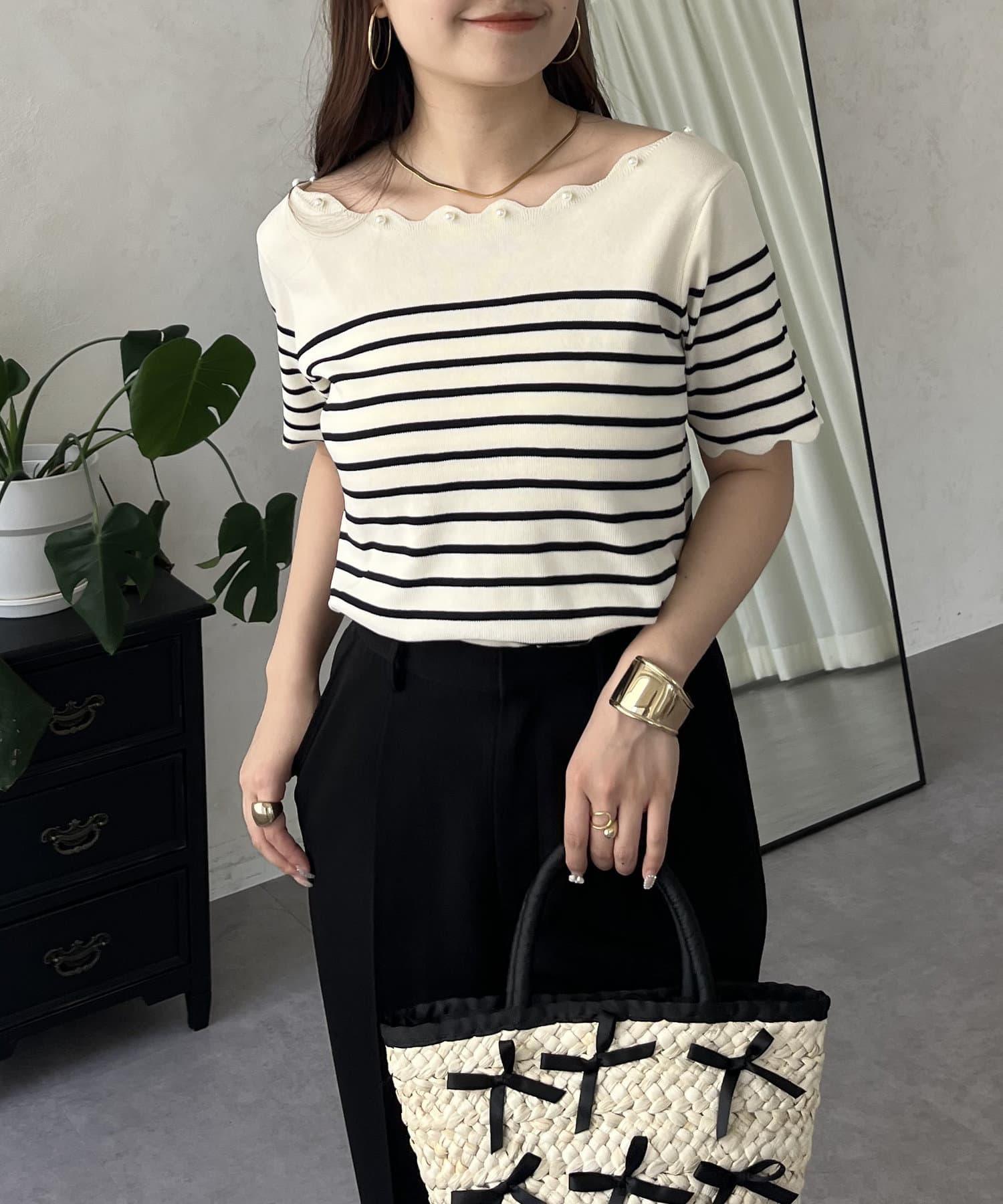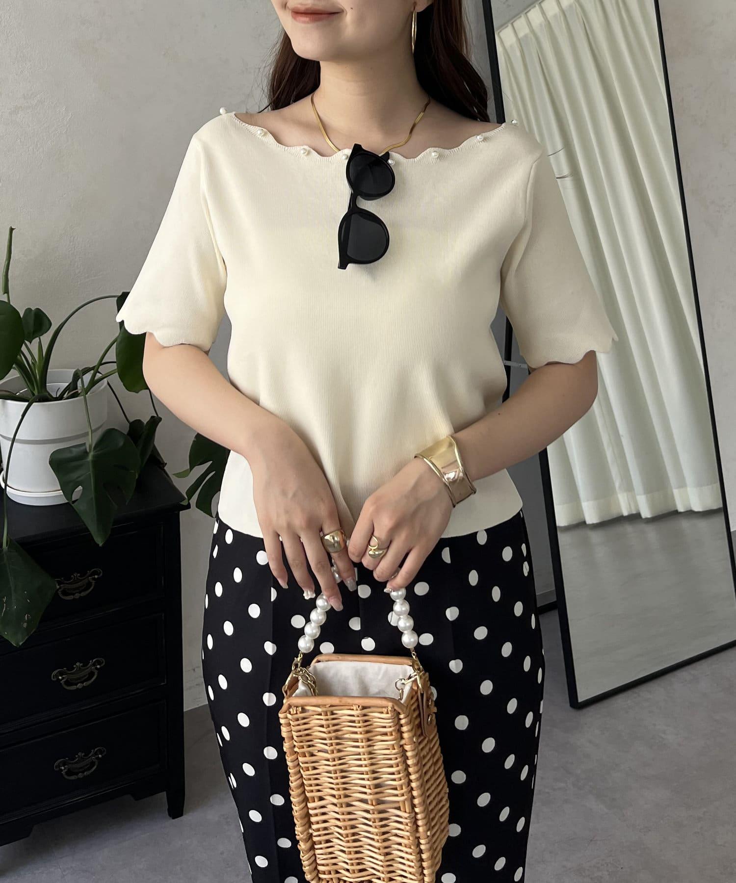 荷葉邊珍珠船領針織上衣
