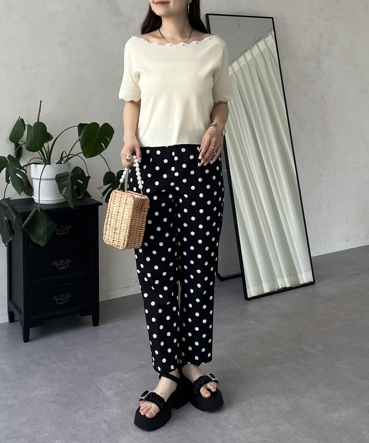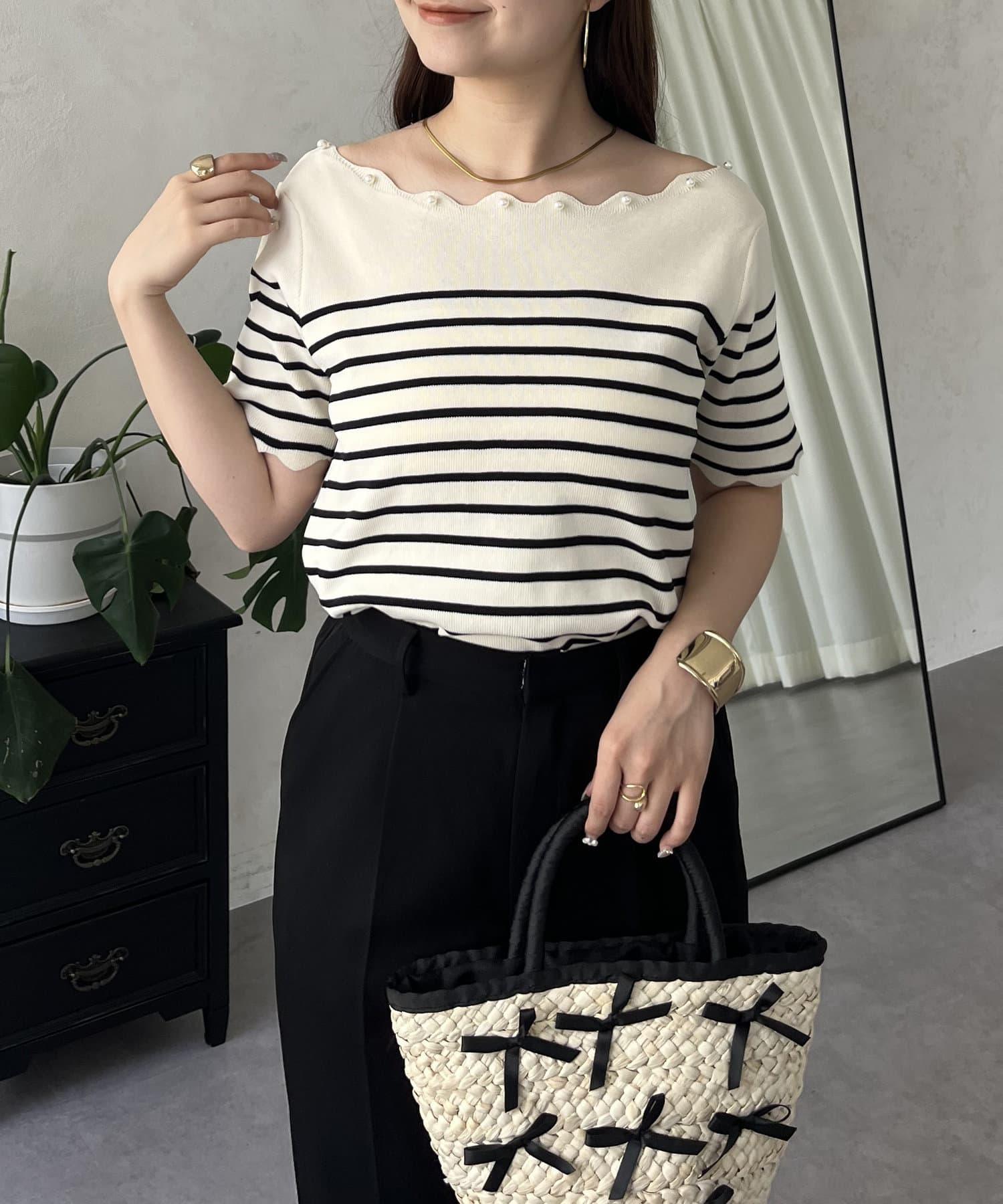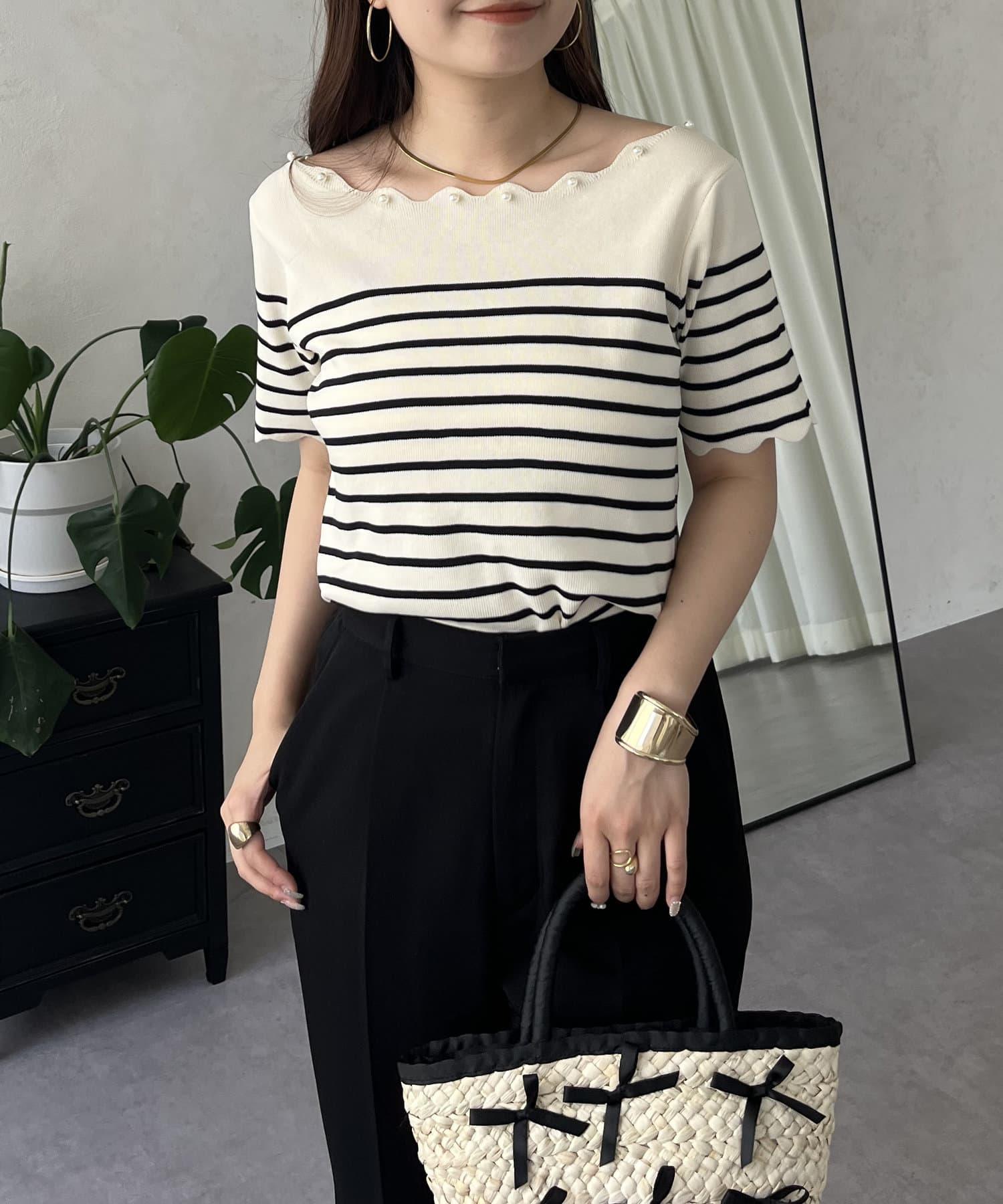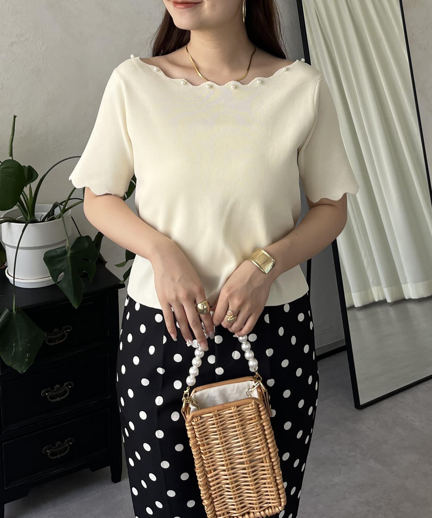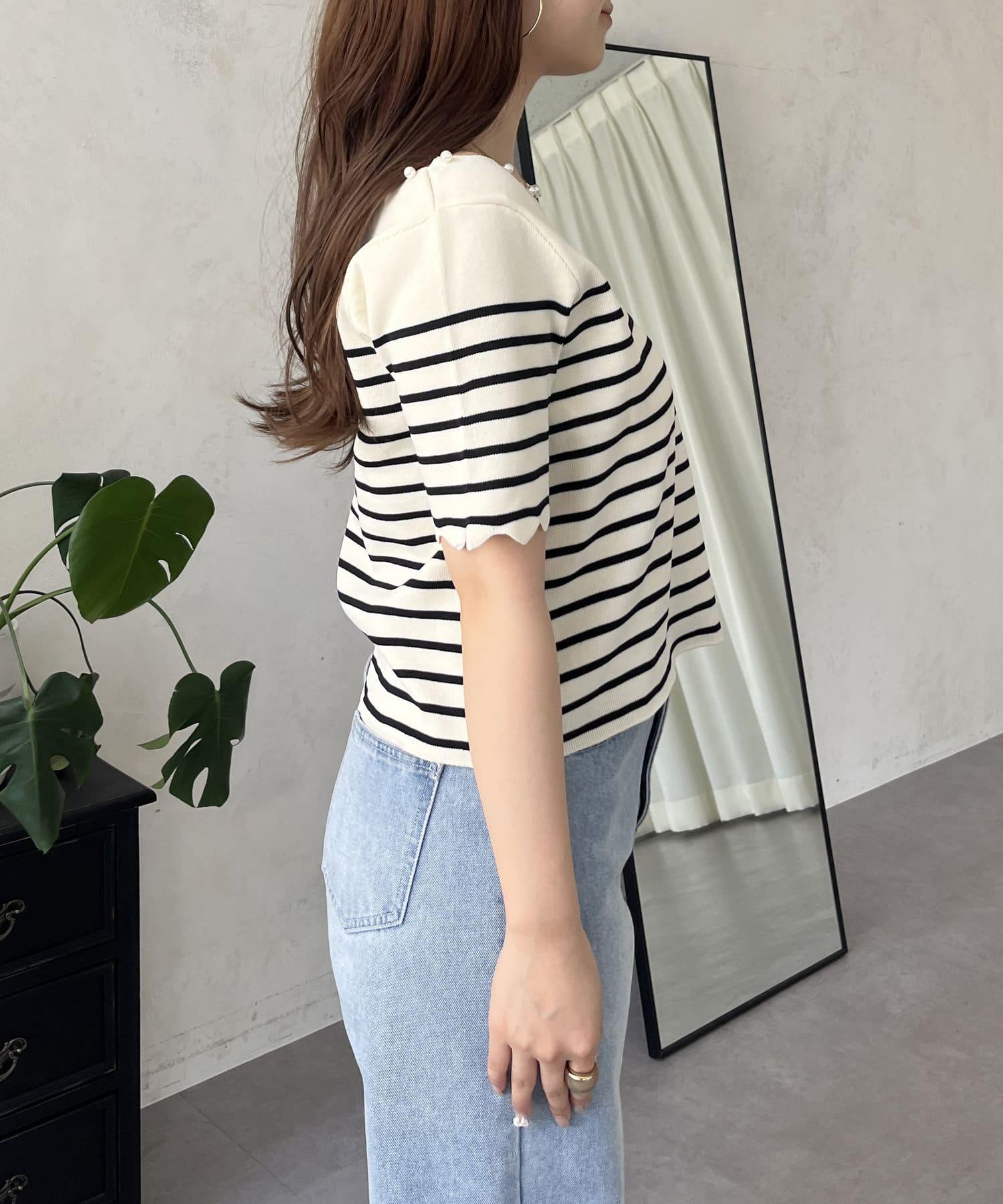 荷葉邊珍珠船領針織上衣