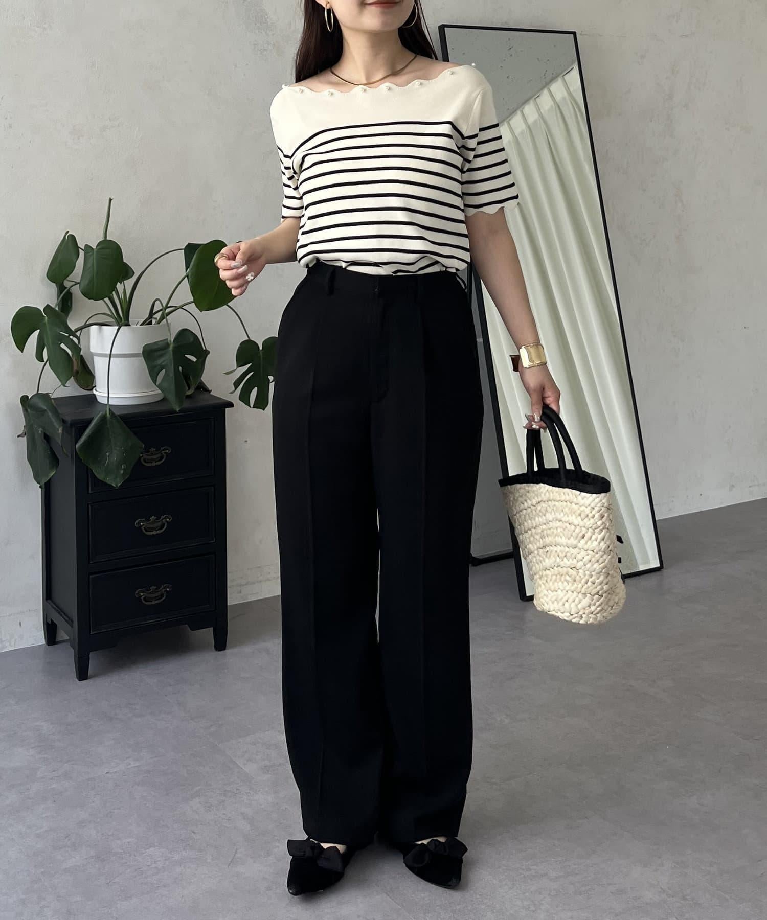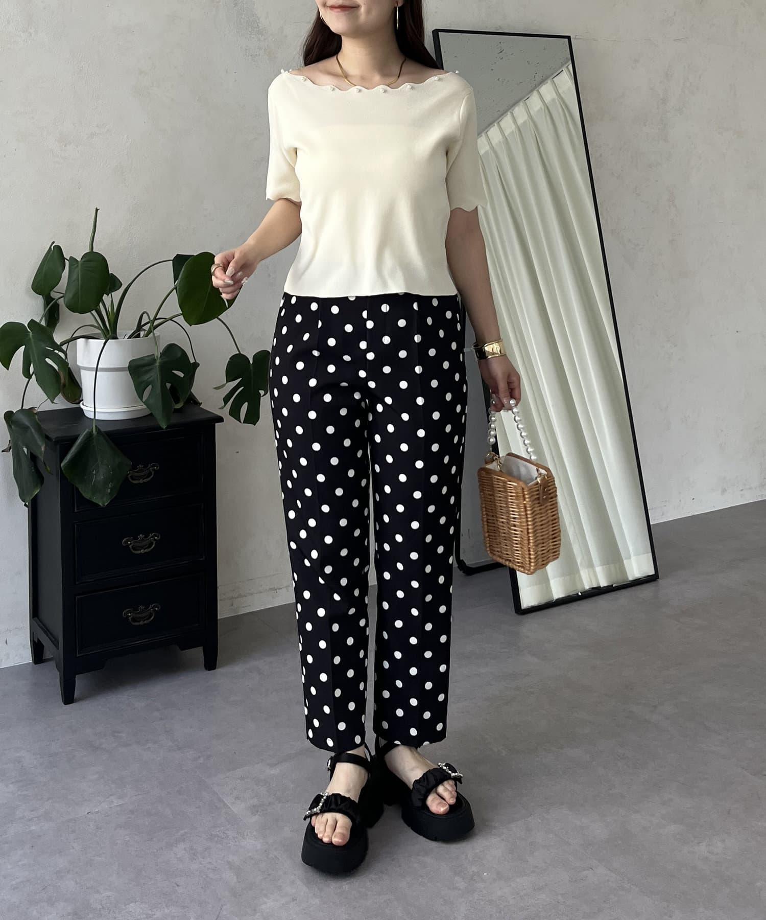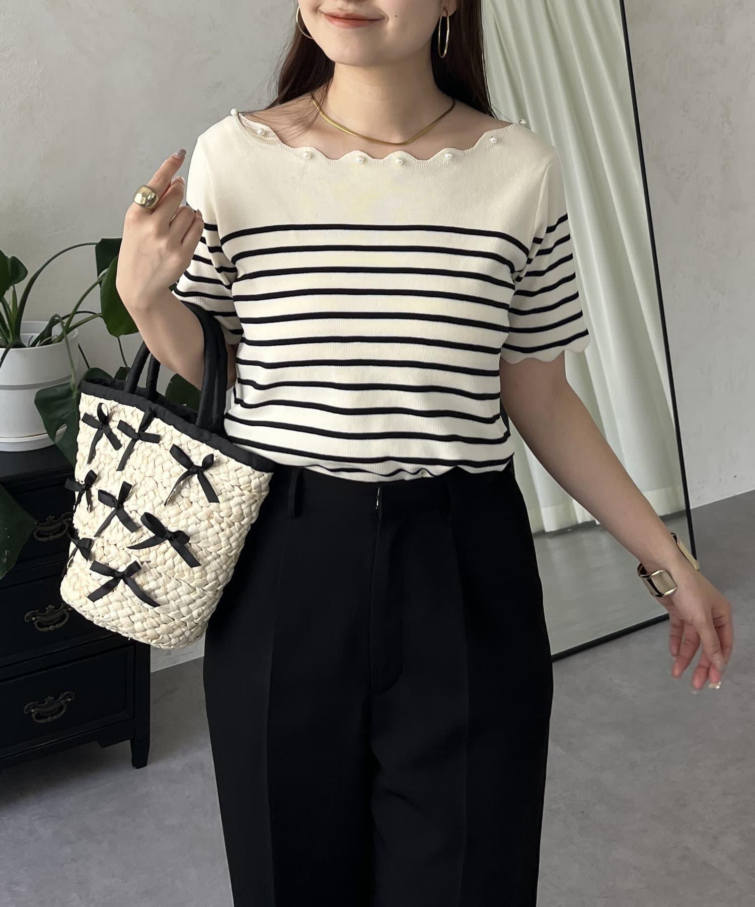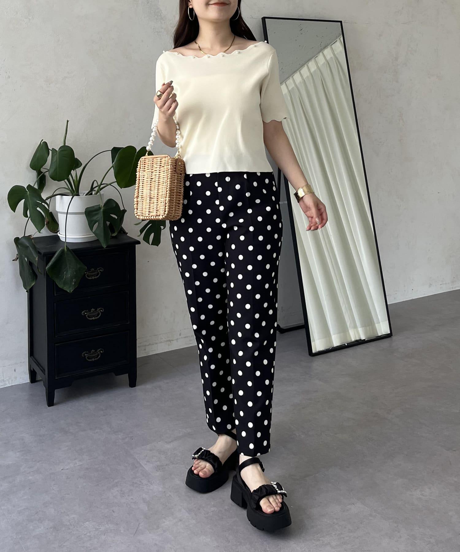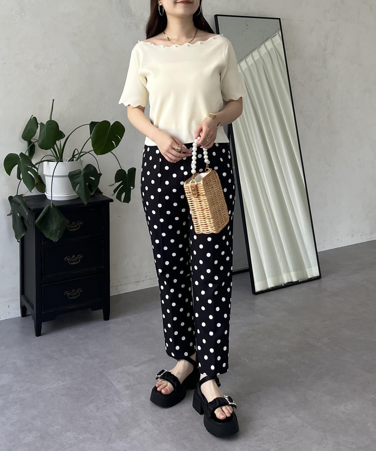 荷葉邊珍珠船領針織上衣