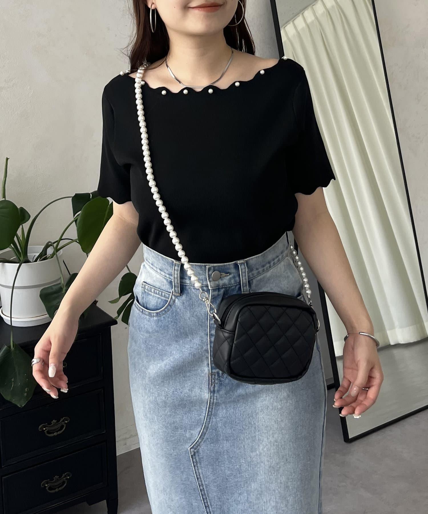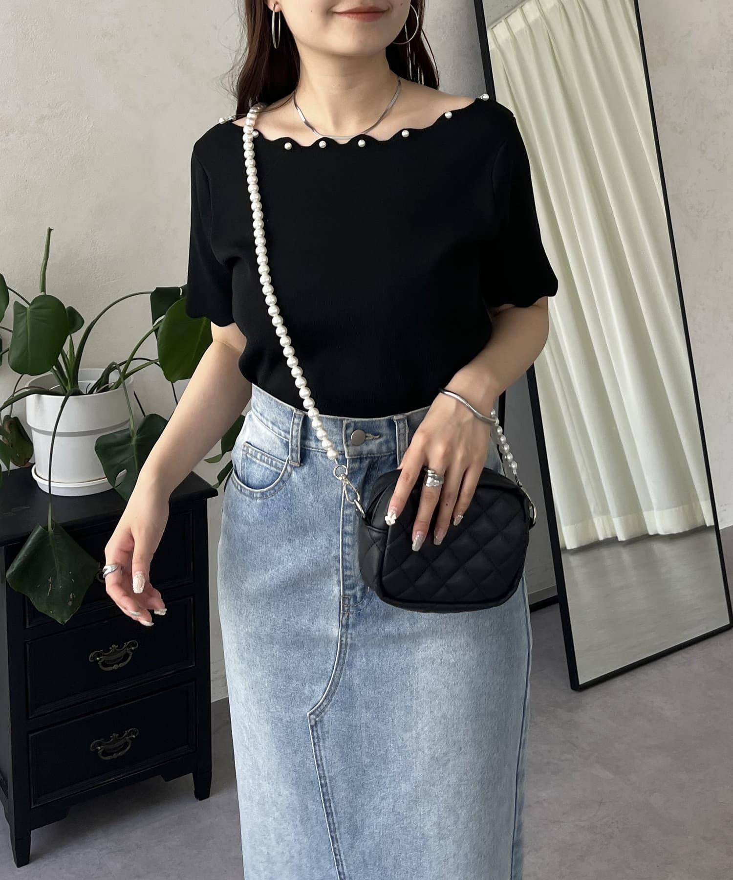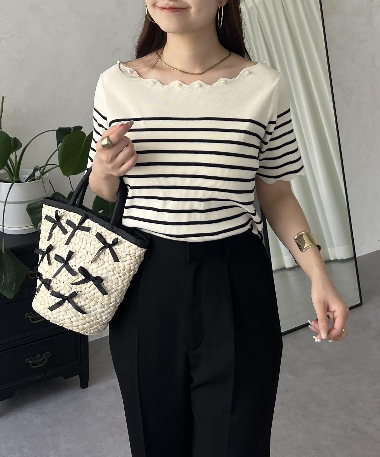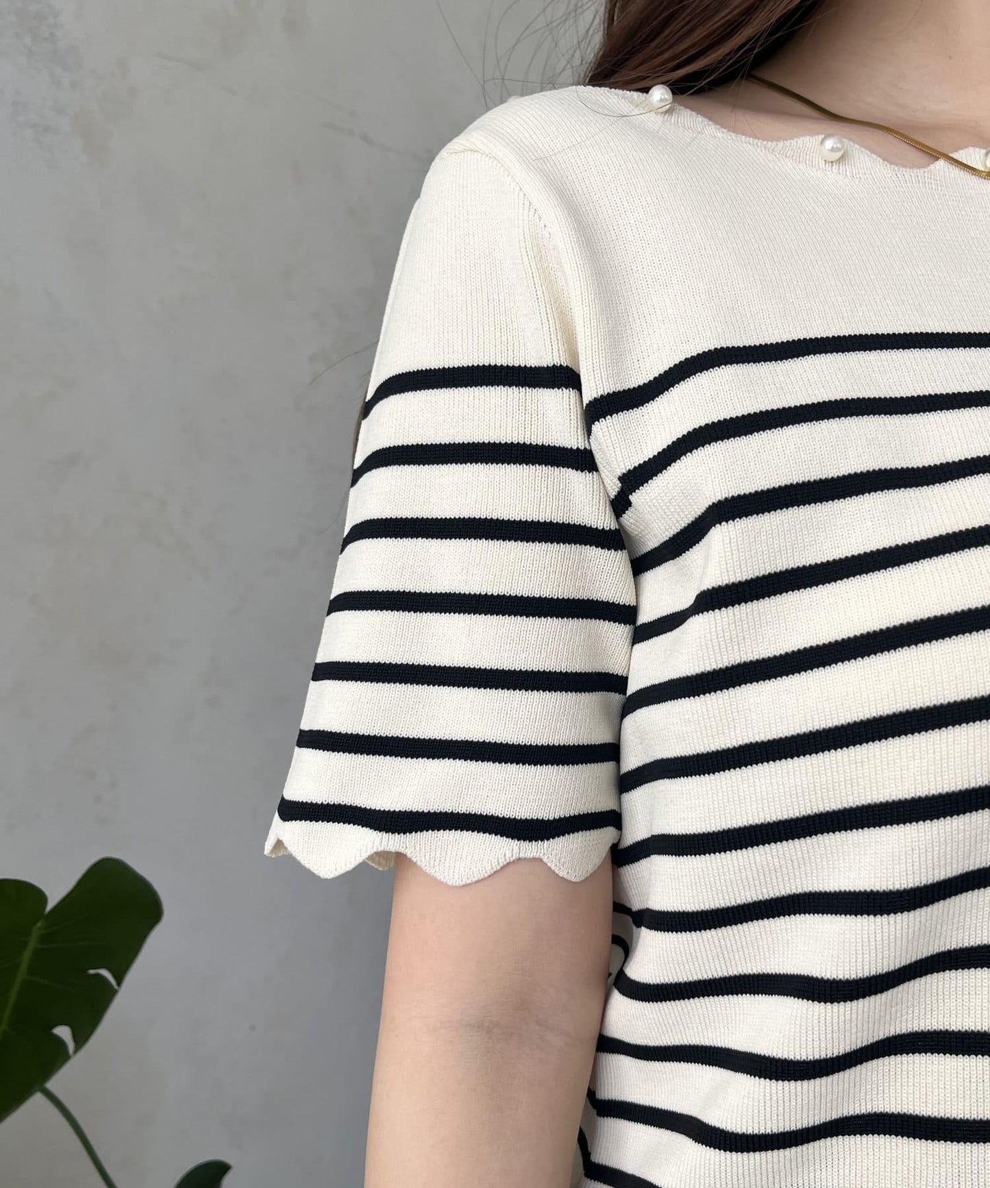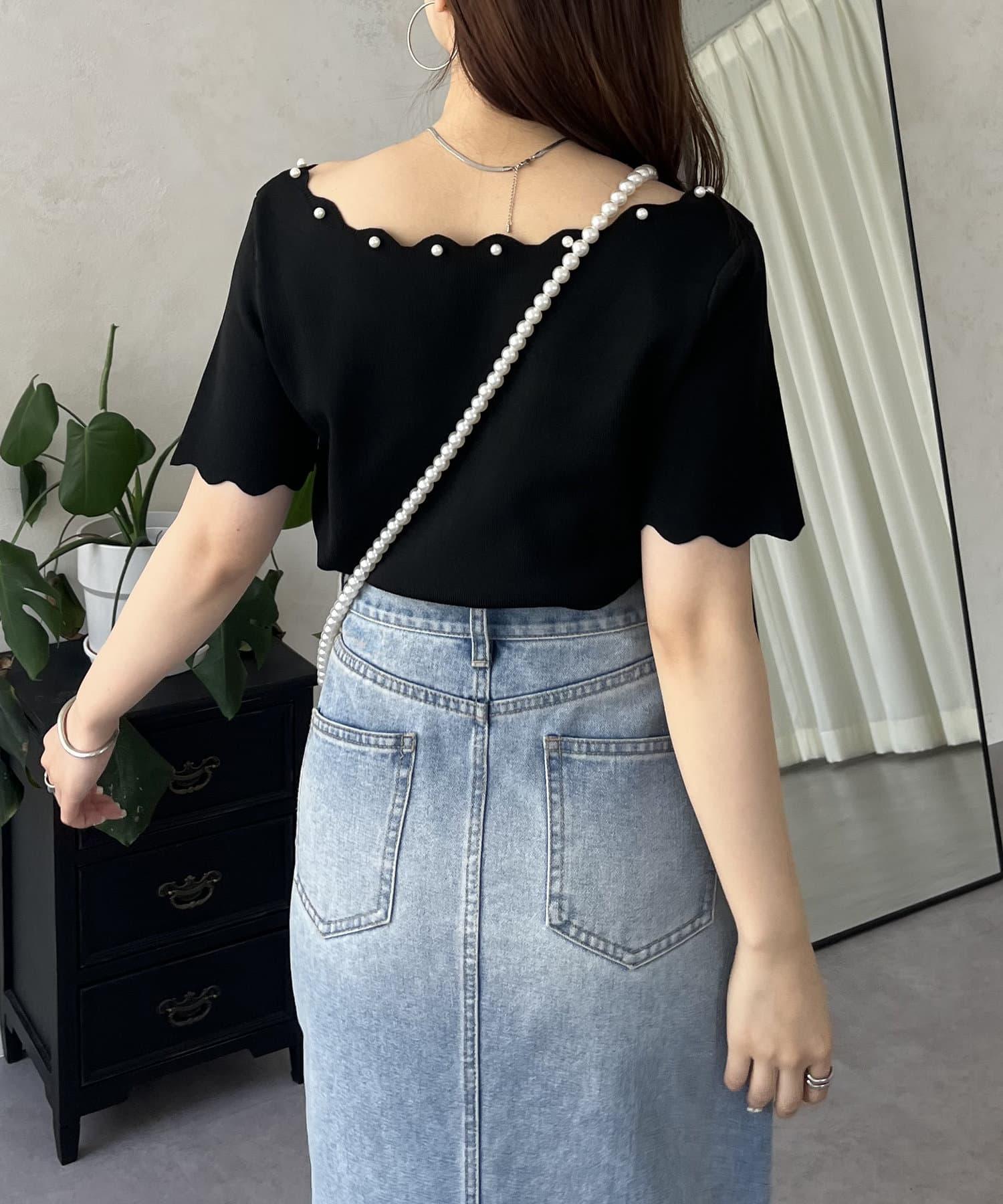 荷葉邊珍珠船領針織上衣