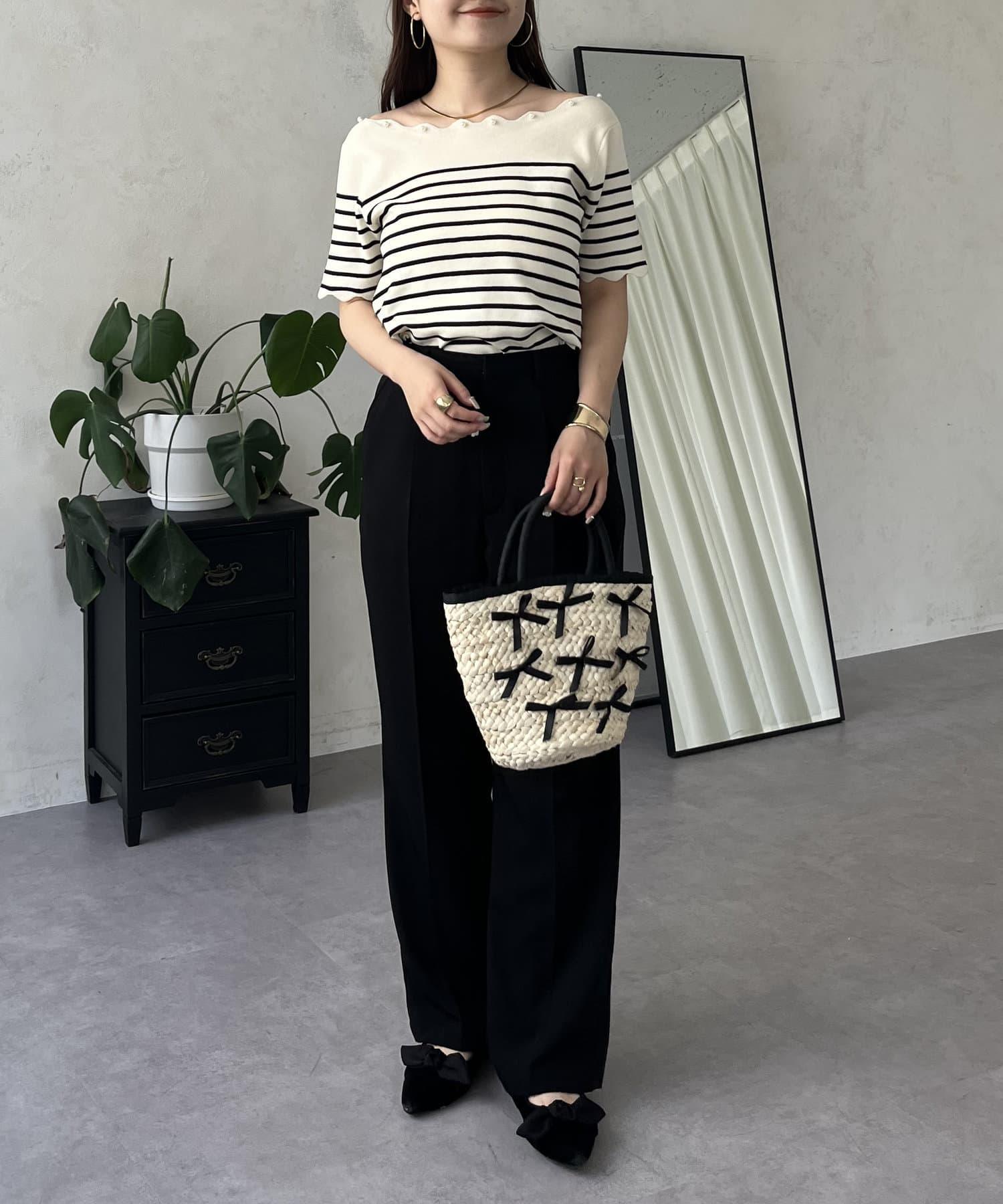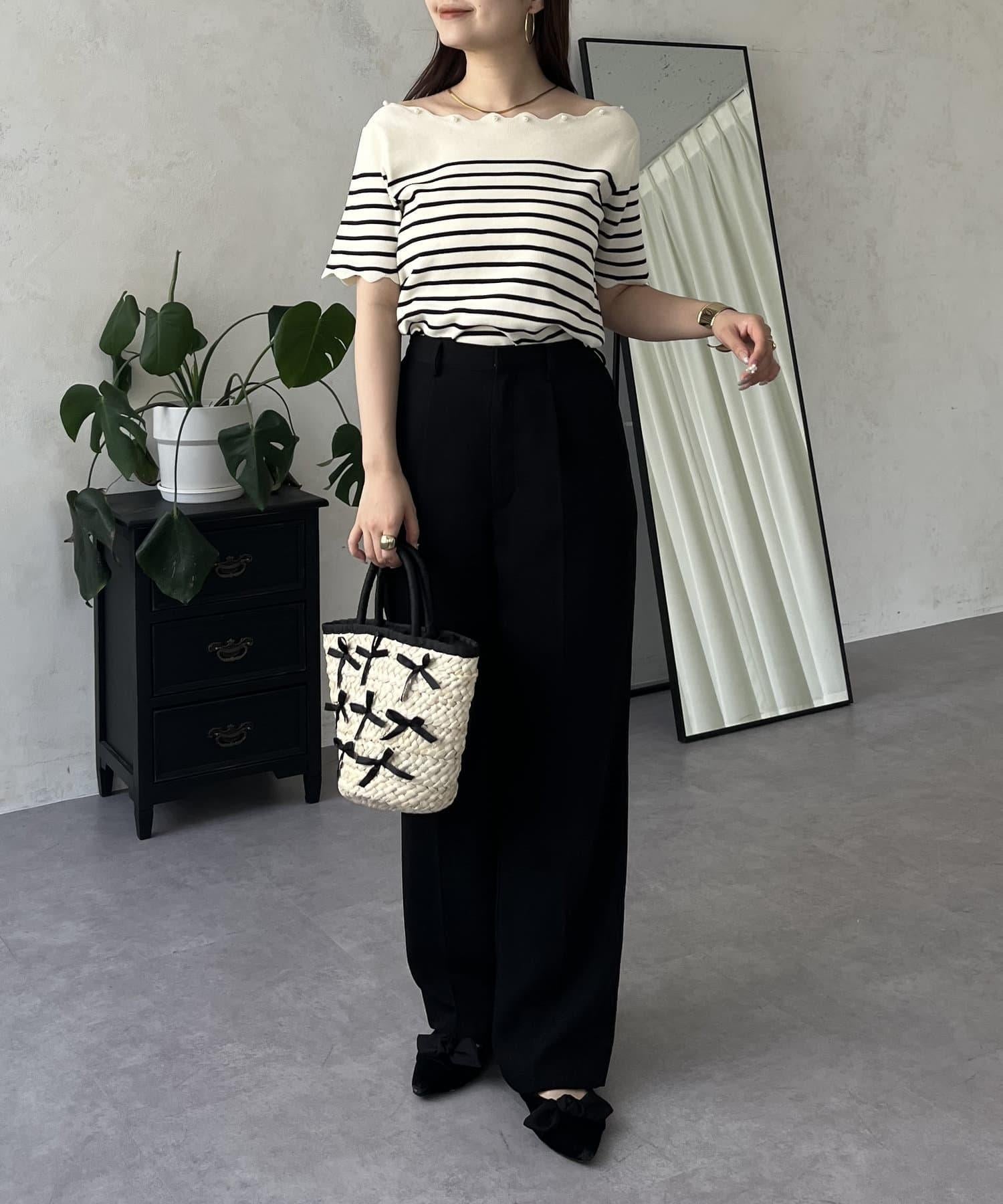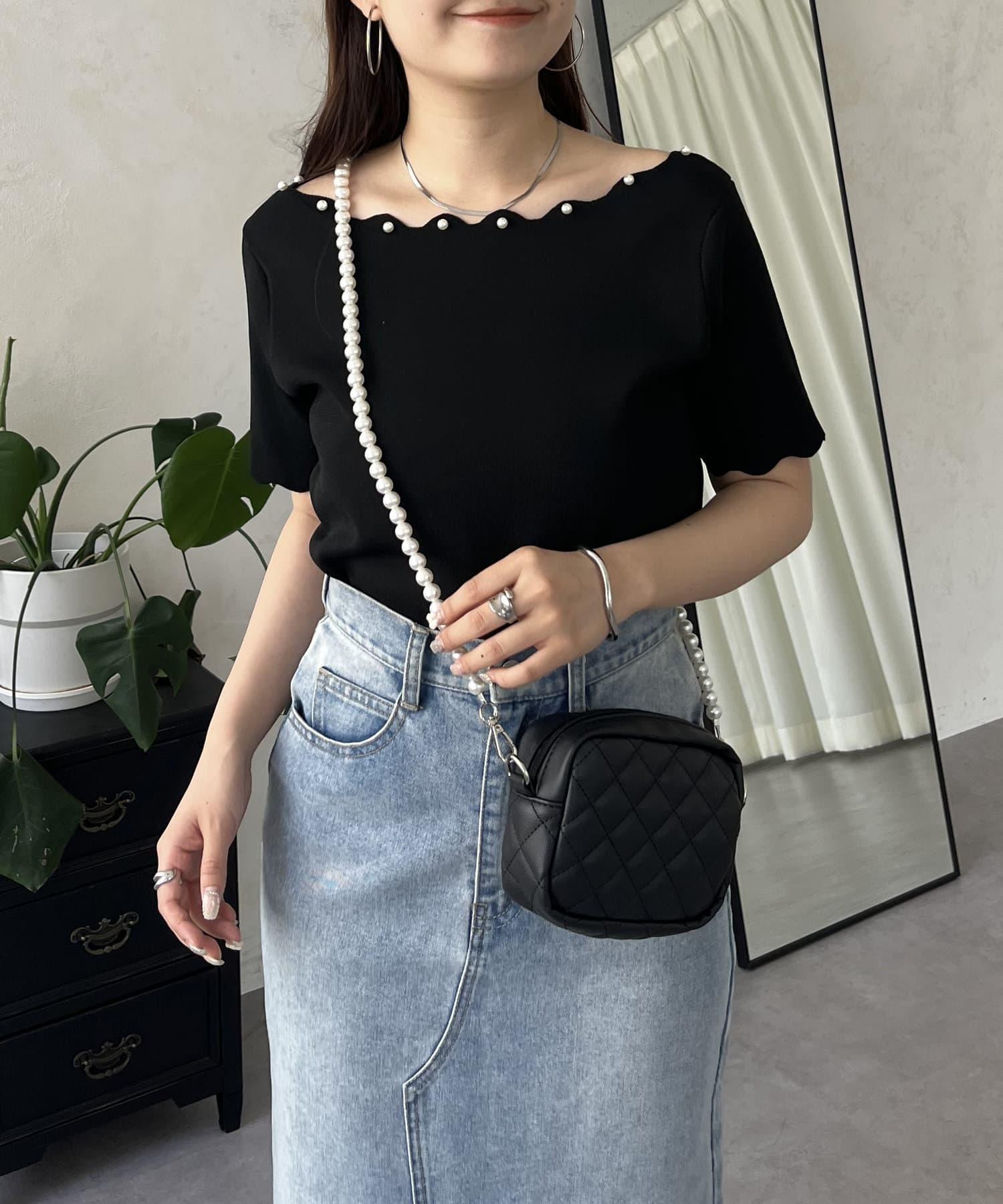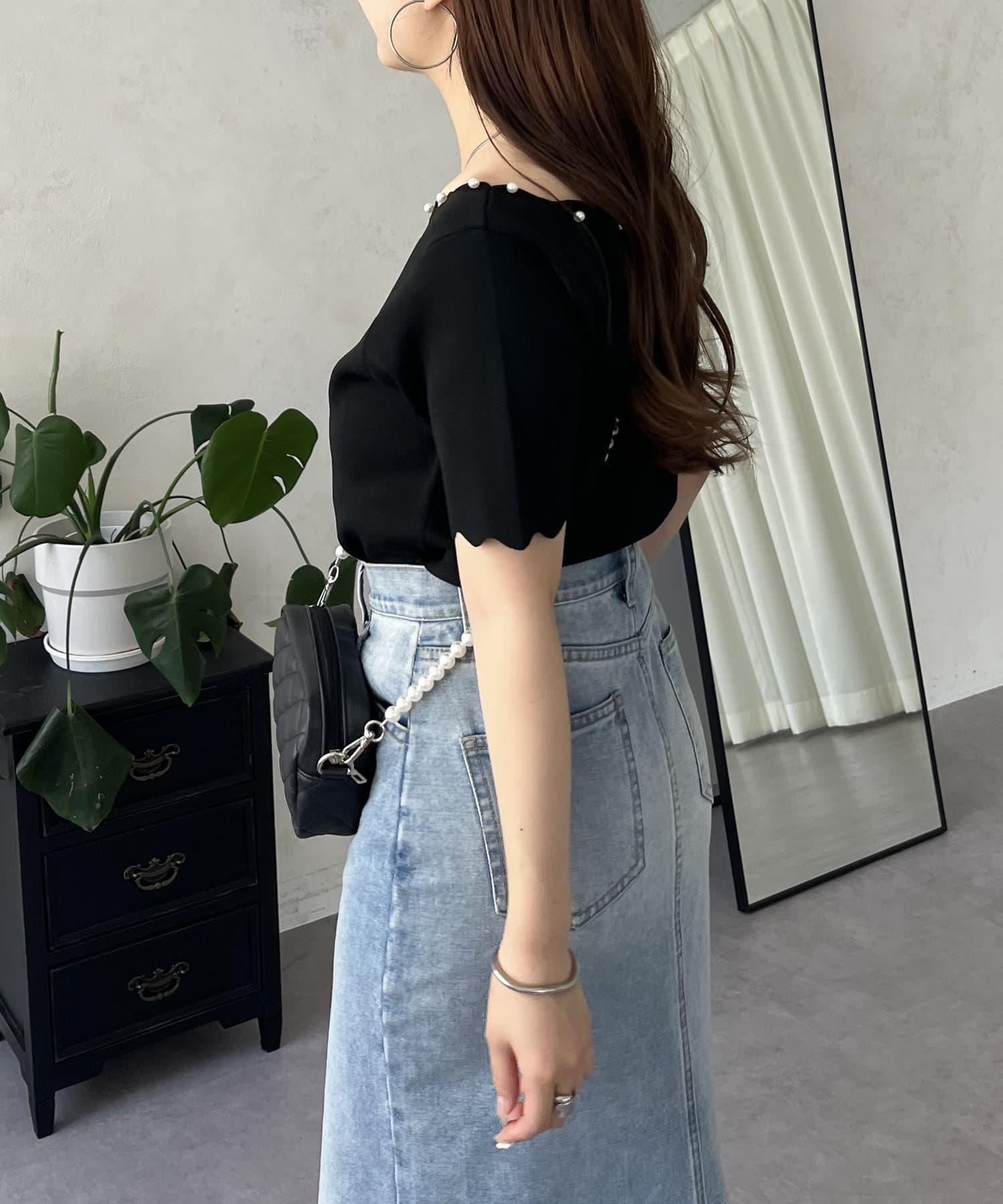 荷葉邊珍珠船領針織上衣