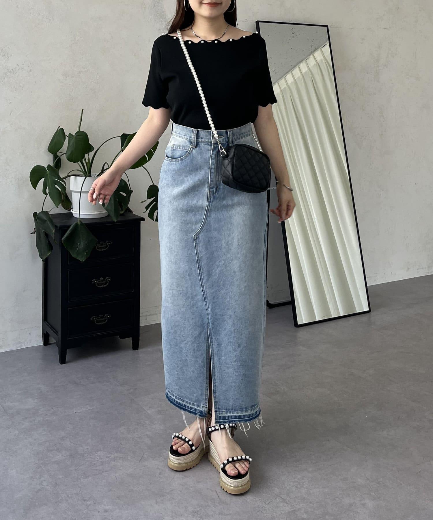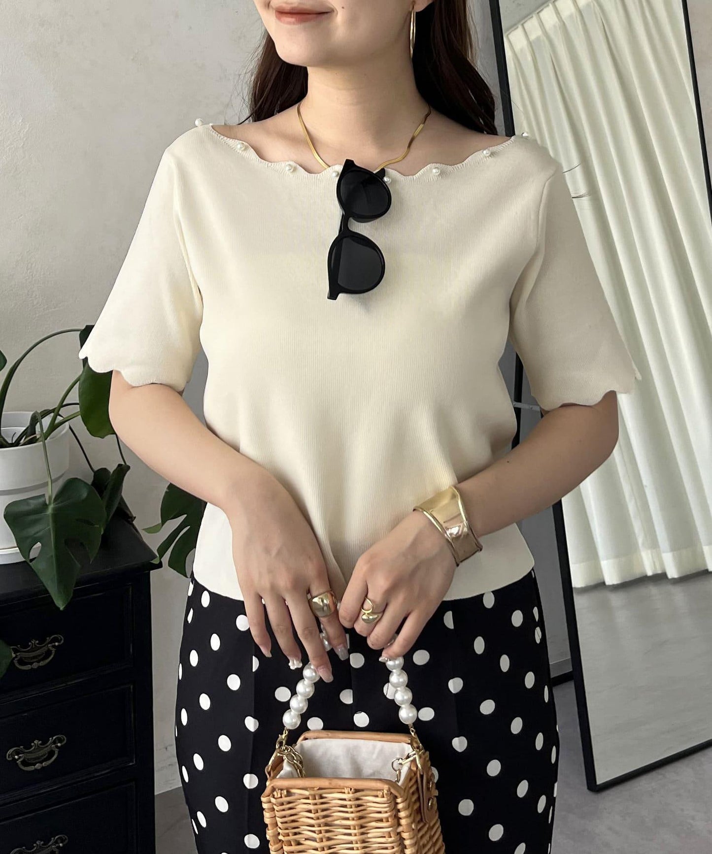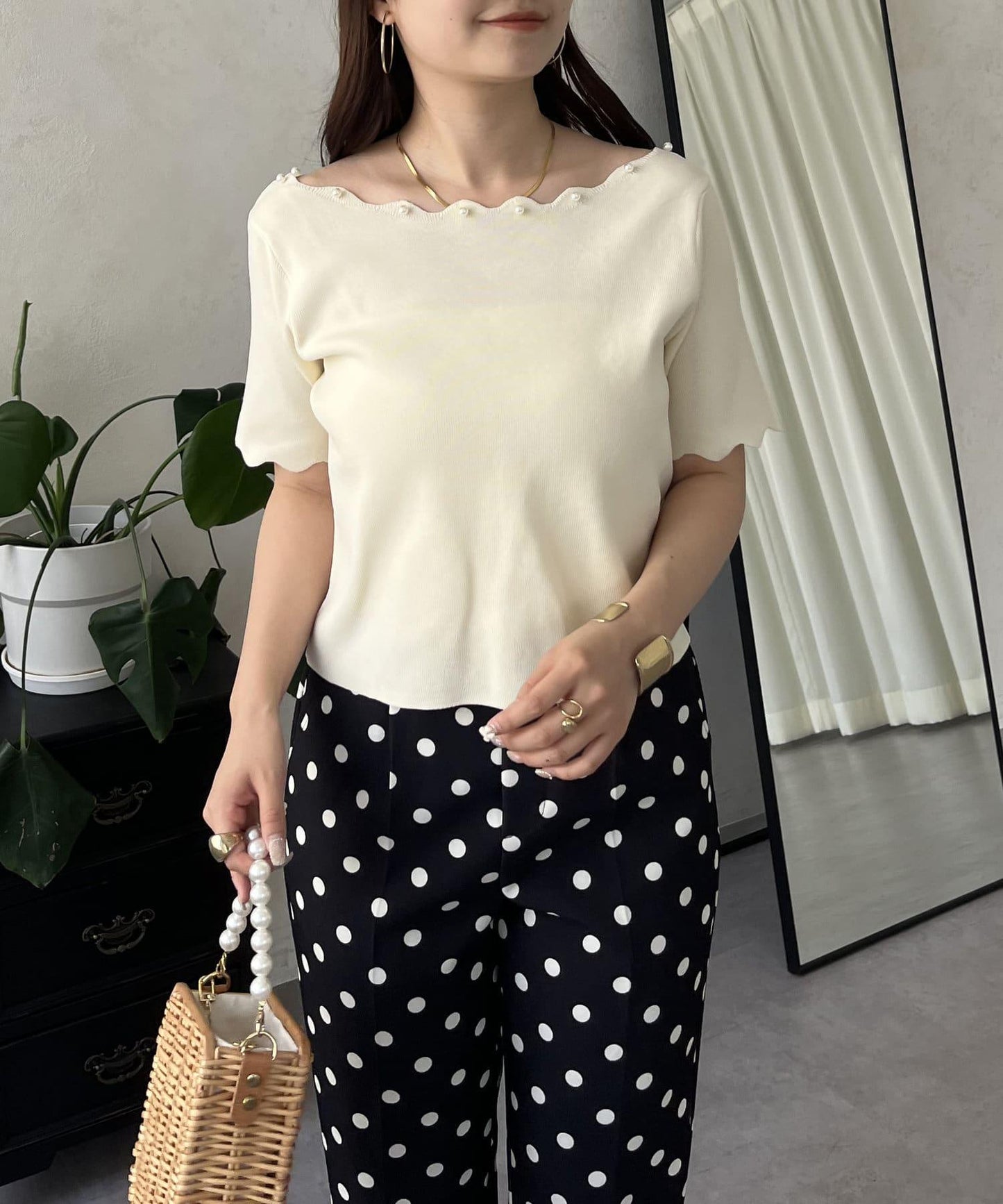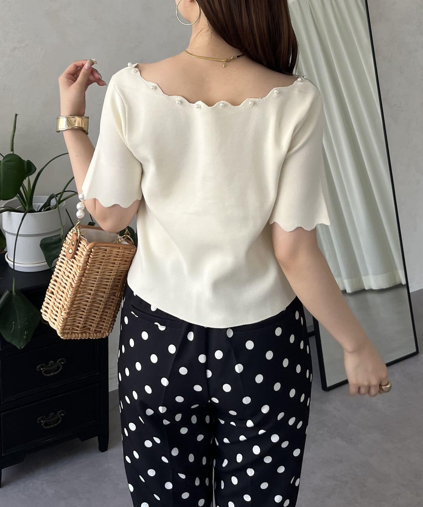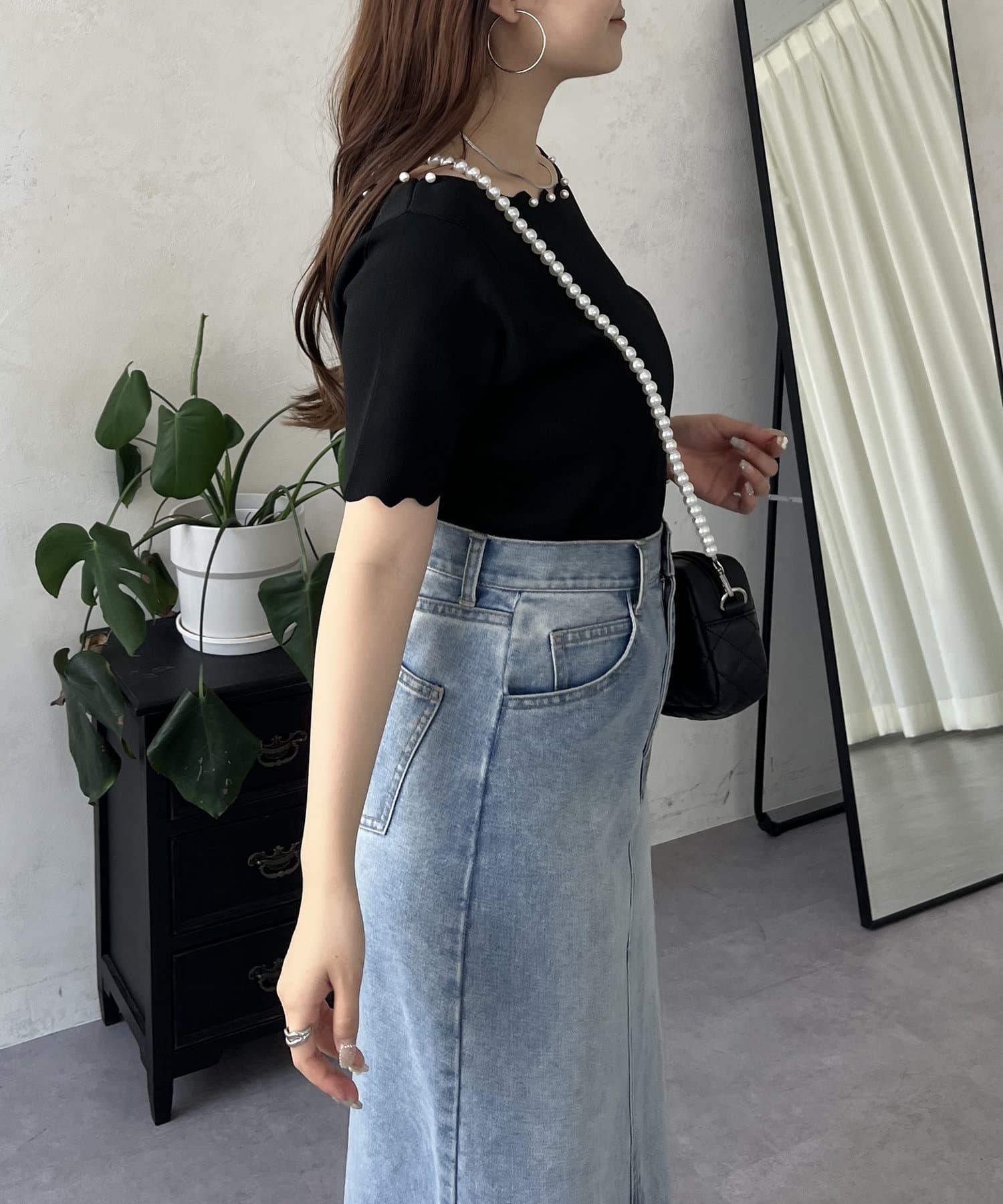 荷葉邊珍珠船領針織上衣