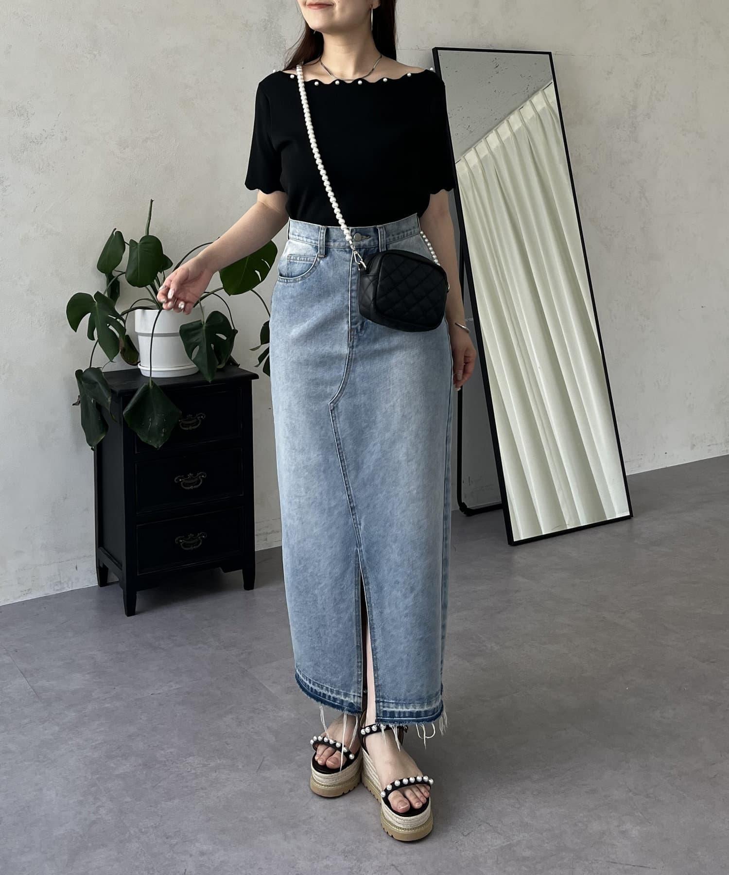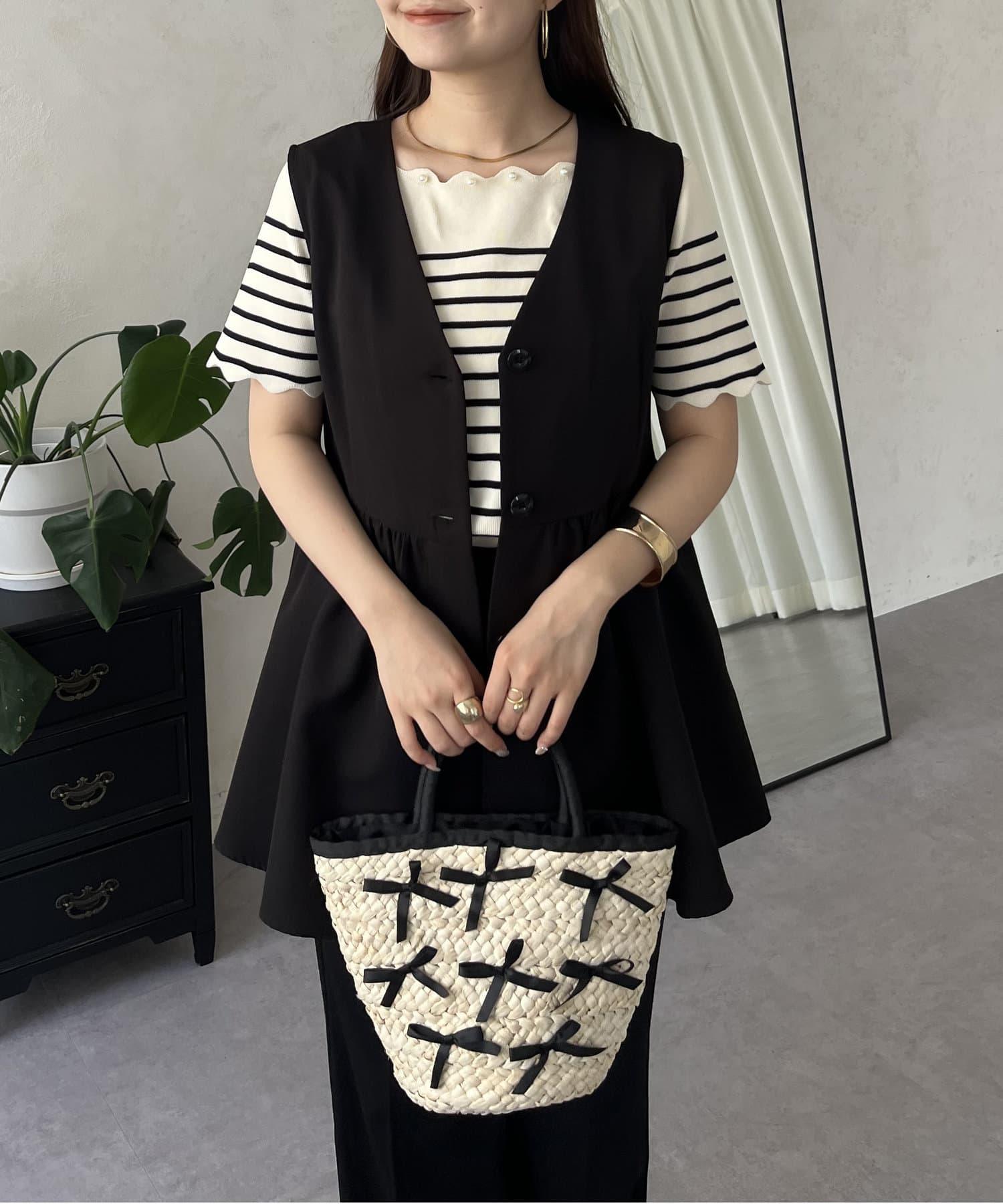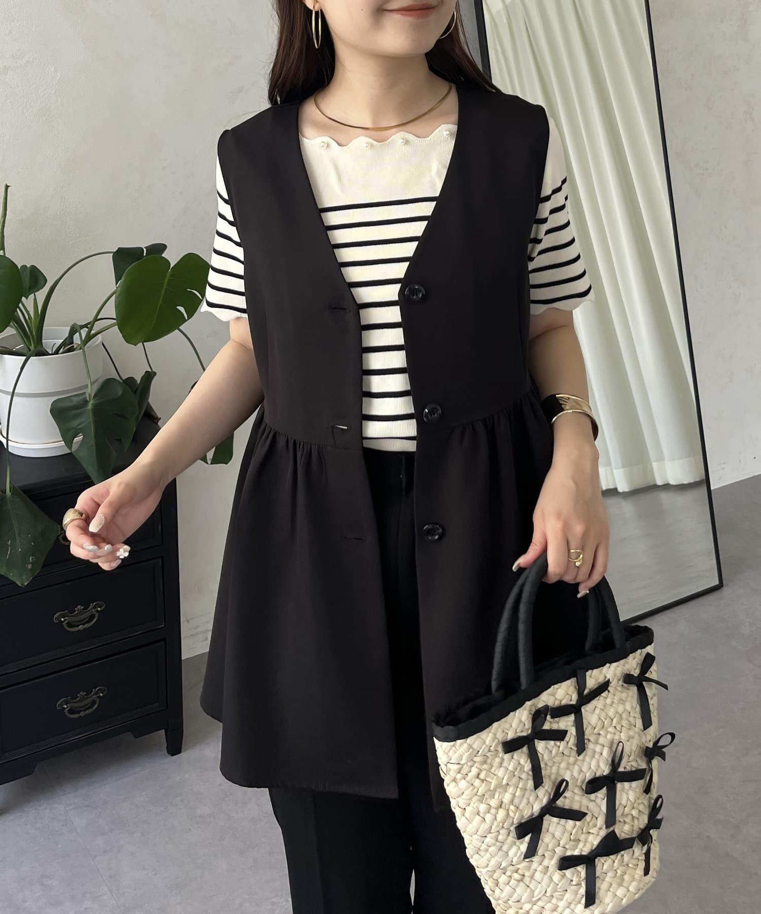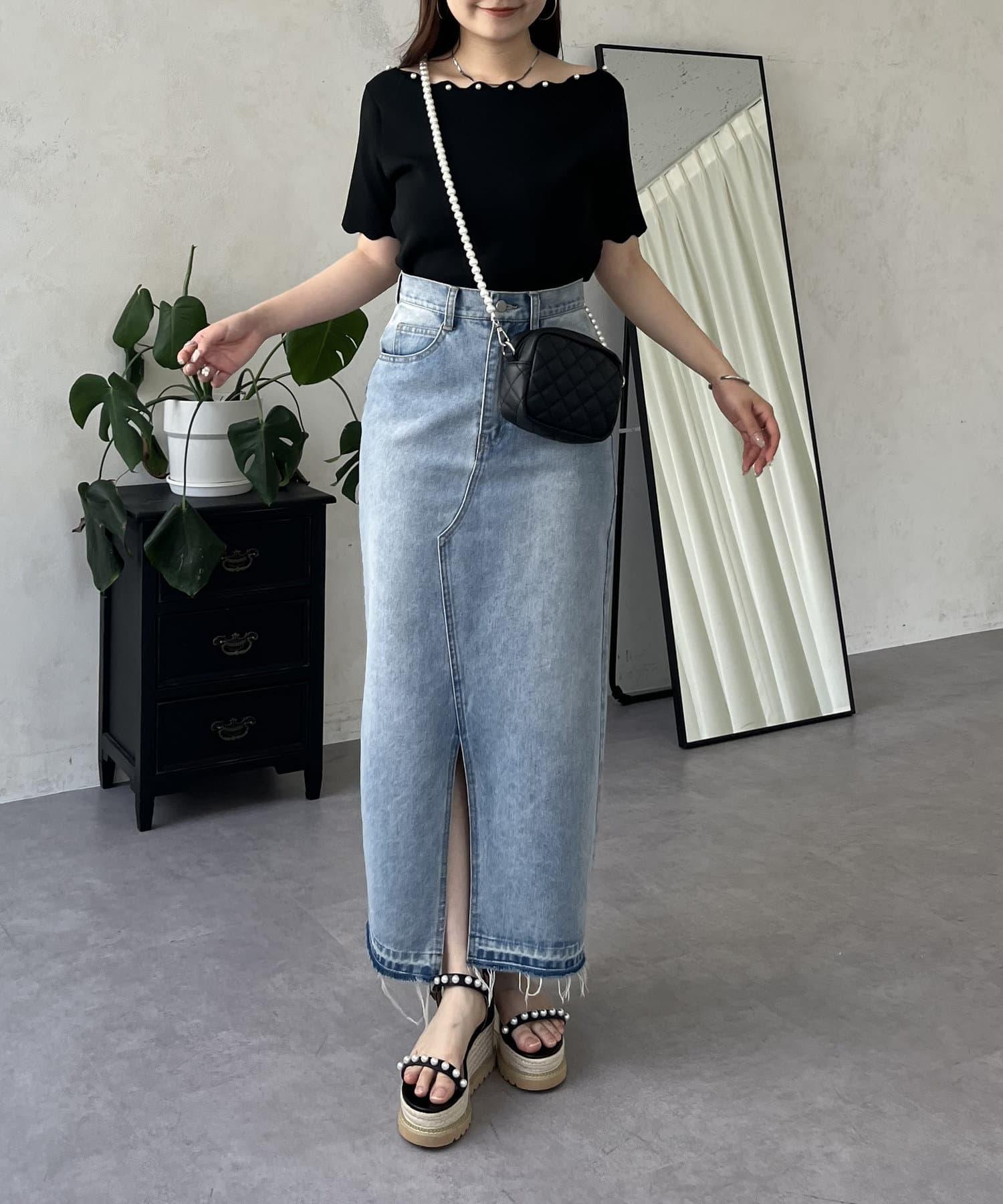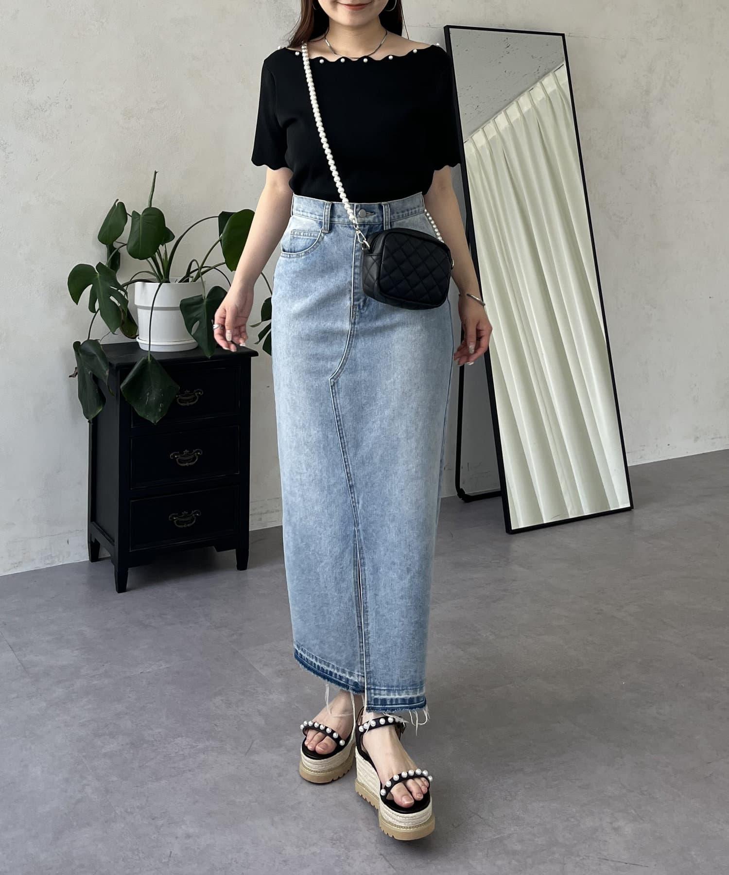 荷葉邊珍珠船領針織上衣