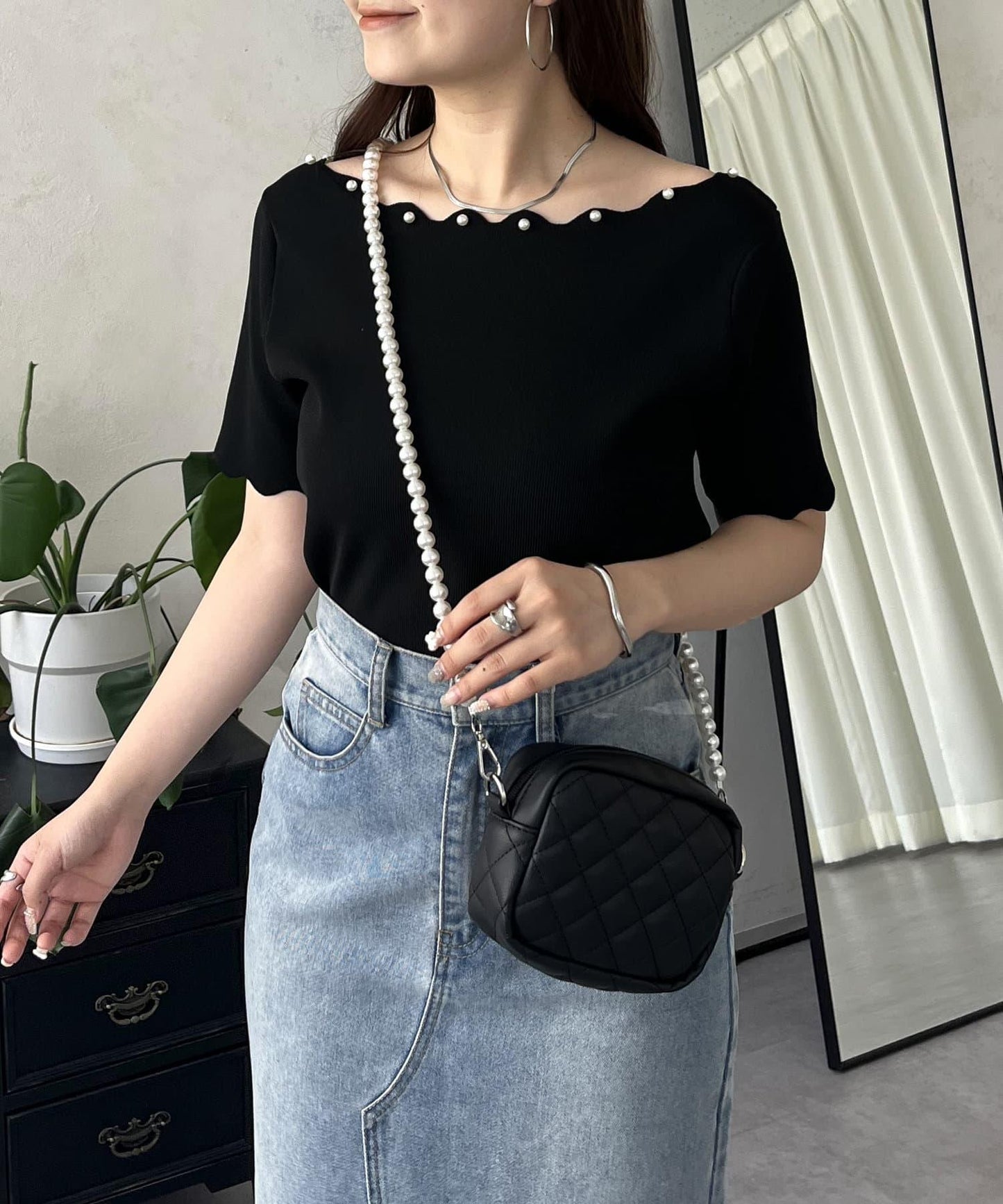 珍珠部件為這件上衣增添了亮點。