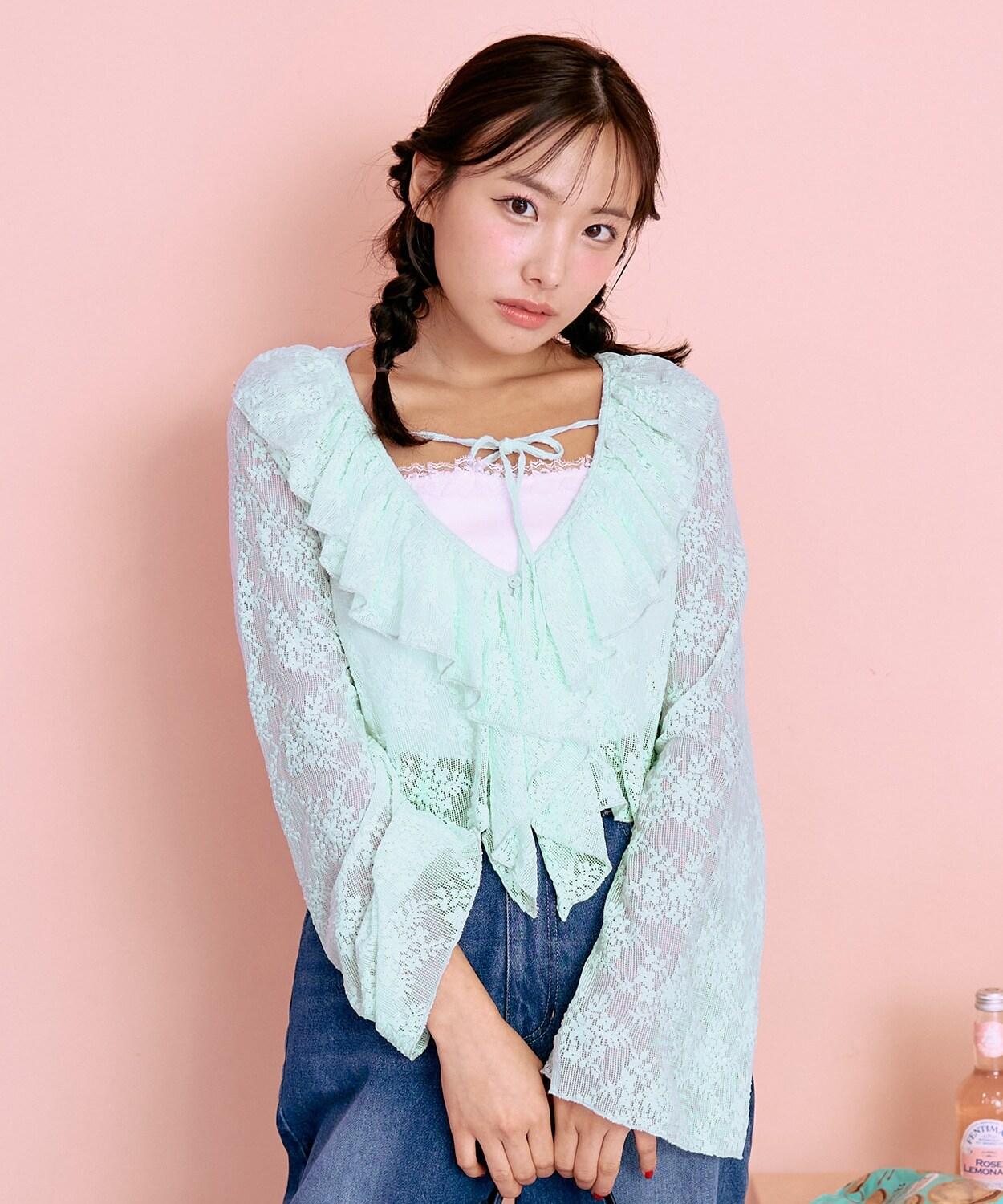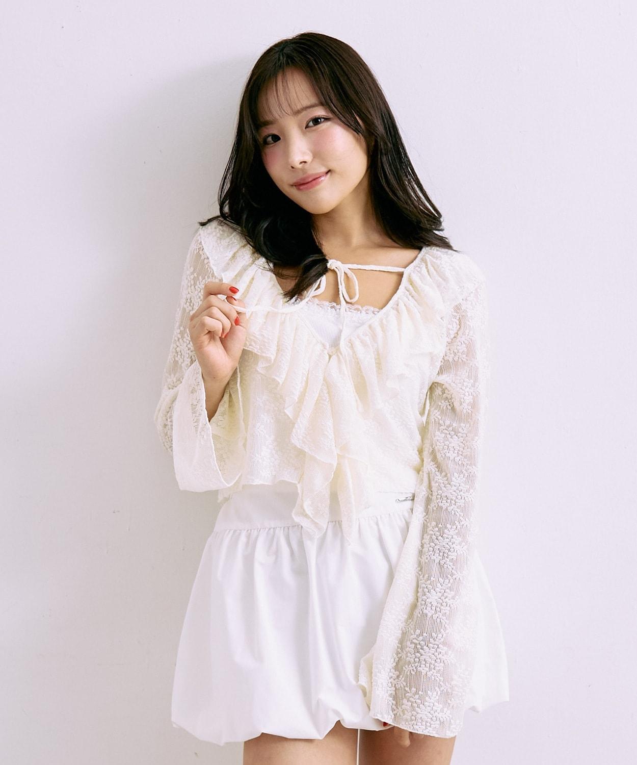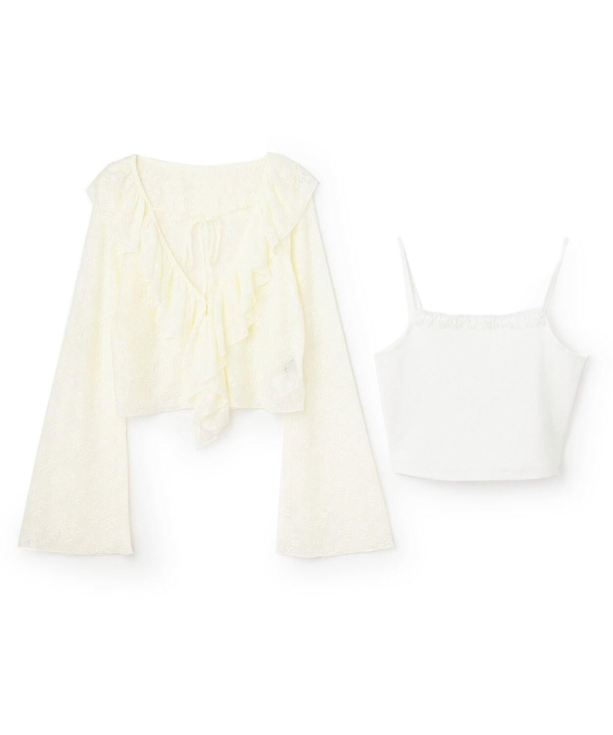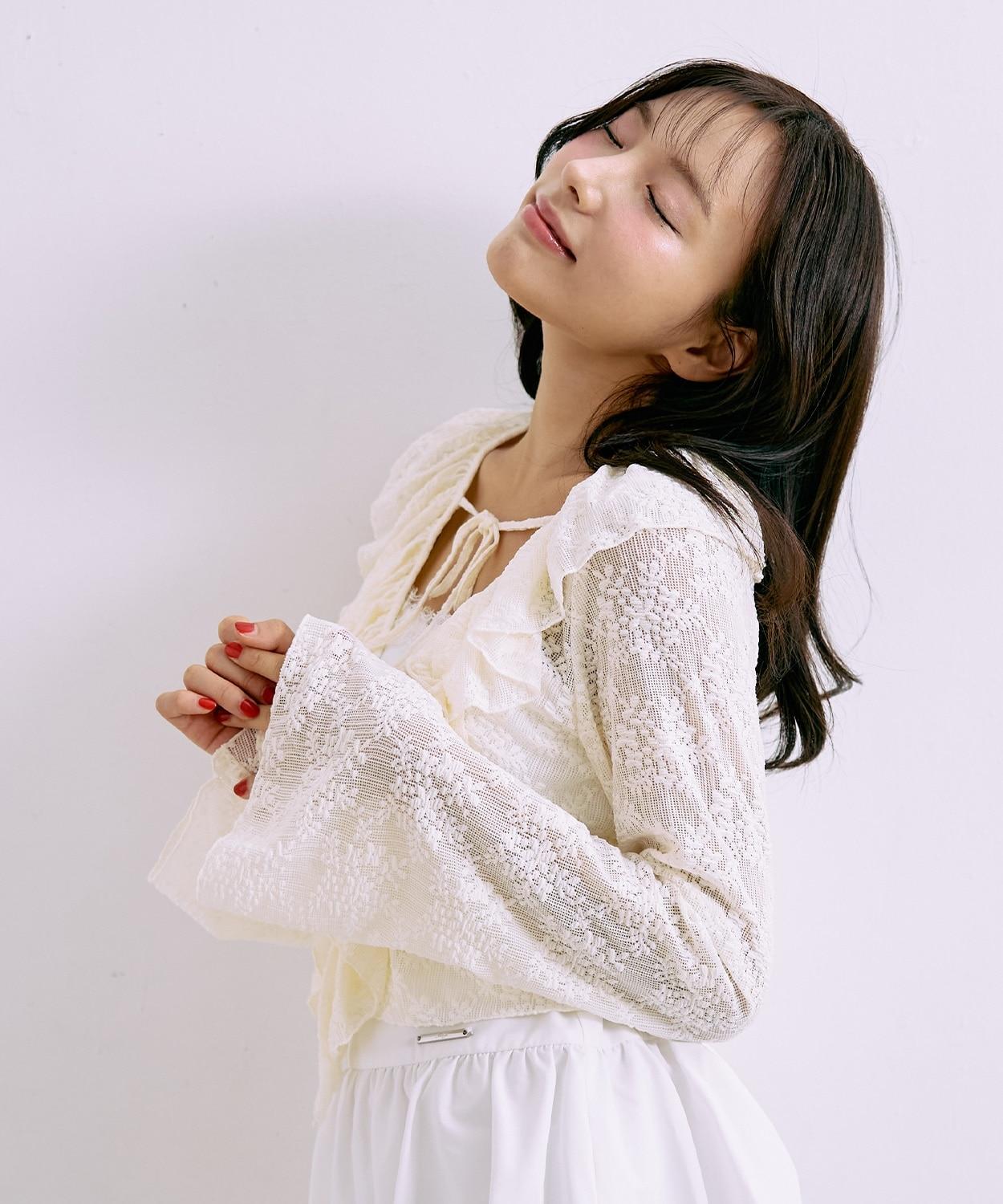 這些單品既可作為套裝穿著,也可單獨穿著 ◎開襟衫由蕾絲製成,透明度恰到好處。