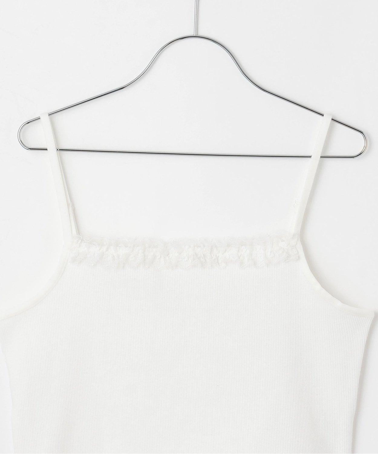 花朵蕾絲給人優雅的印象!吊帶背心由剪裁縫合的 teleco 材料製成。