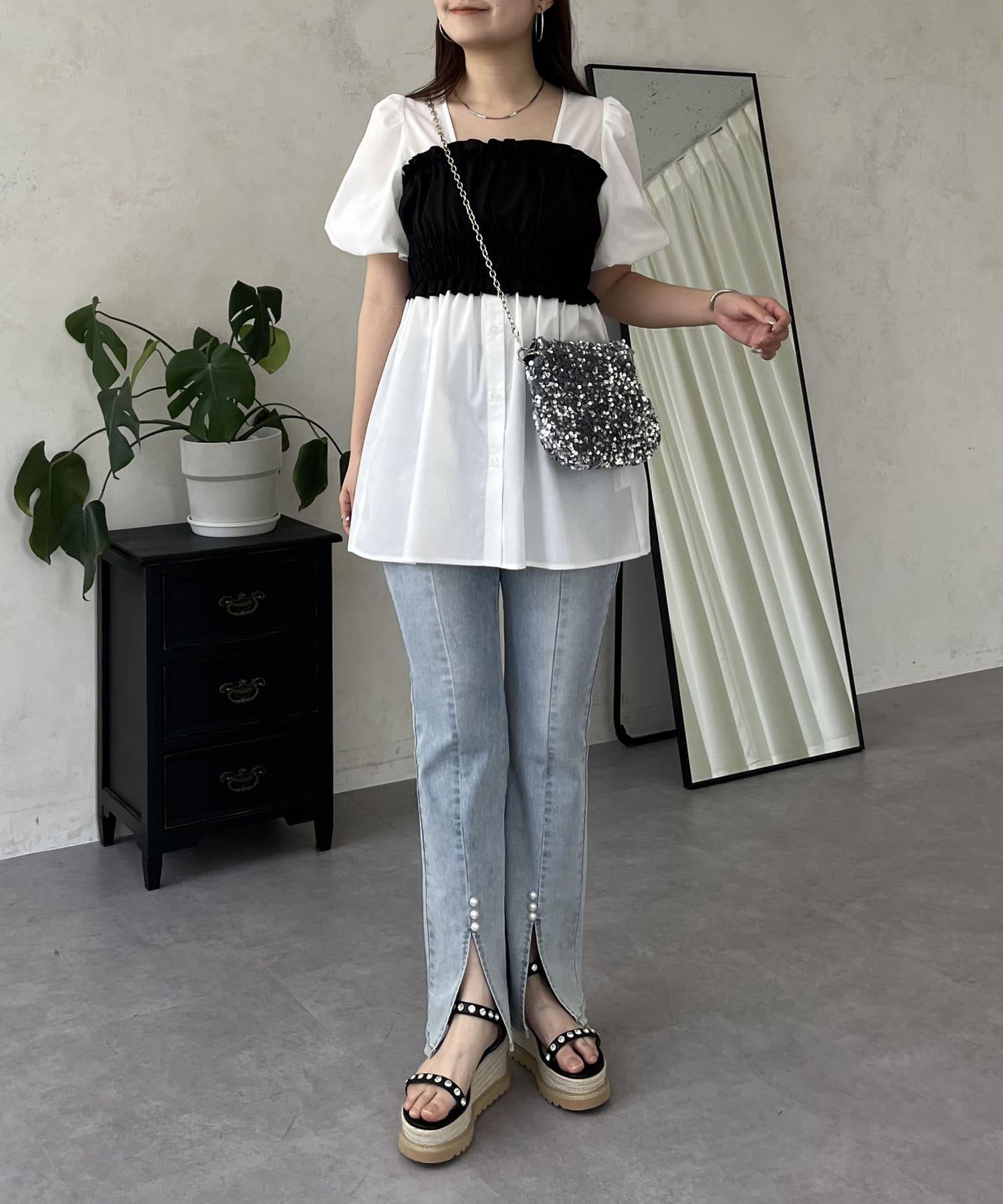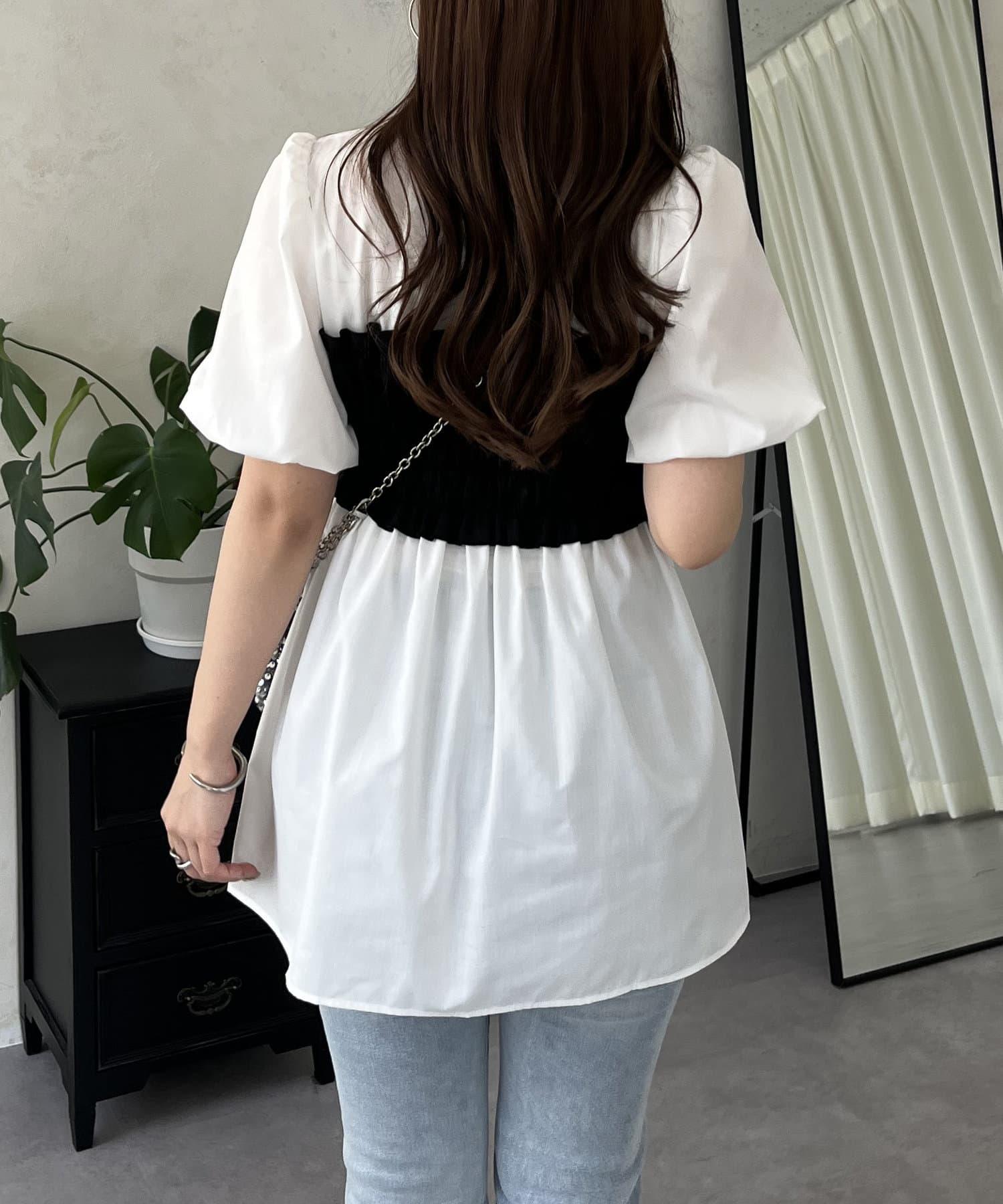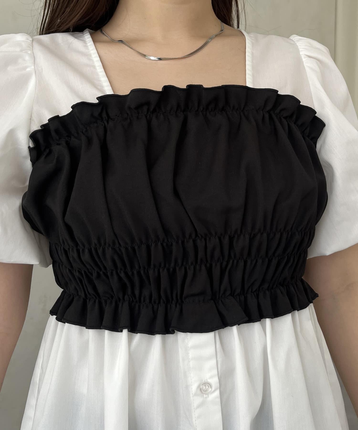 荷葉邊背心對接荷葉邊連衣裙上衣