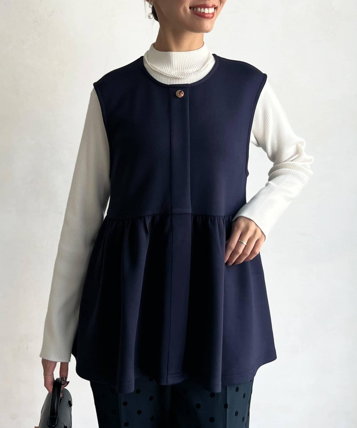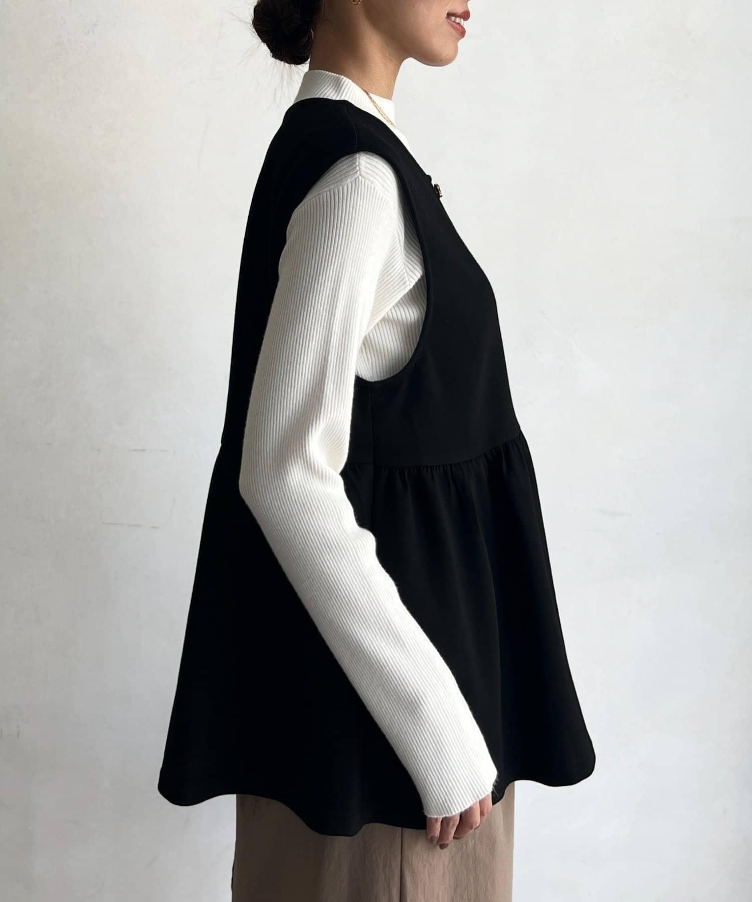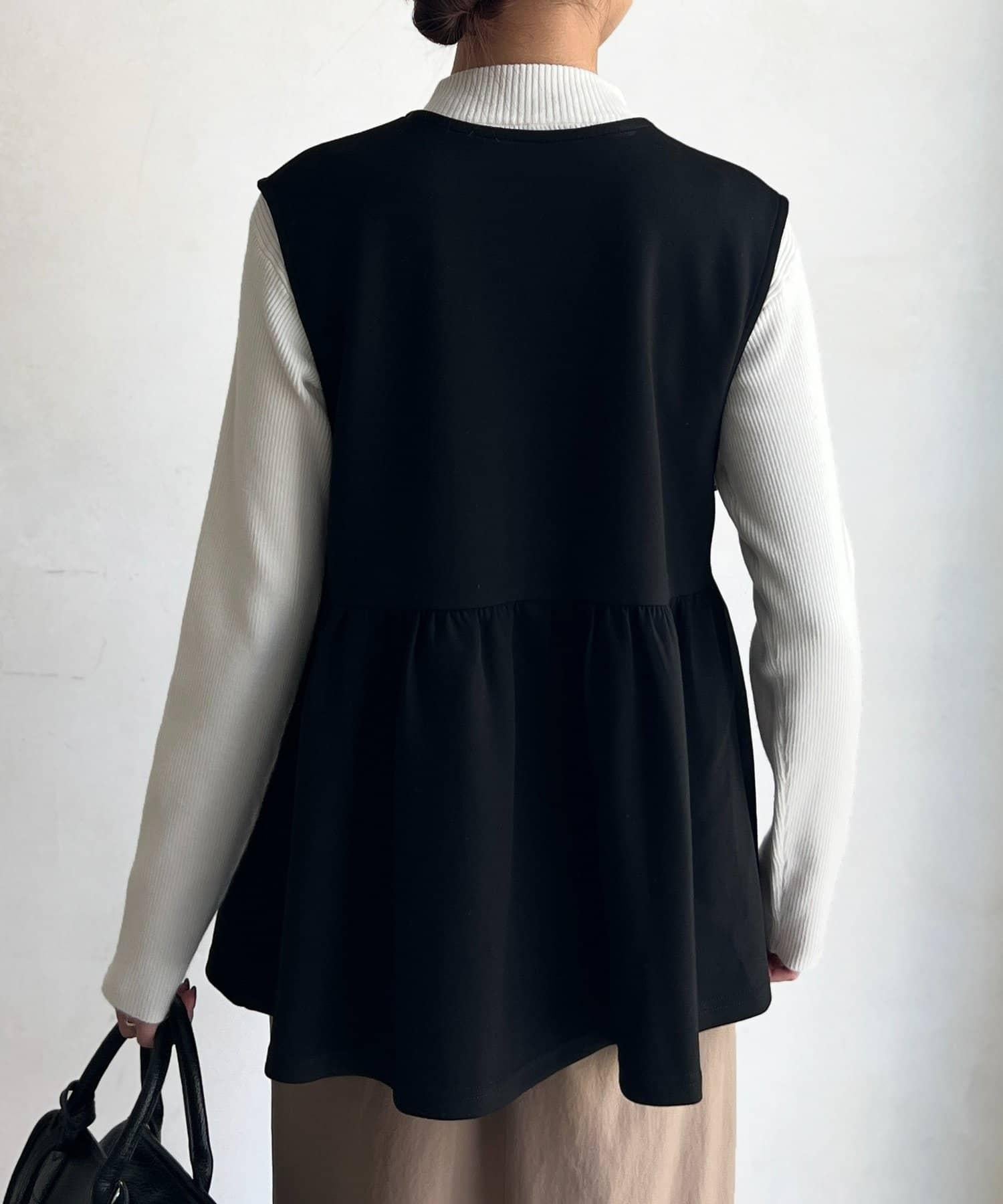 荷葉邊背心×針織套頭衫