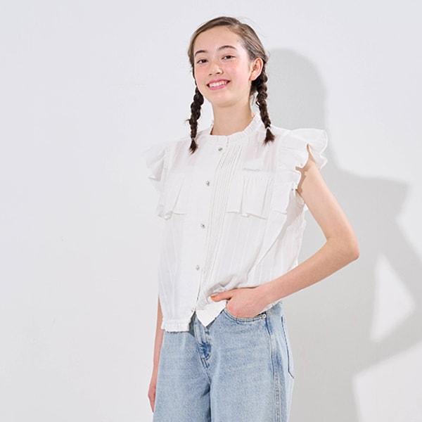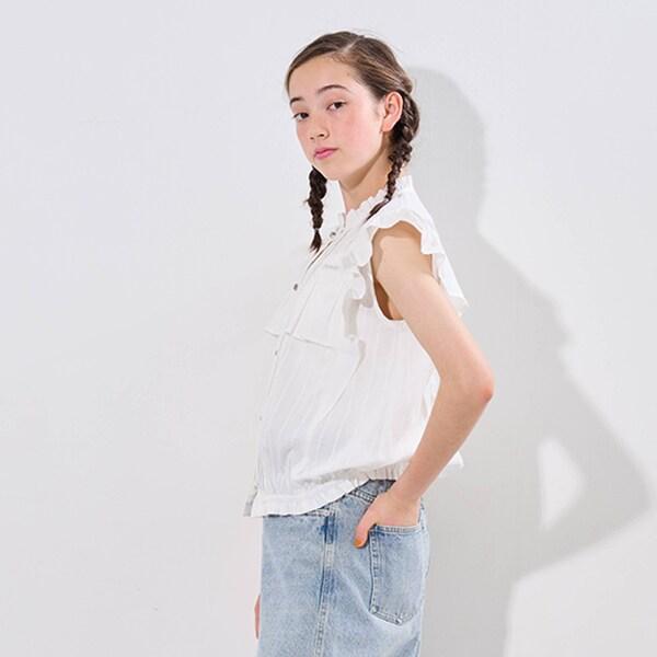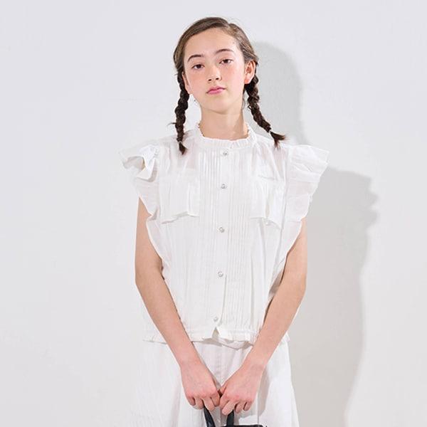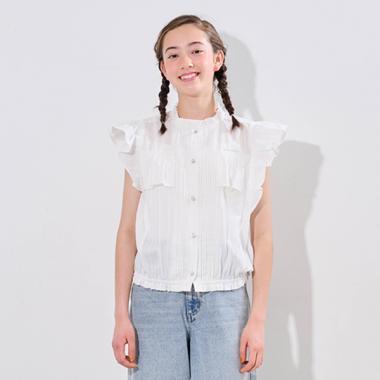 這款華麗的法式袖上衣肩部有精緻的荷葉邊,休閒感十足,顯得優雅而富有女人味。